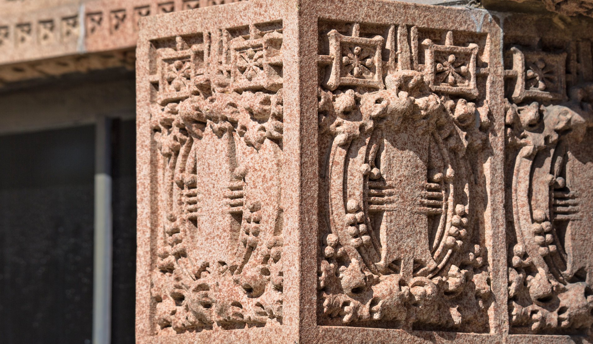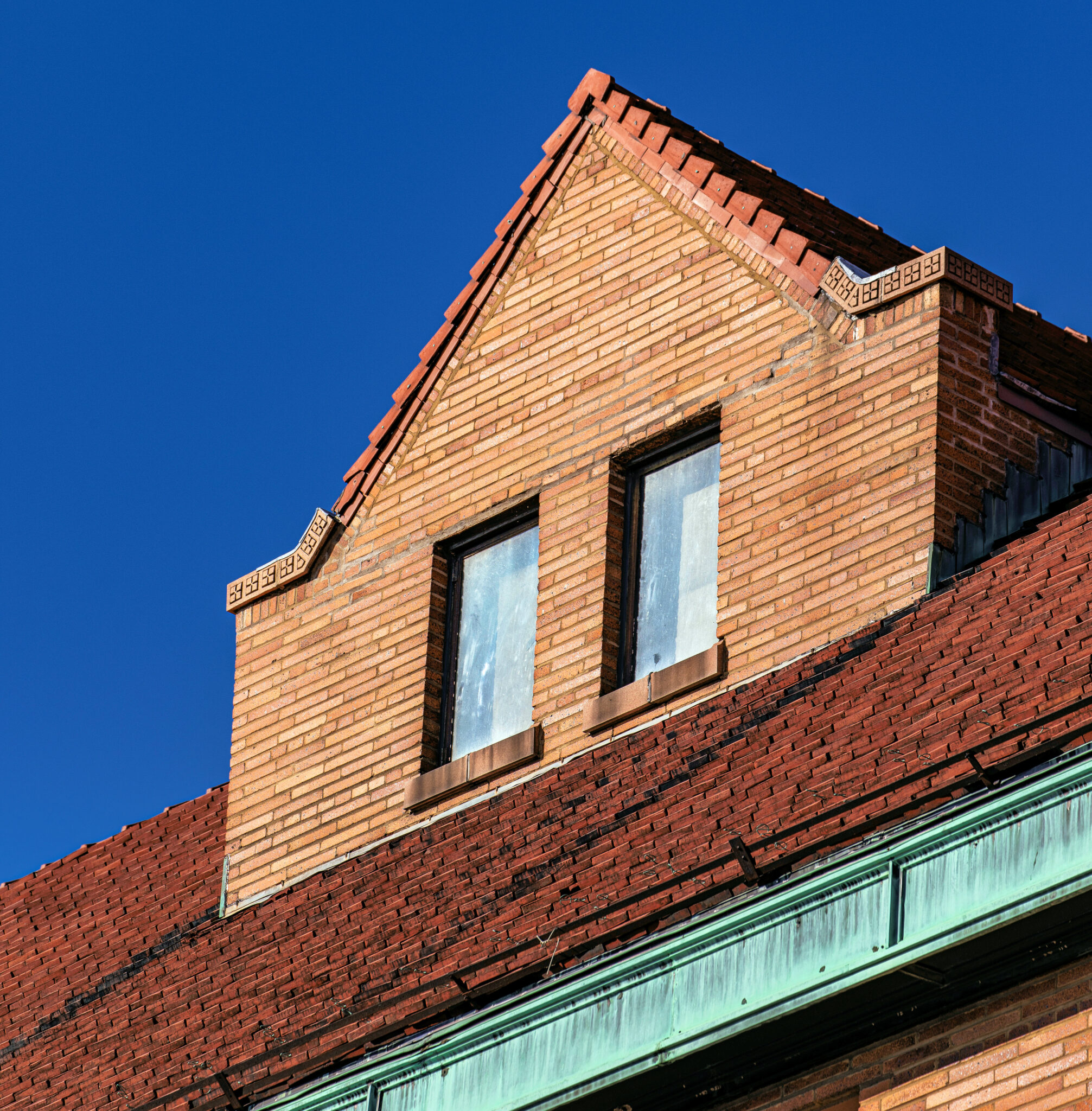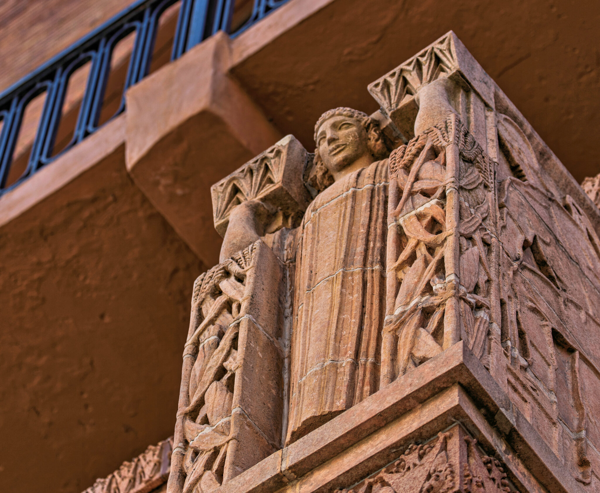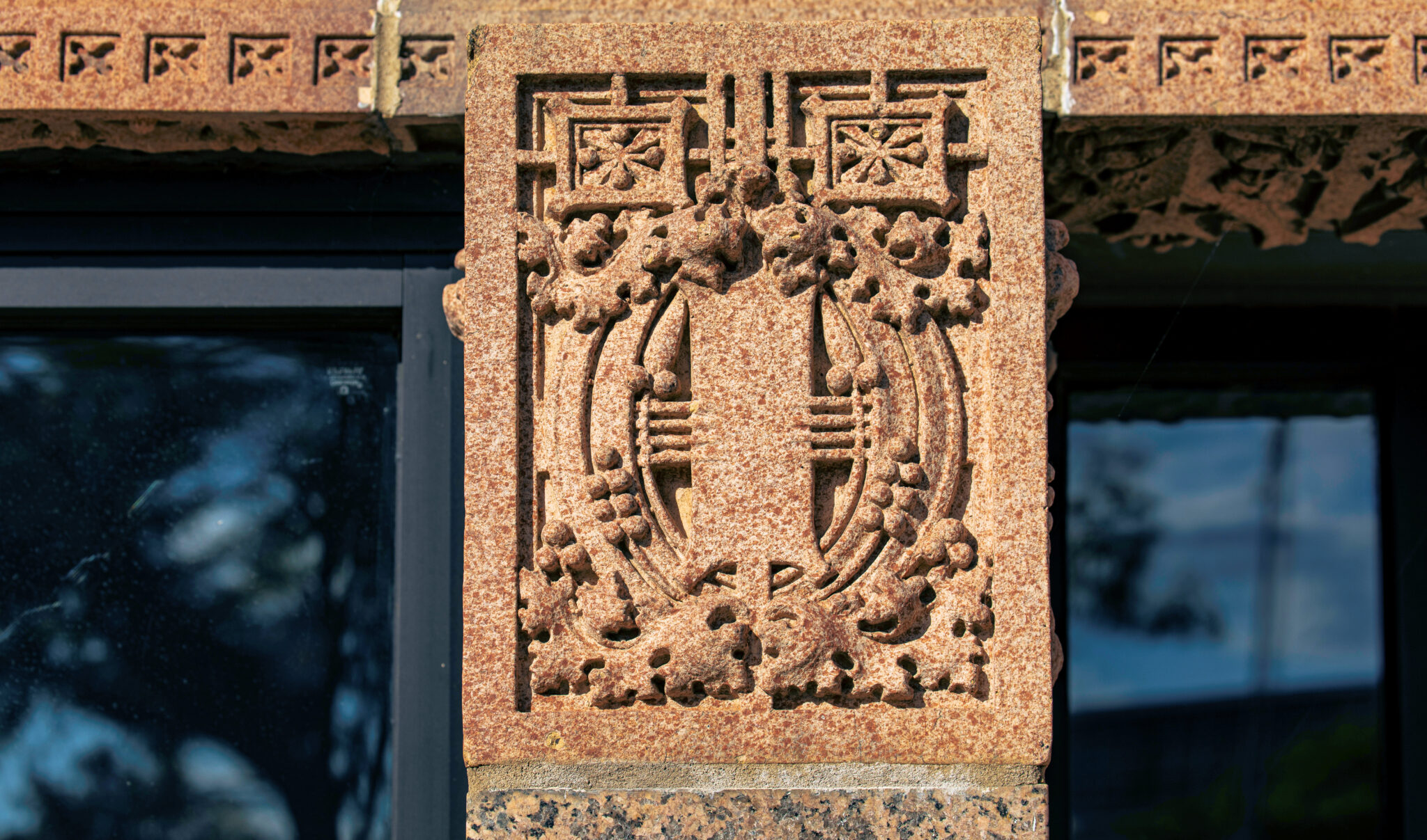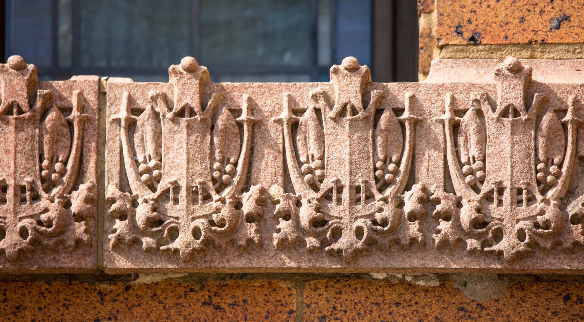 the sculptures were executed emil r. zettler. kristian schneider sculpted the mottled glazed terra cotta, fabricated by the short-lived advance terra cotta company (later purchased by the northwestern terra cotta company).