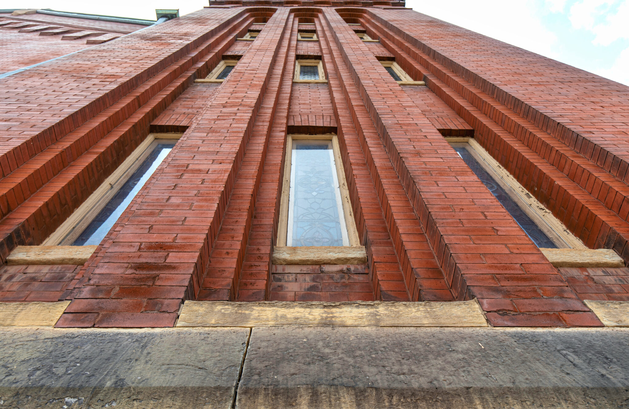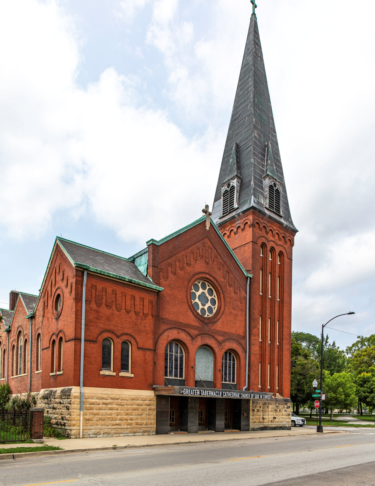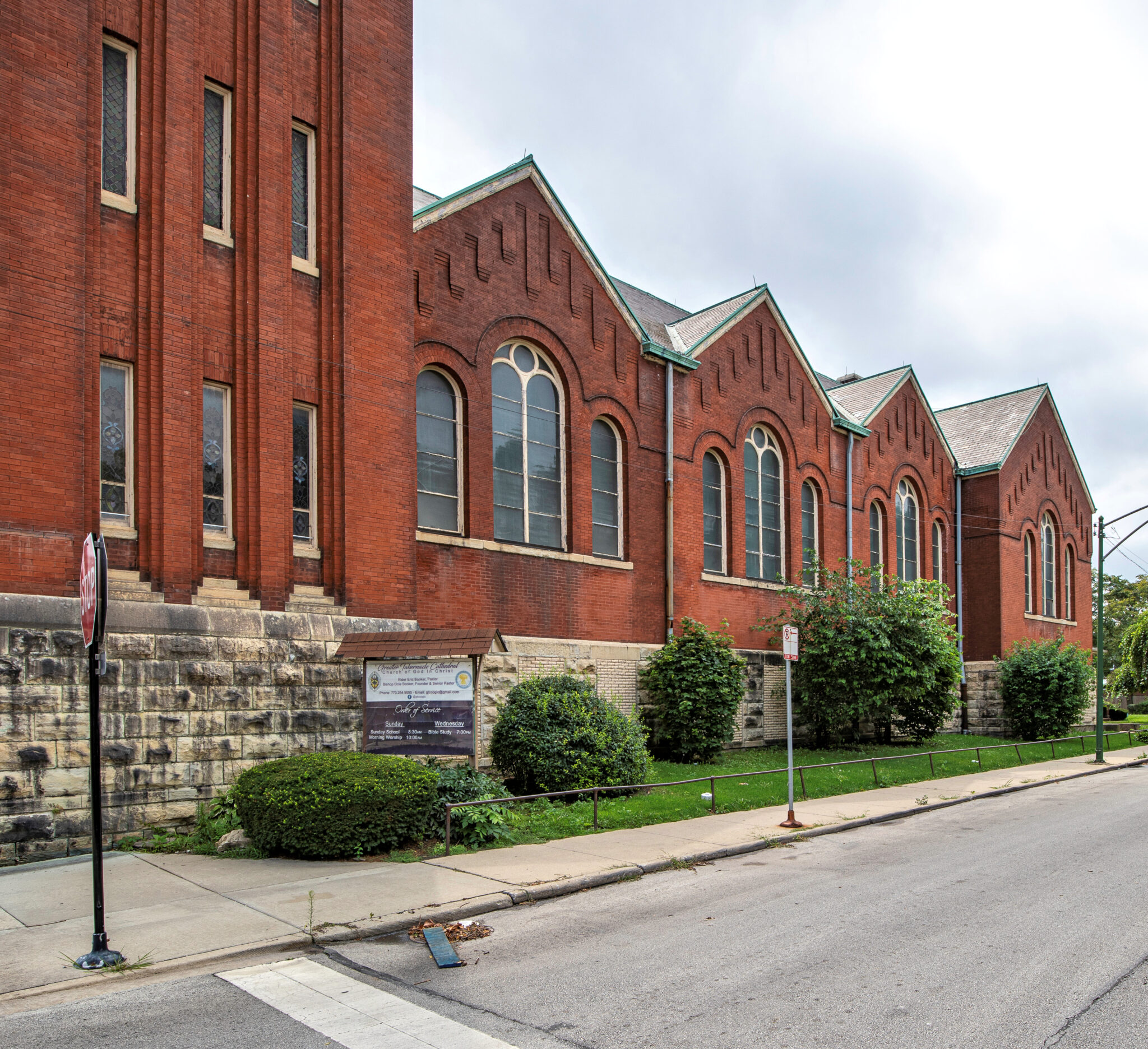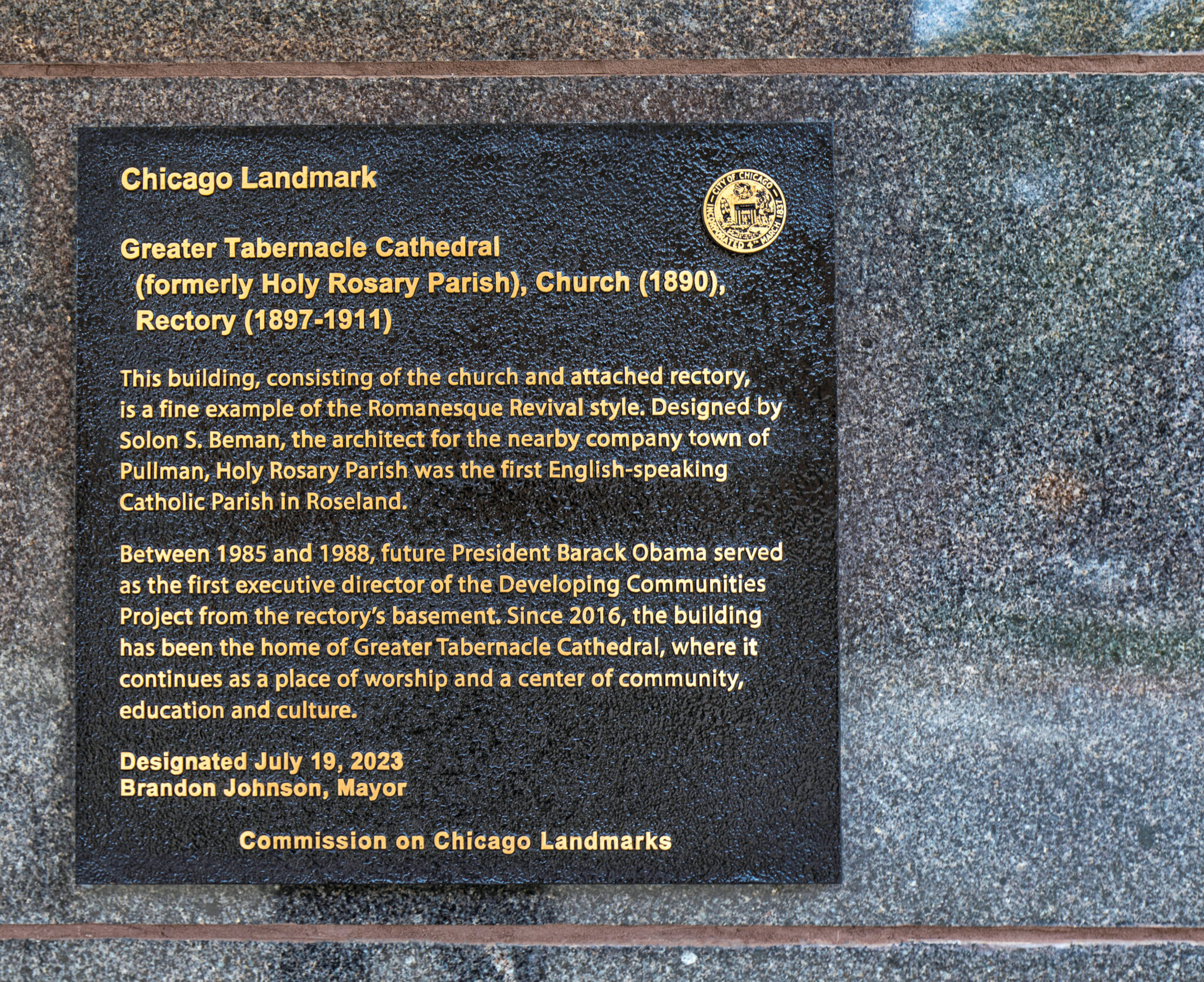 recent images of solon s. beman’s red brick and rusticated lemont limestone holy rosary roman catholic church (1890), located at 11300 south dr. martin luther king, jr. drive, chicago, il.