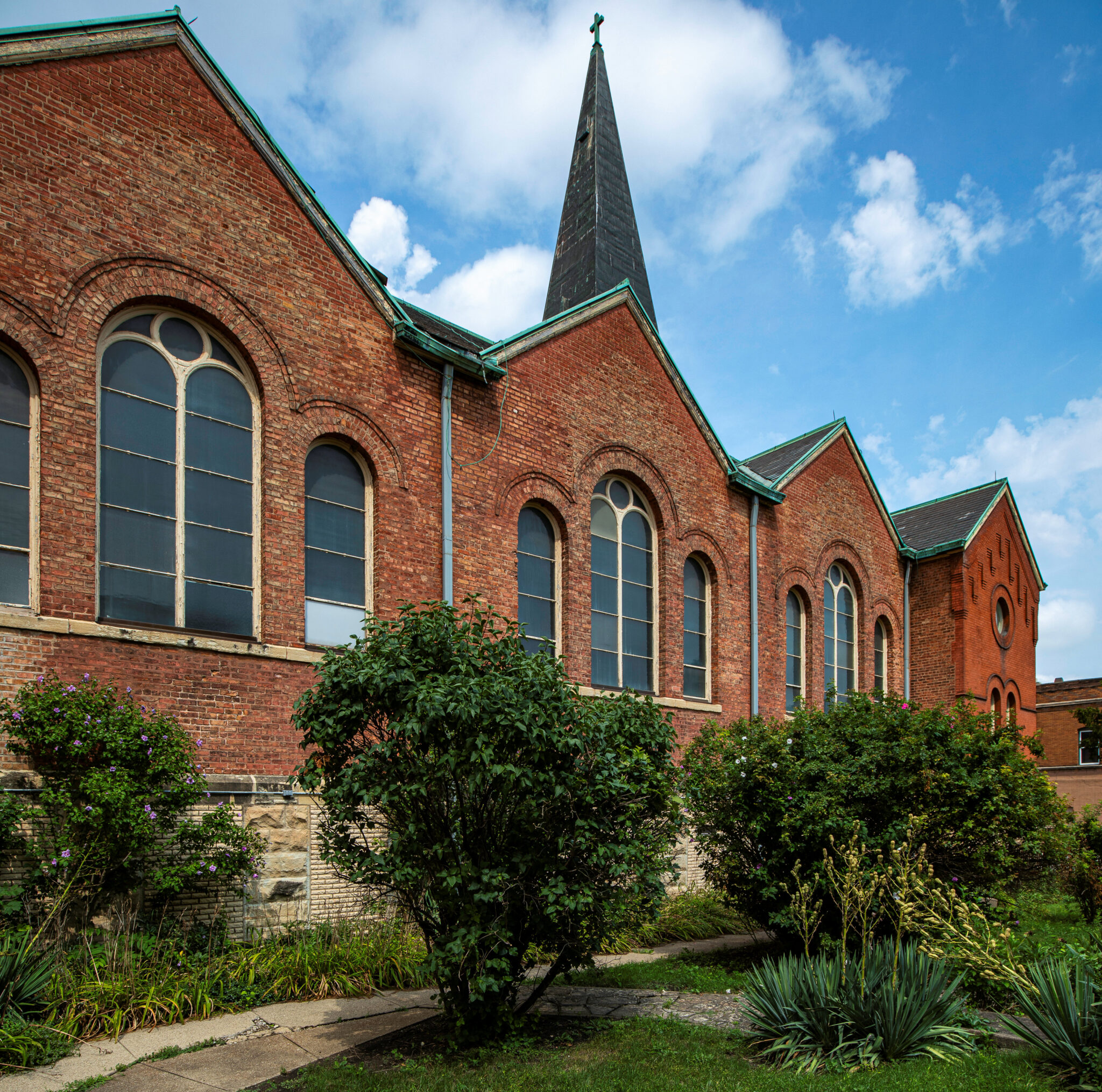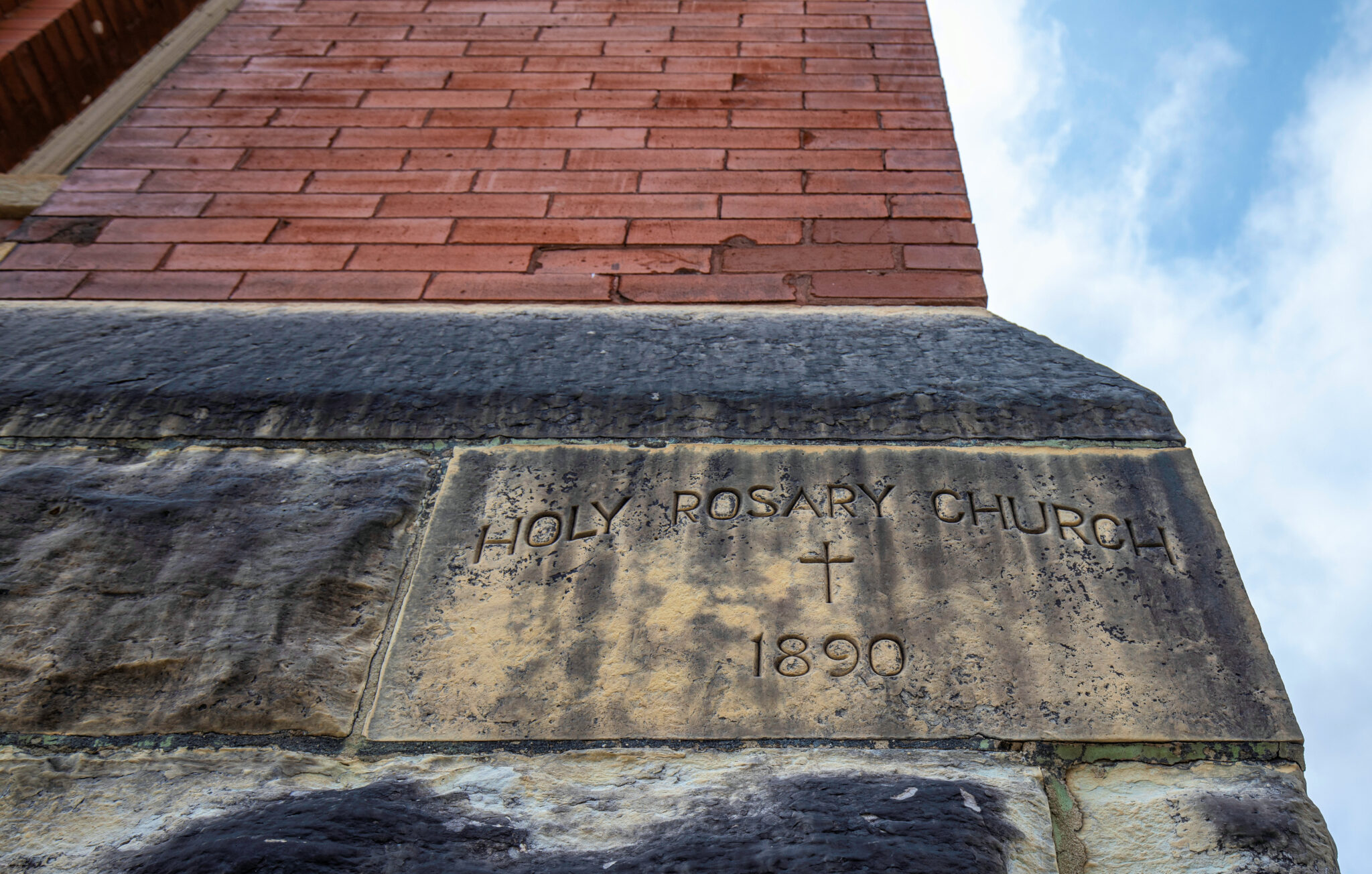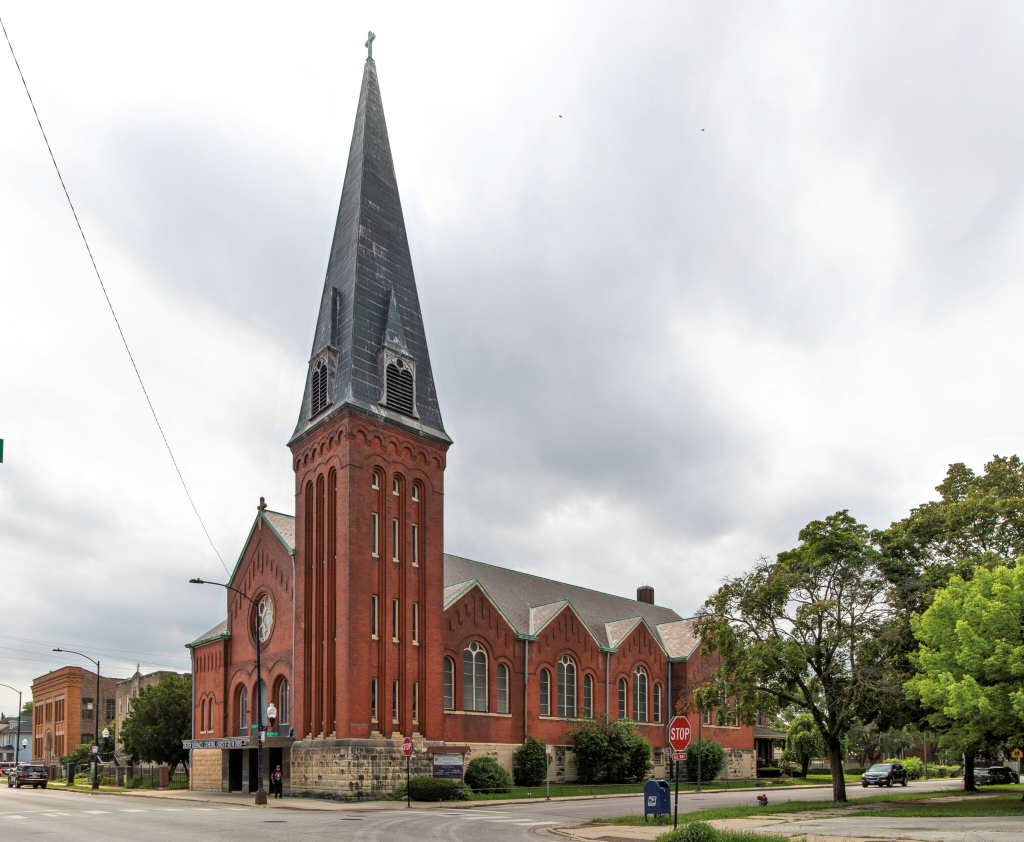 recent images of solon s. beman’s red brick and rusticated lemont limestone holy rosary roman catholic church (1890), located at 11300 south dr. martin luther king, jr. drive, chicago, il.