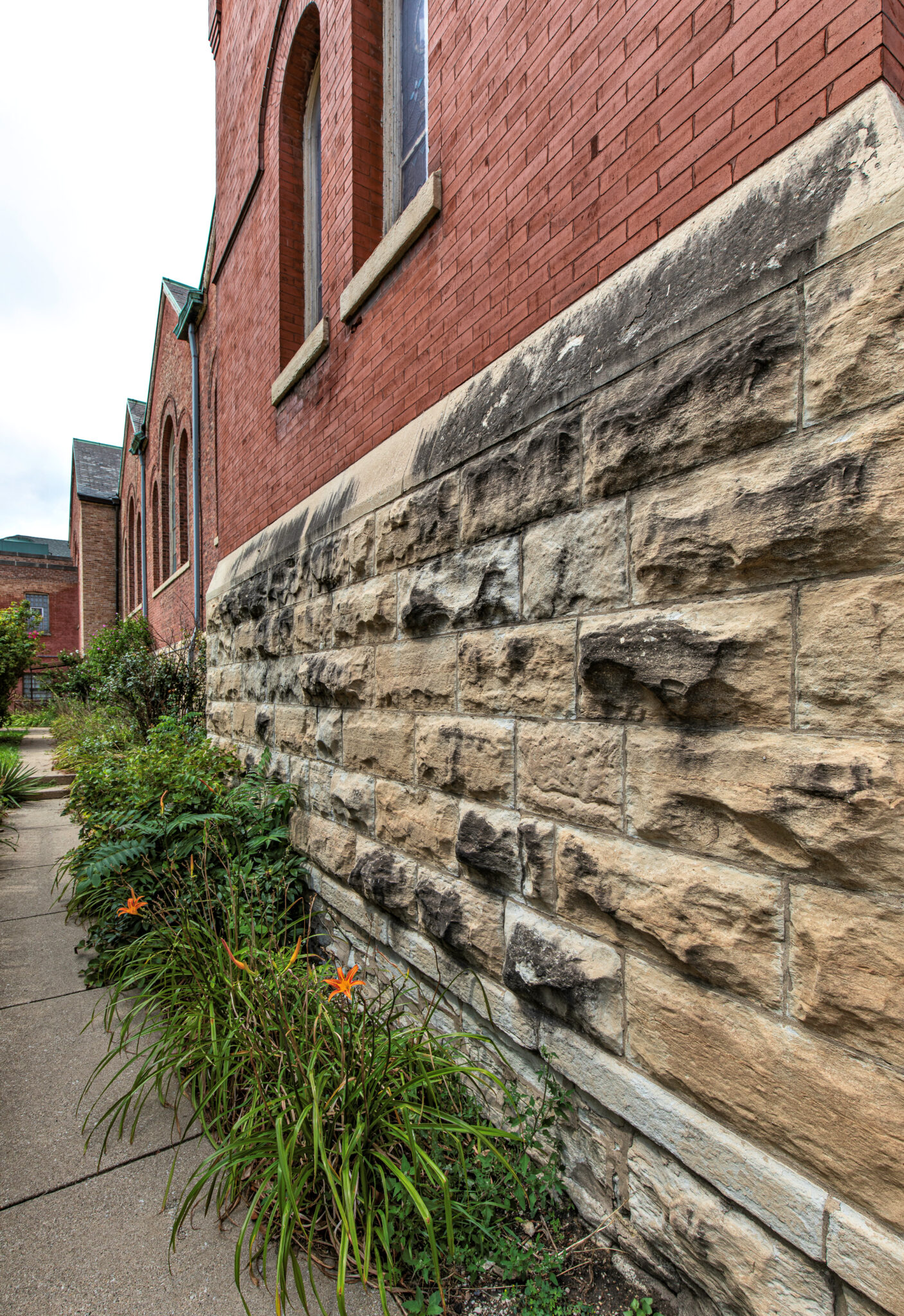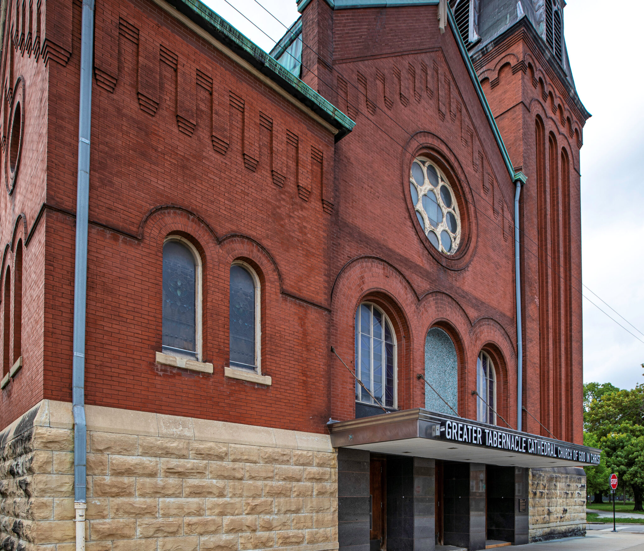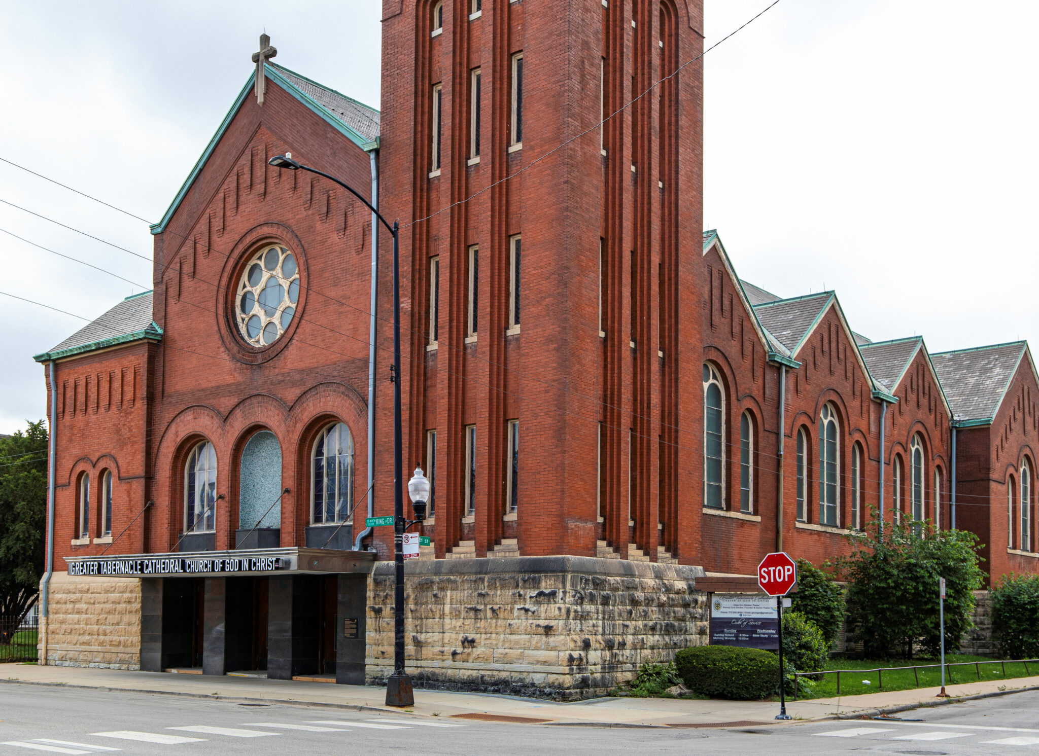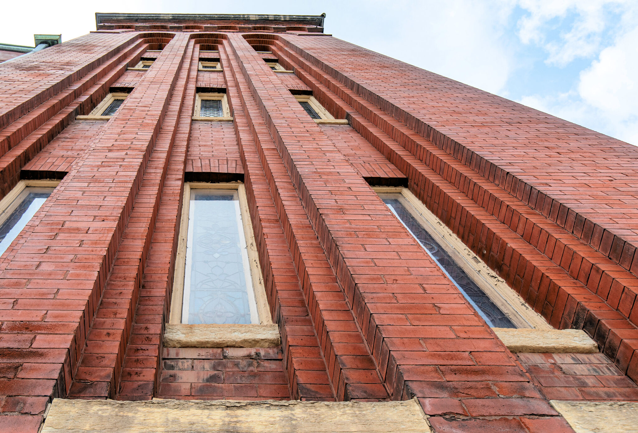 recent images of solon s. beman’s red brick and rusticated lemont limestone holy rosary roman catholic church (1890), located at 11300 south dr. martin luther king, jr. drive, chicago, il.