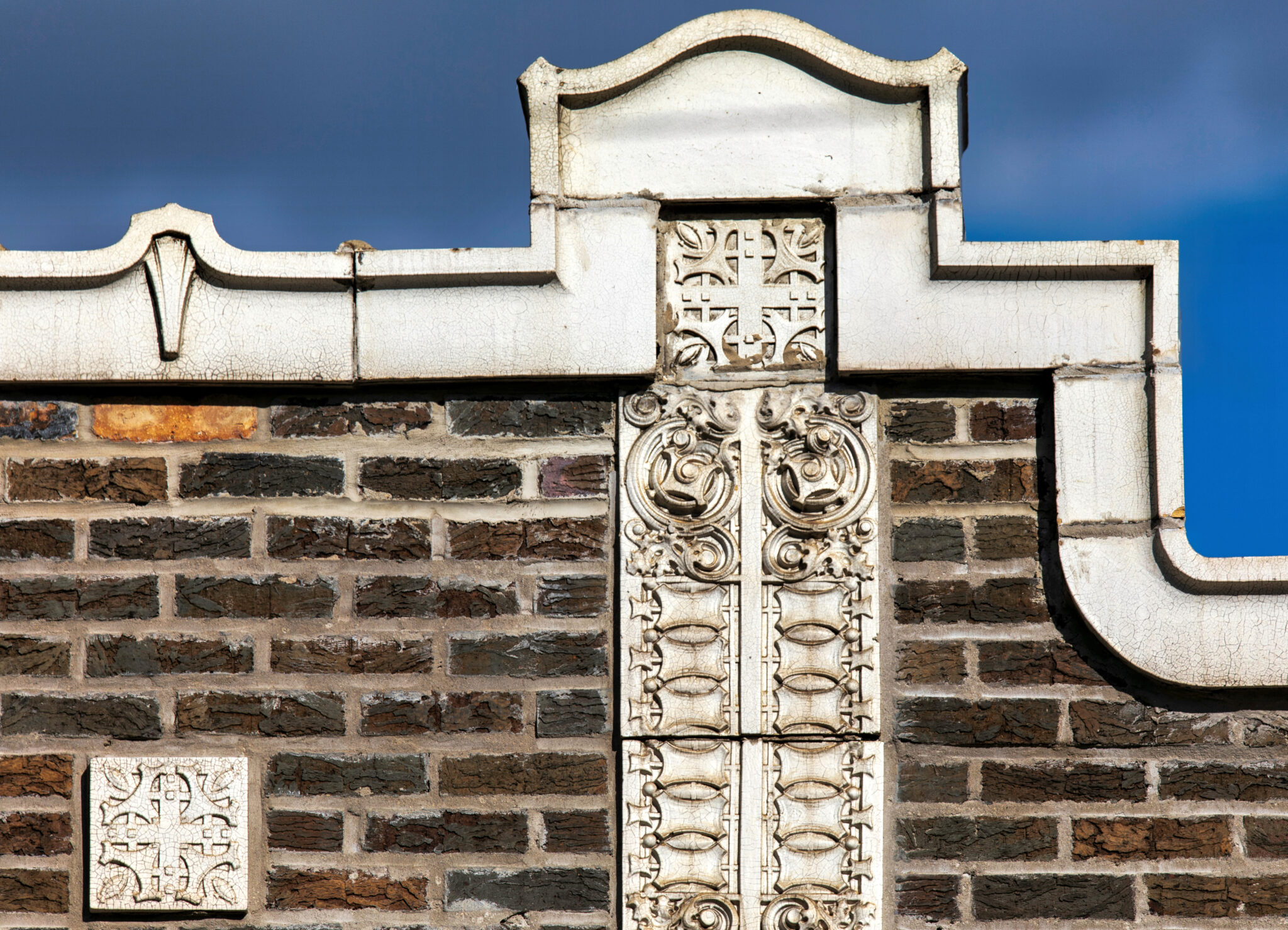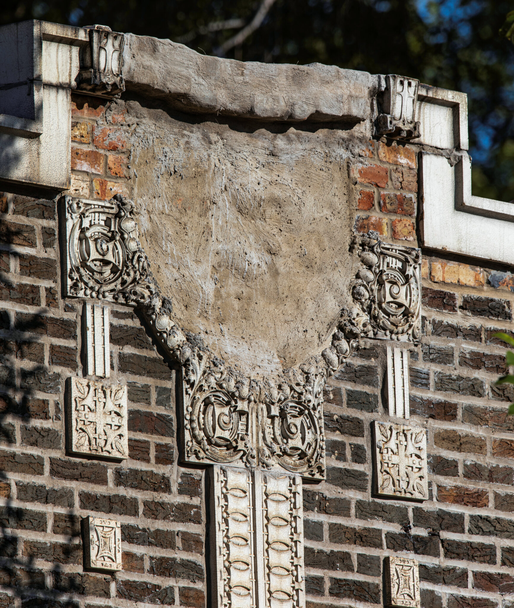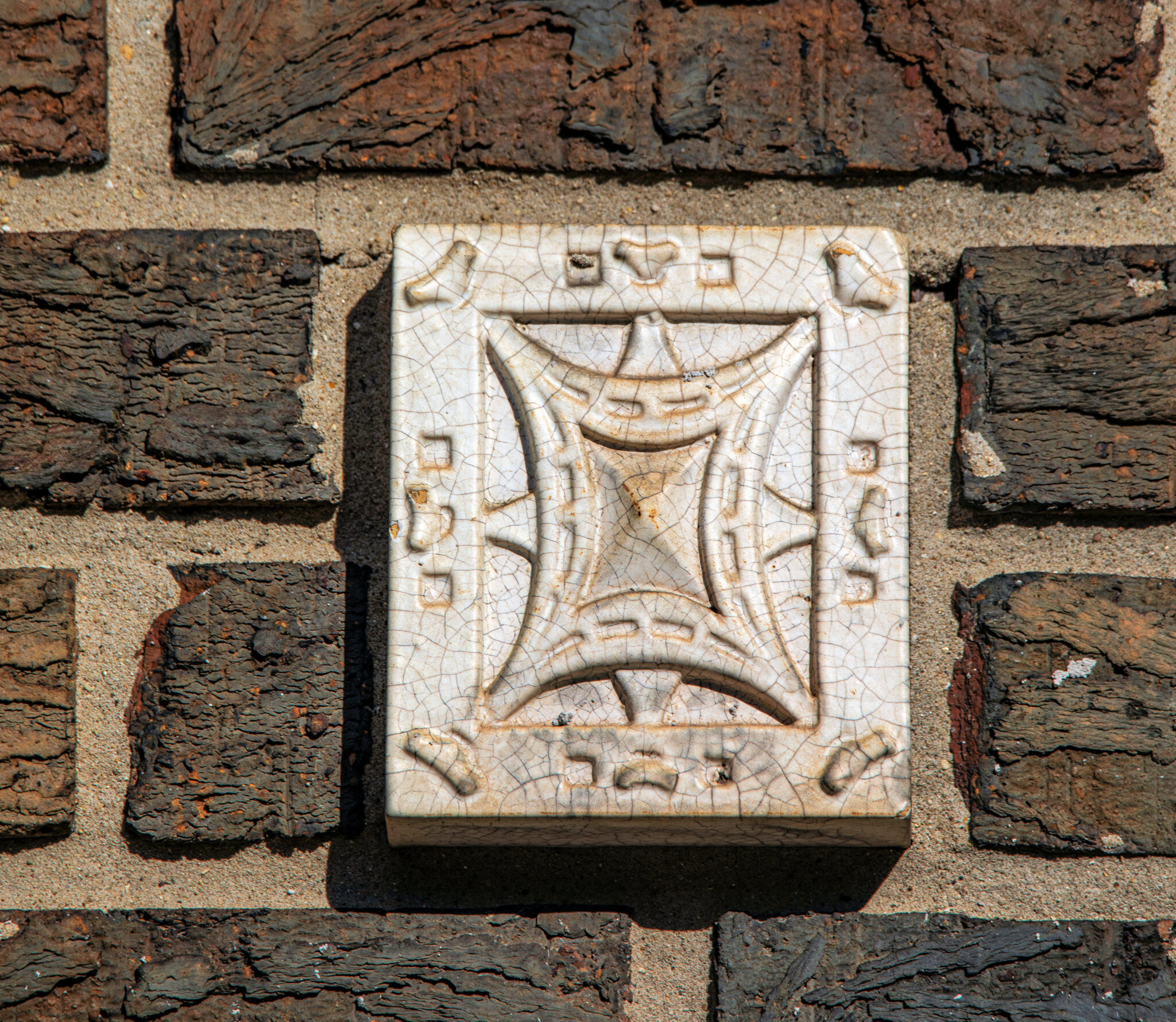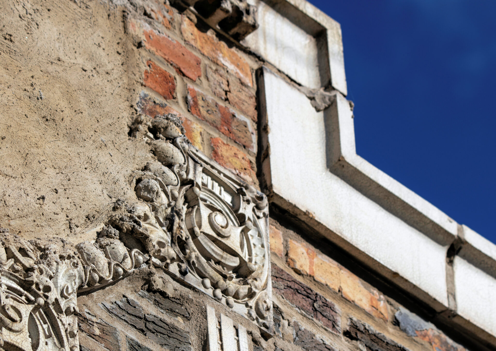the “stock” pattern white glazed terra cotta ornament was executed by the midland terra cotta company, chiago, il.