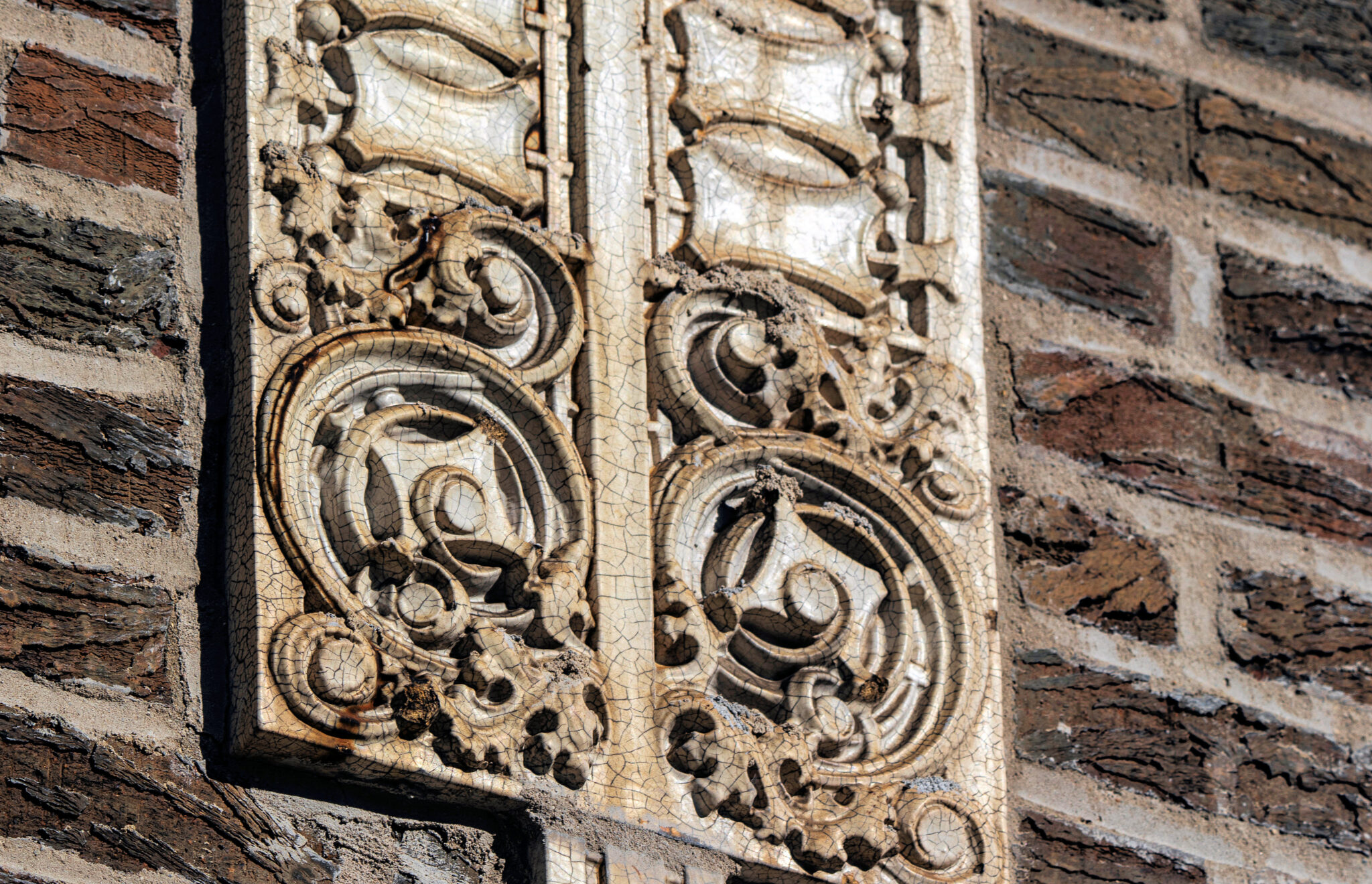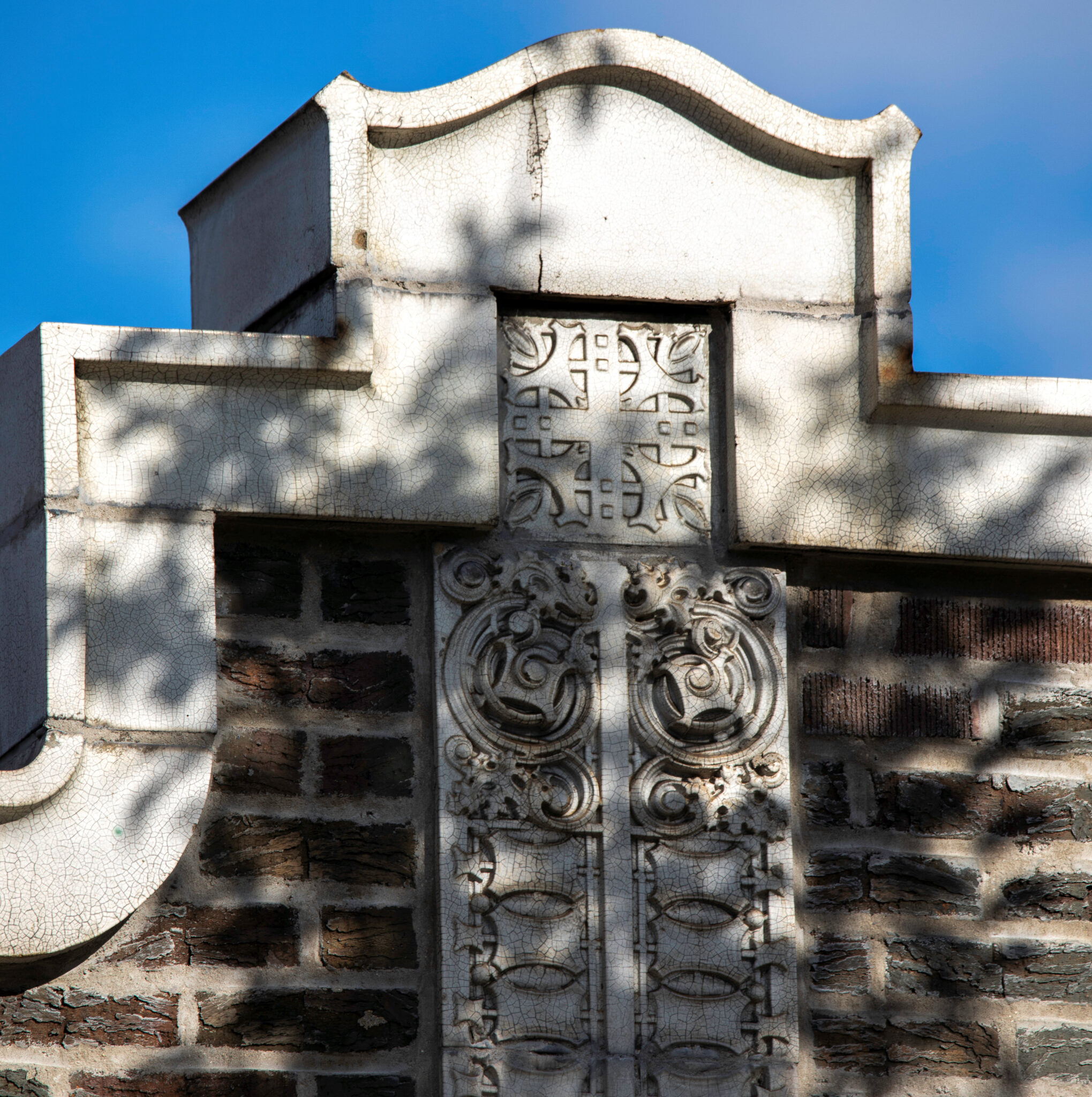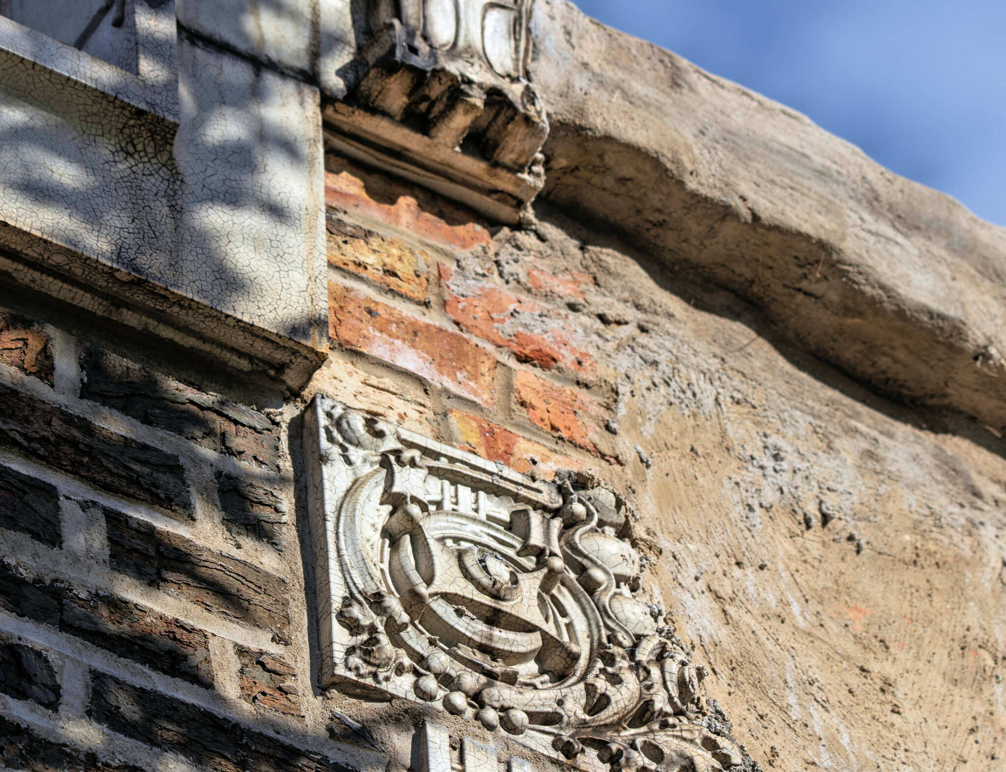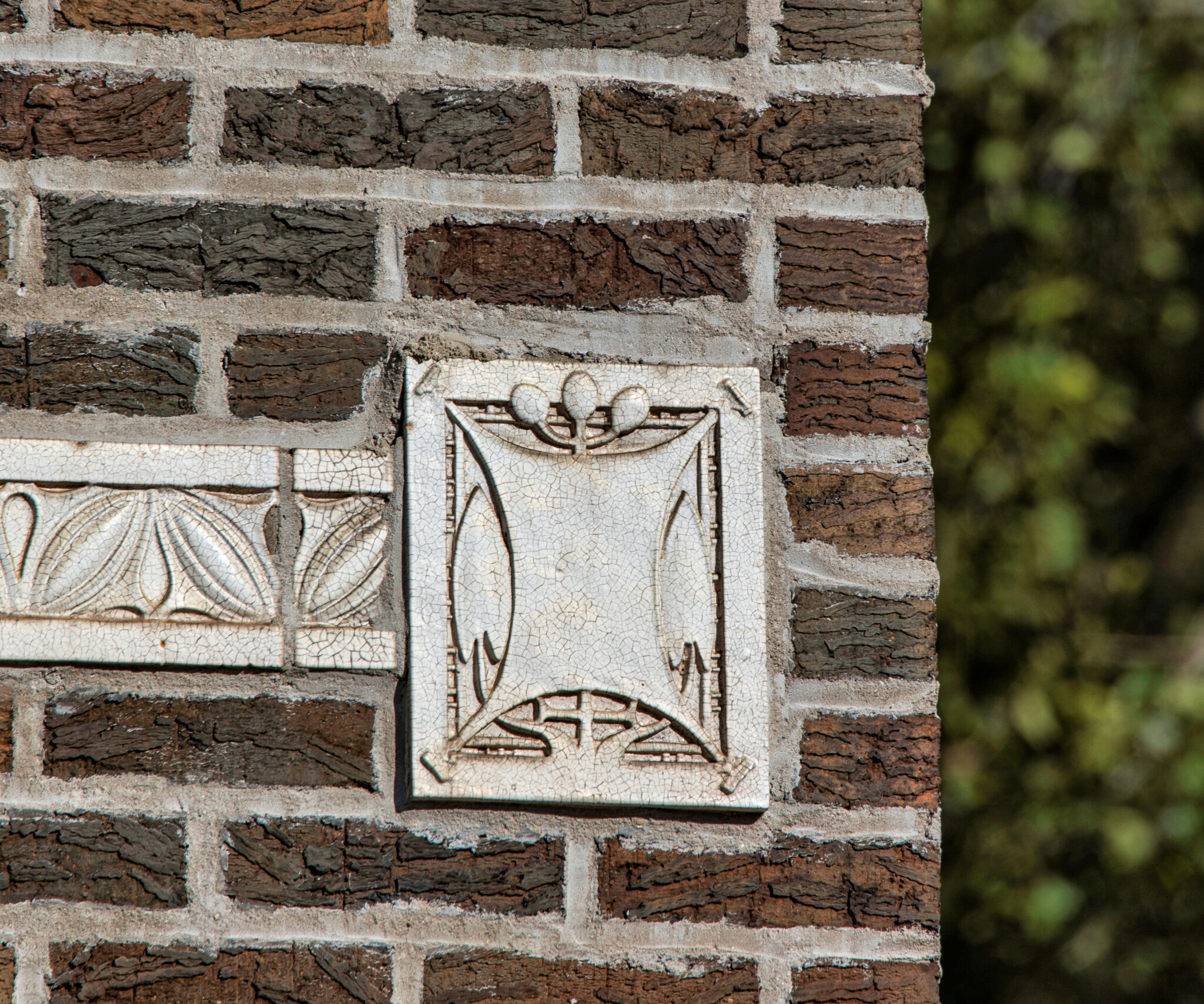 the “stock” pattern white glazed terra cotta ornament was executed by the midland terra cotta company, chiago, il.