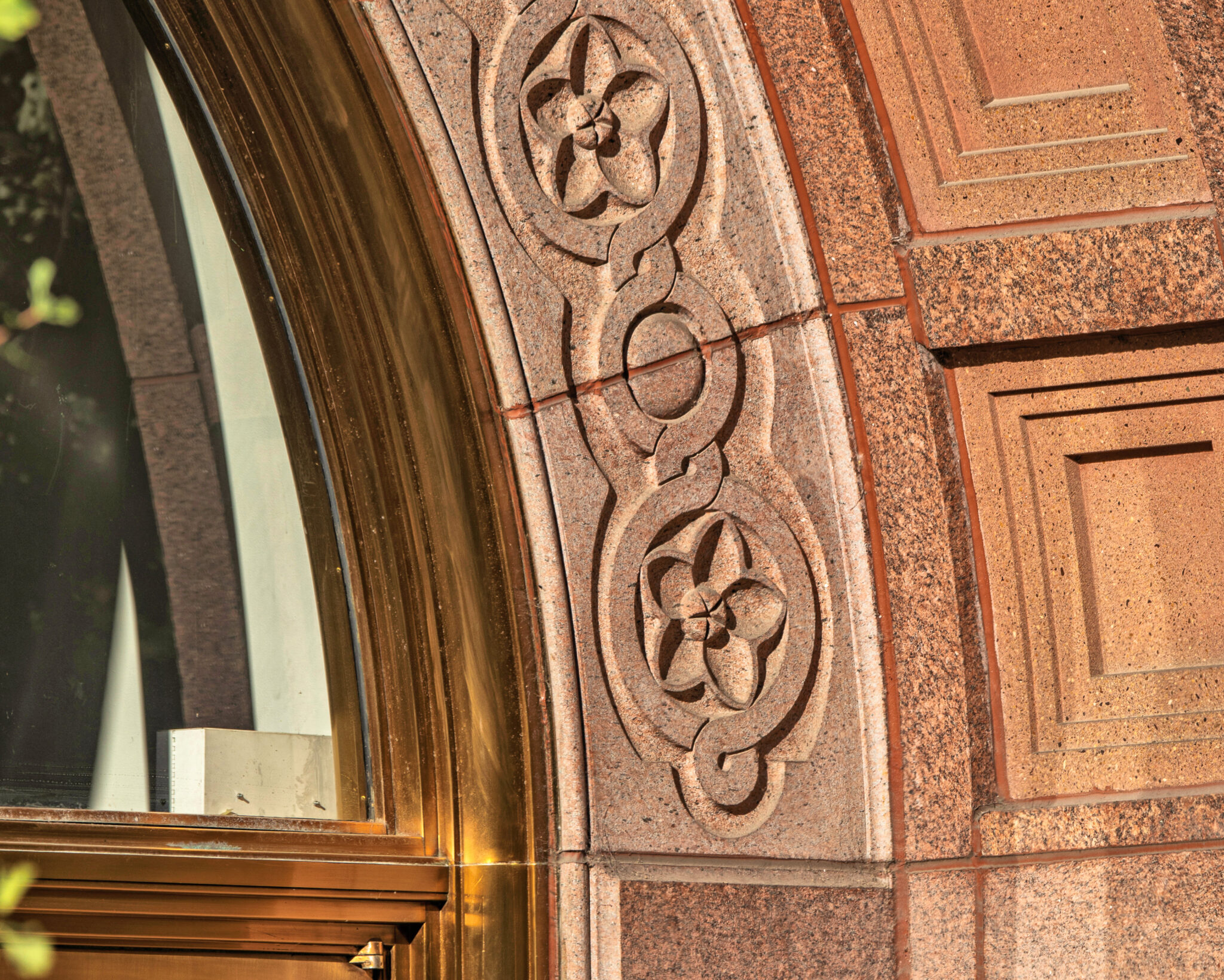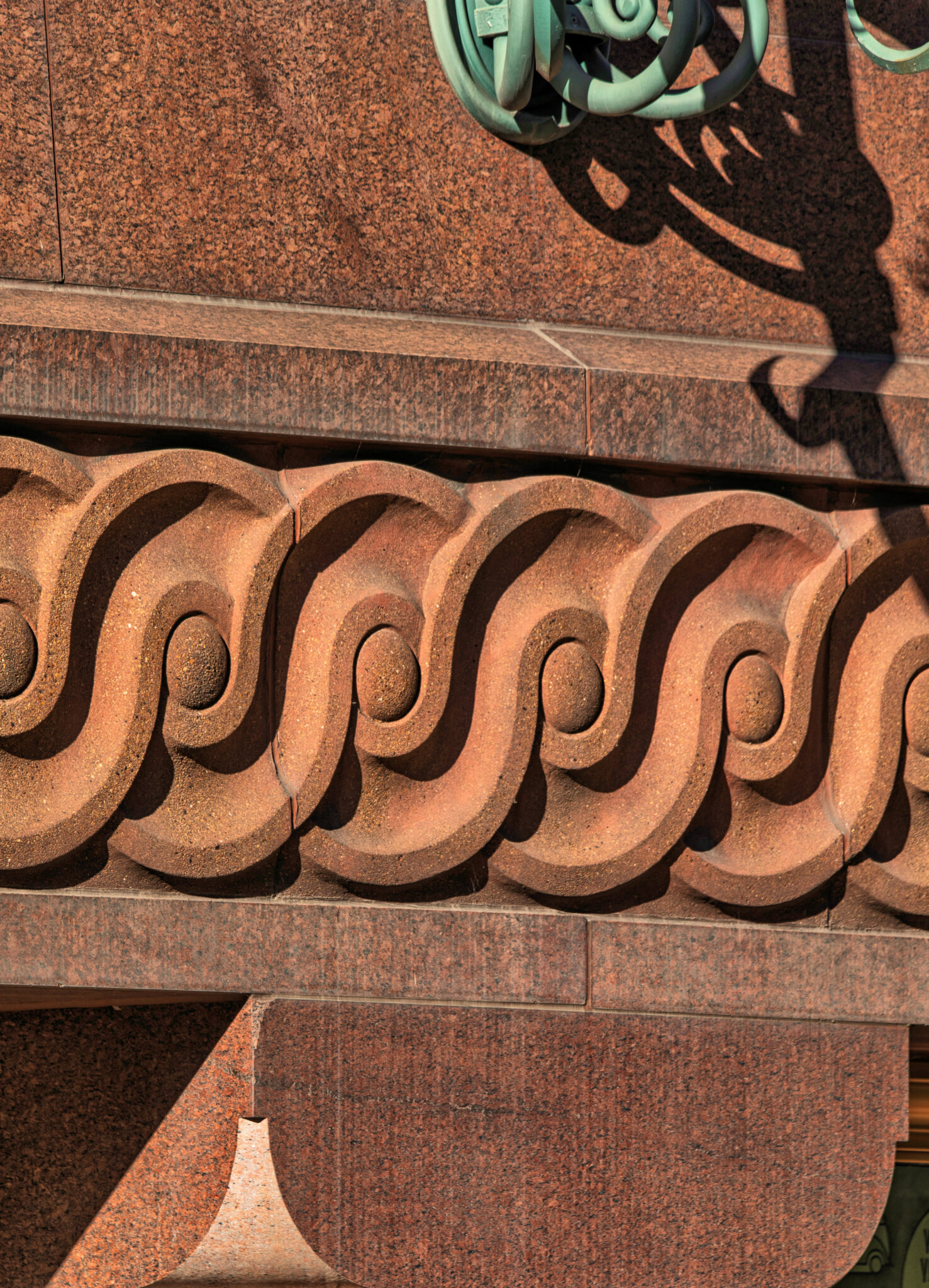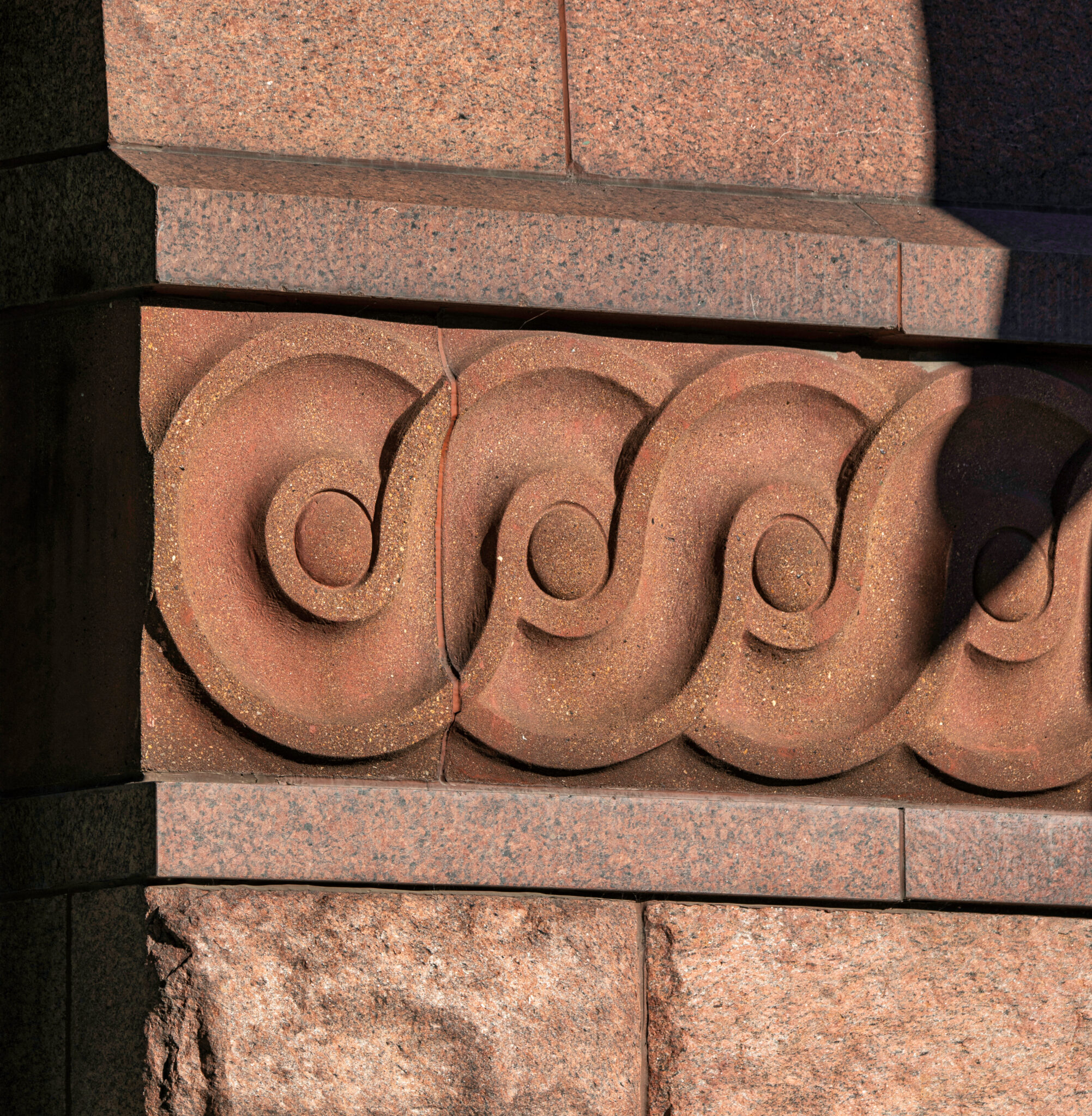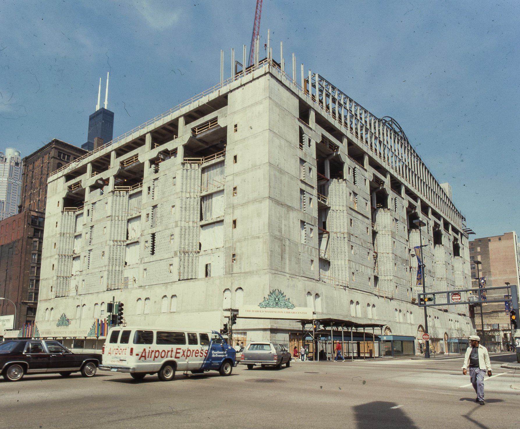 exterior detail images of hammond, beeby, and babka’s 10-story harold washington library (1991), located at 400 south state street, chicago, il.