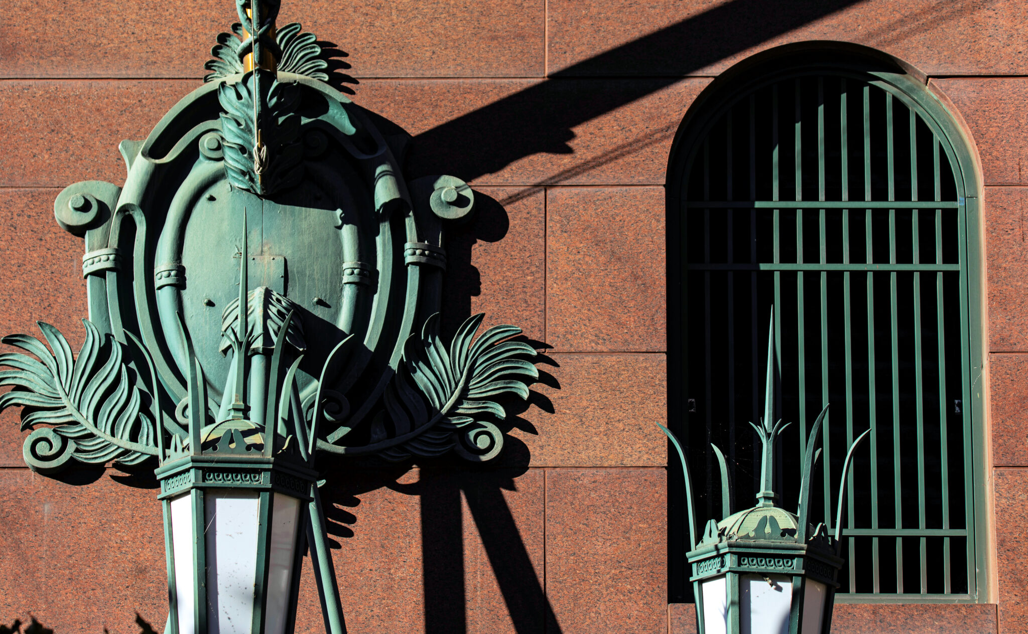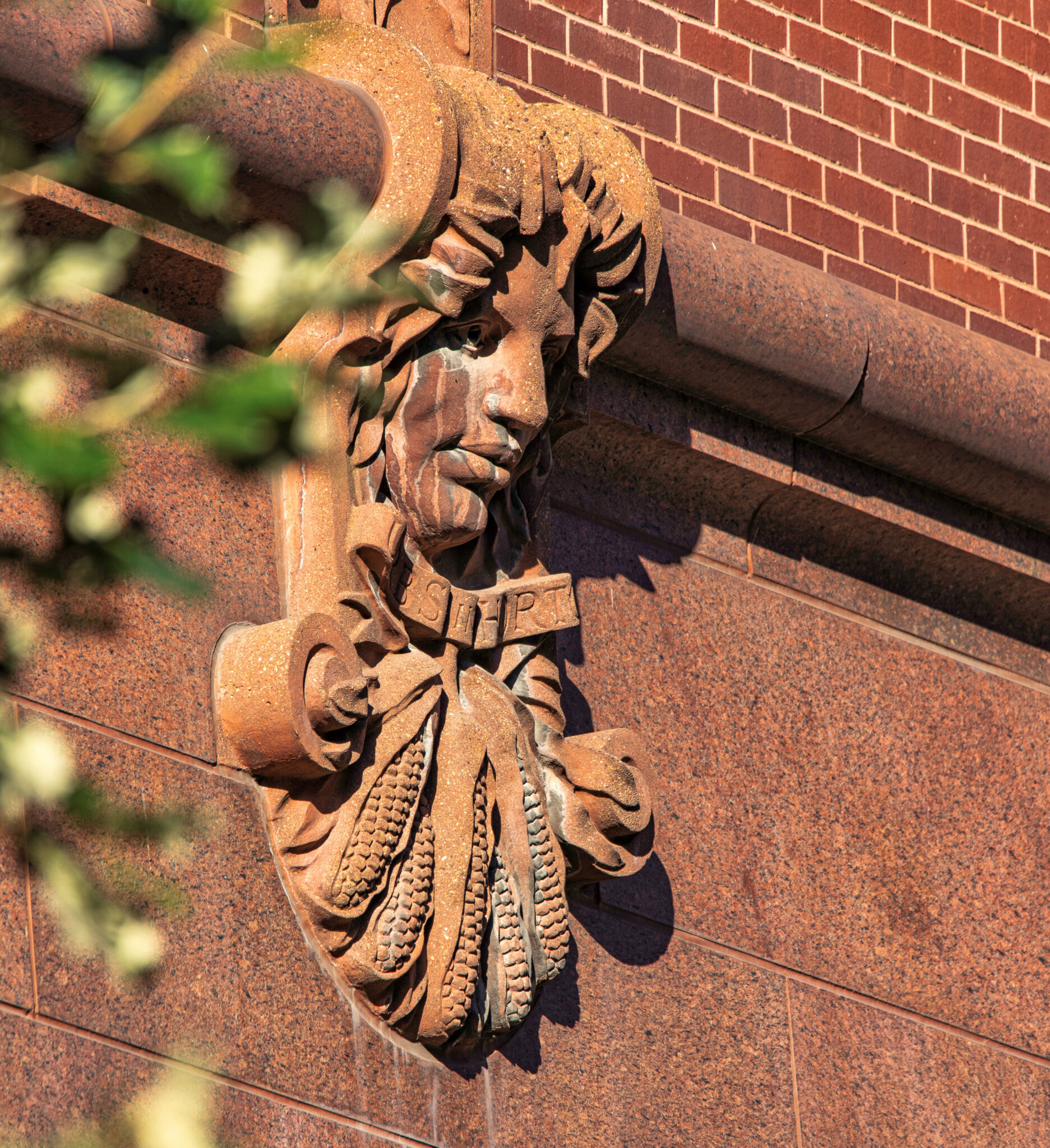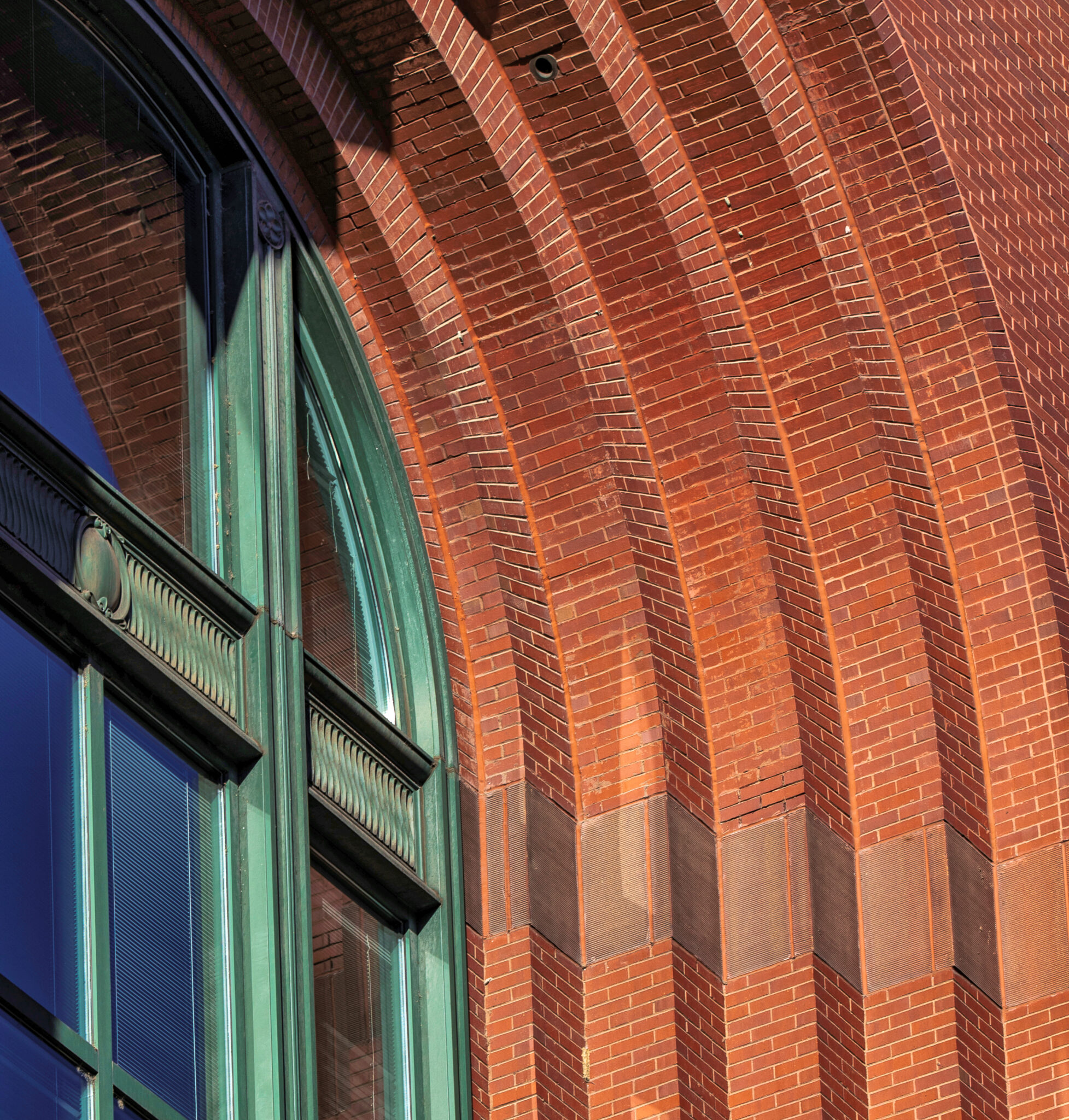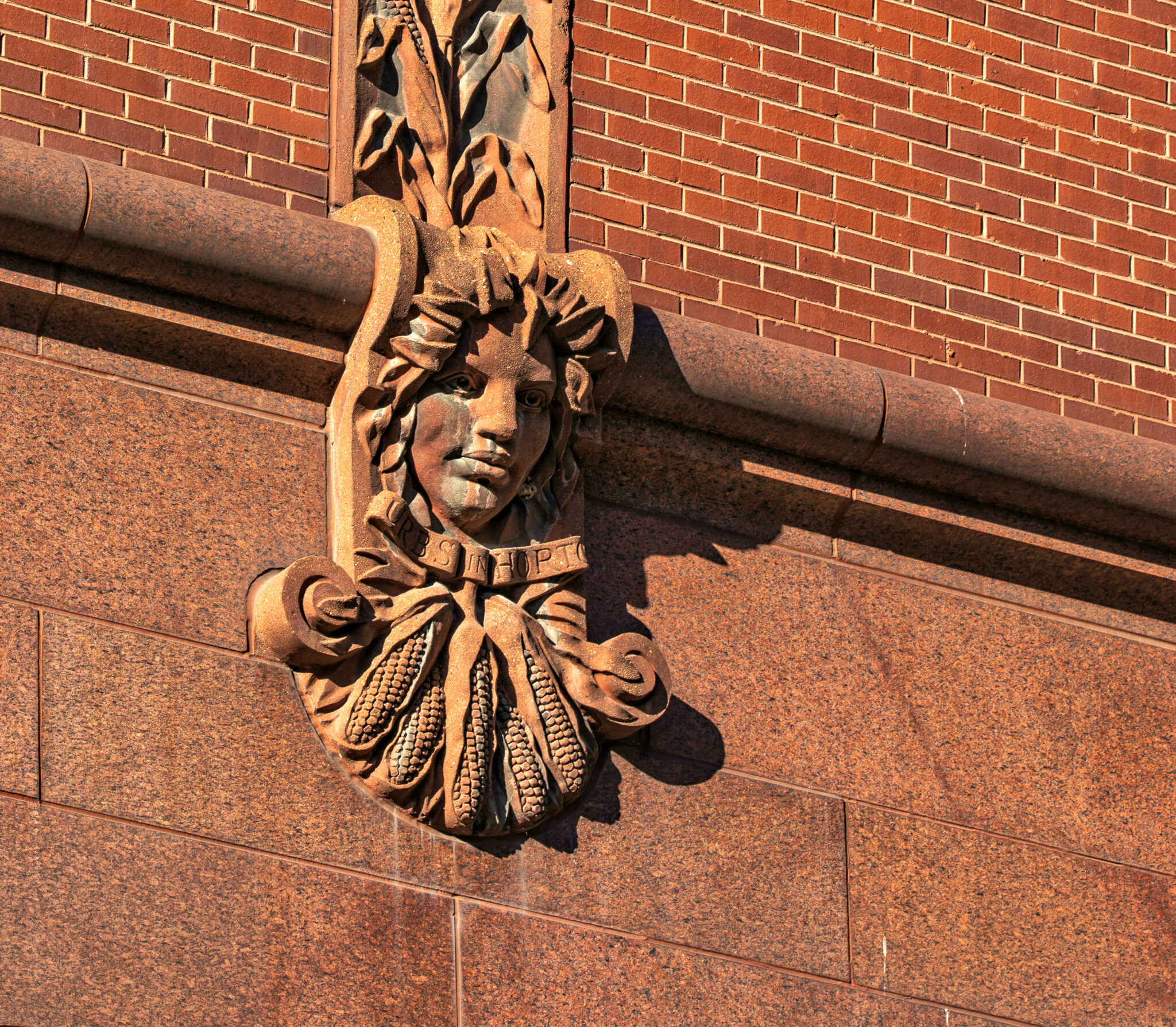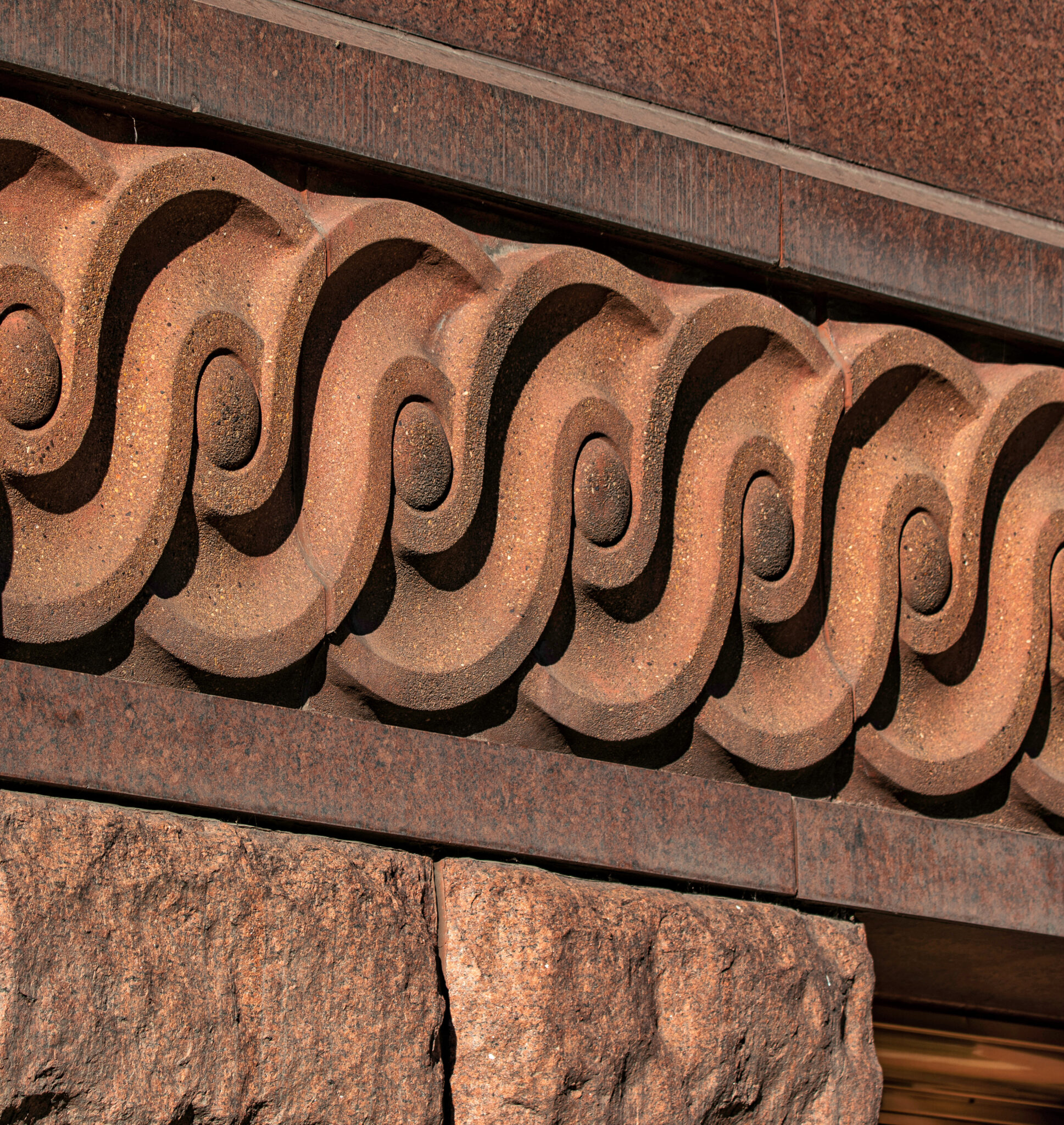 exterior detail images of hammond, beeby, and babka’s 10-story harold washington library (1991), located at 400 south state street, chicago, il.