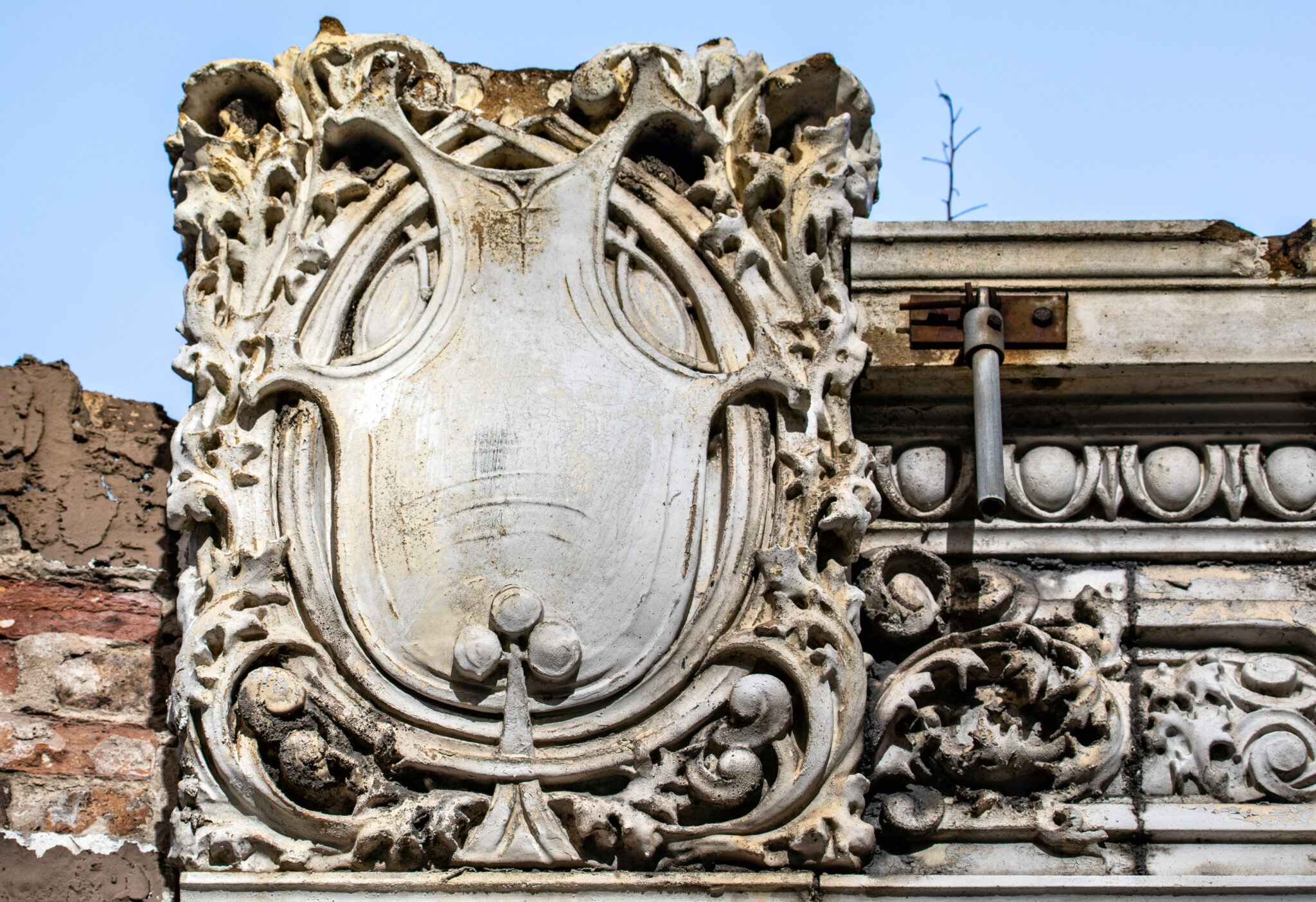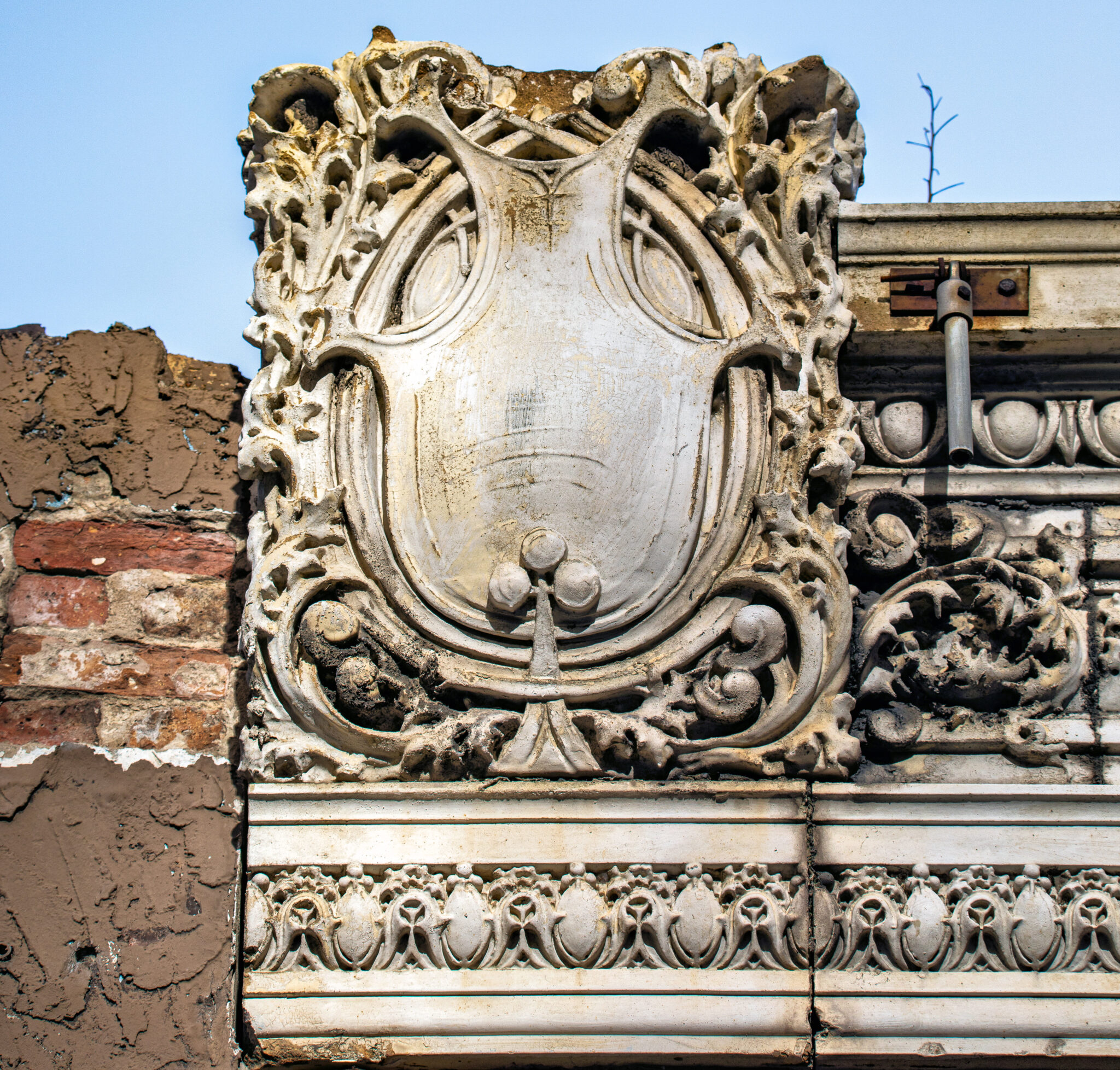 interestingly, both the matte finish and overall execution of the 1902 ornament were far more superior than the ornament on the addition. sadly, NONE OF THE ORNAMENT was salvaged during demolition in the summer of 2025.