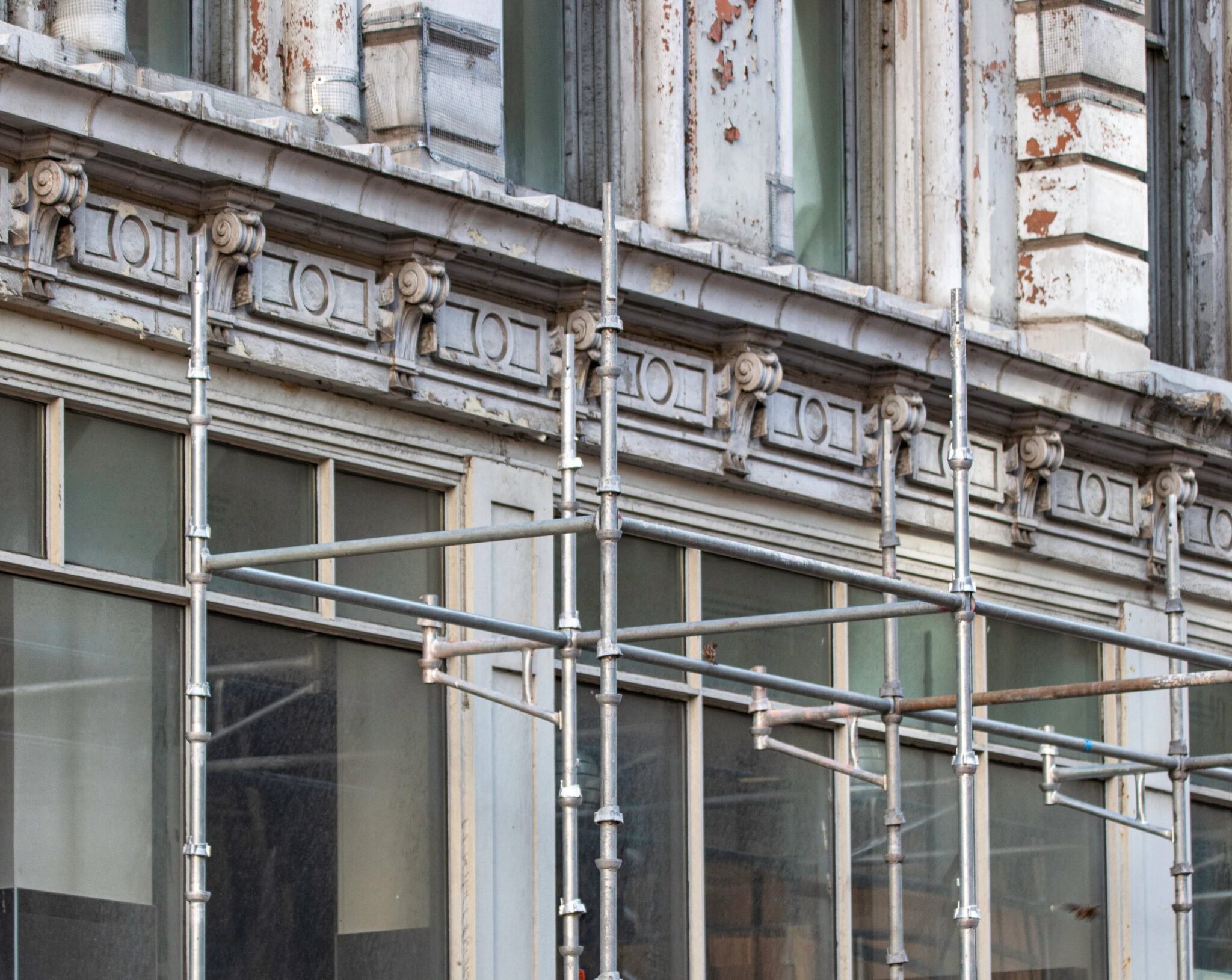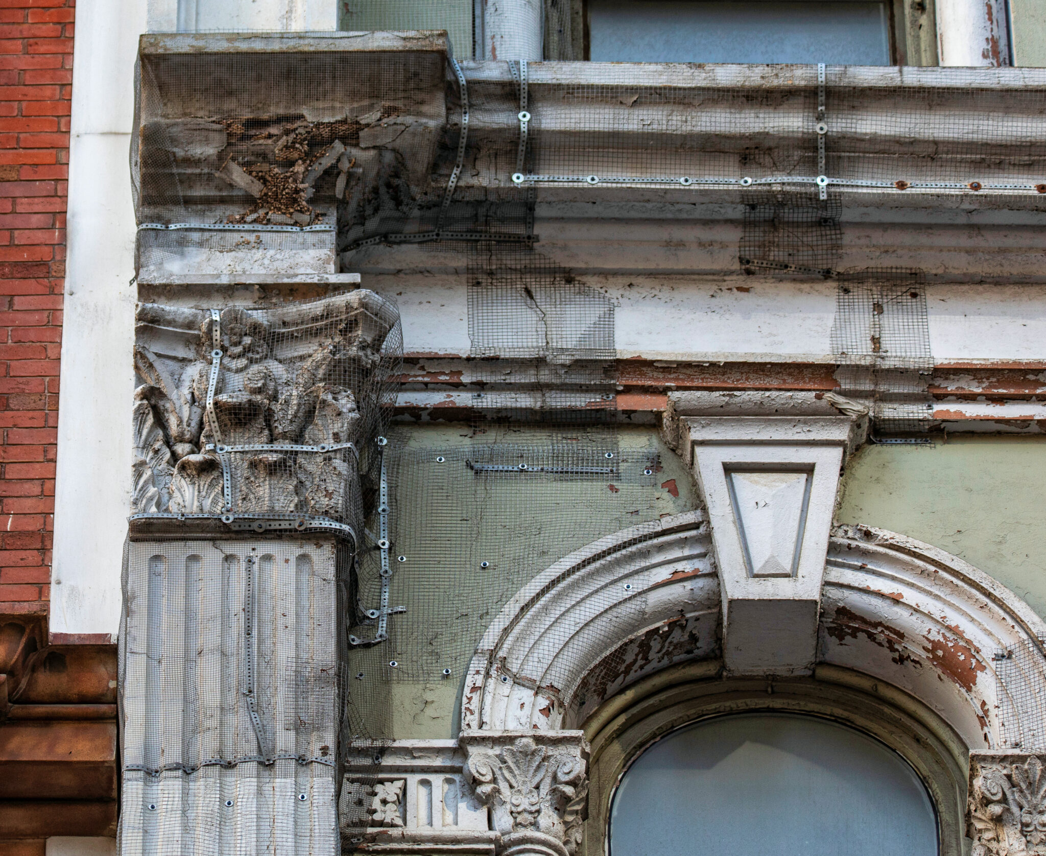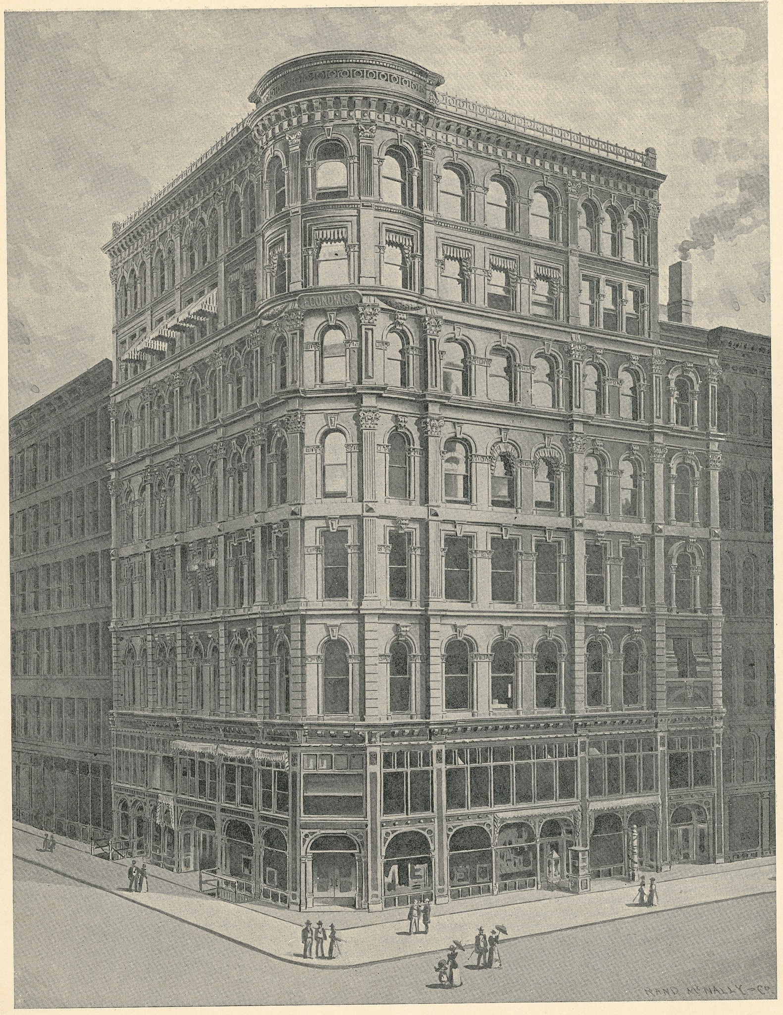 05 Oct exterior detail images of wheelock and thomas’s downtown chicago post-fire bryant building or delaware block