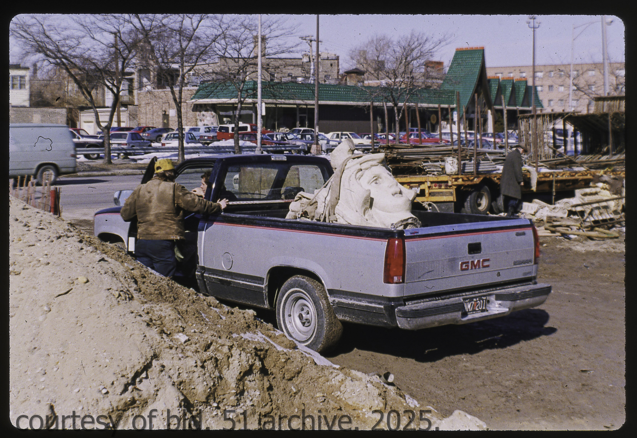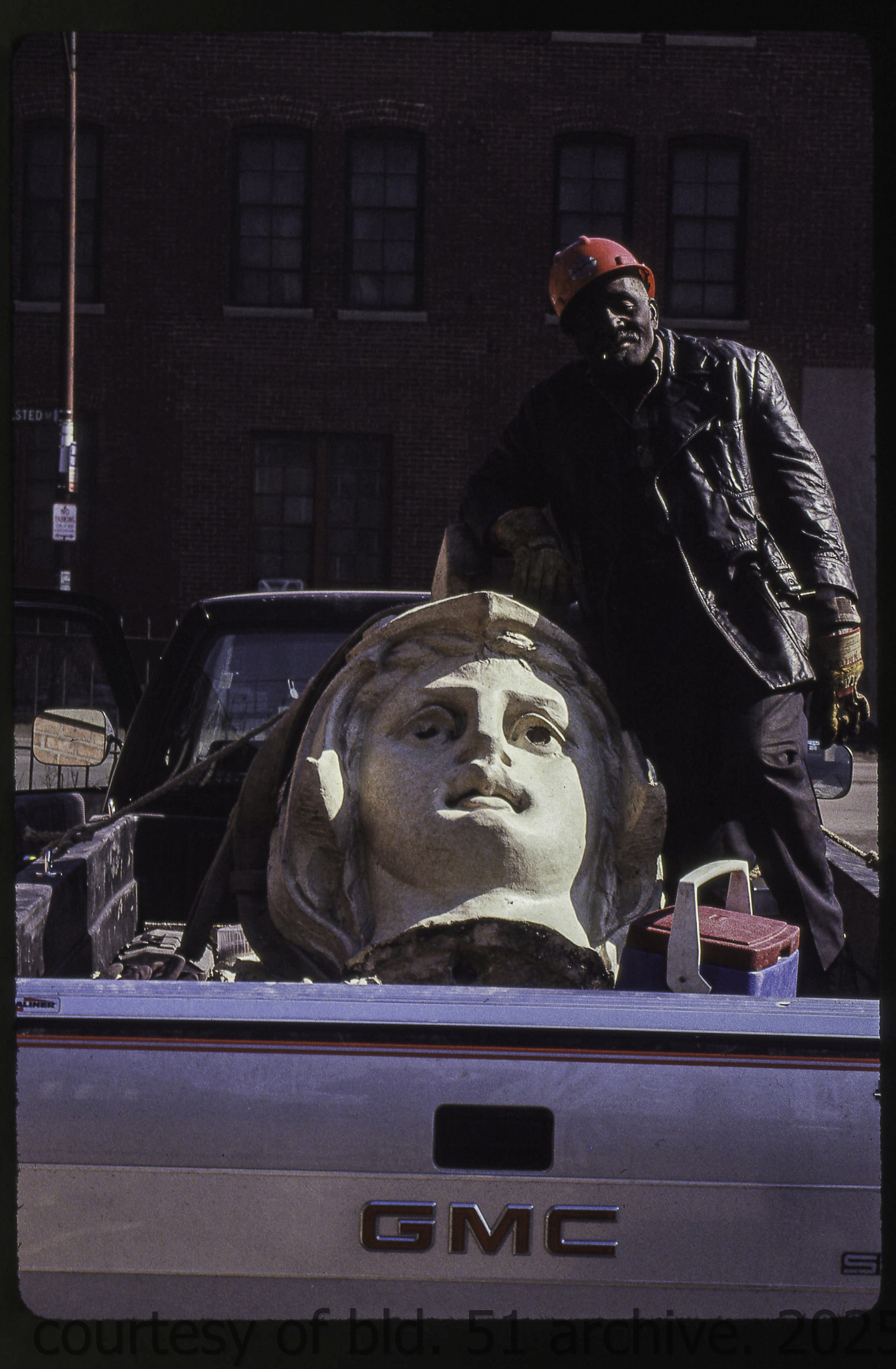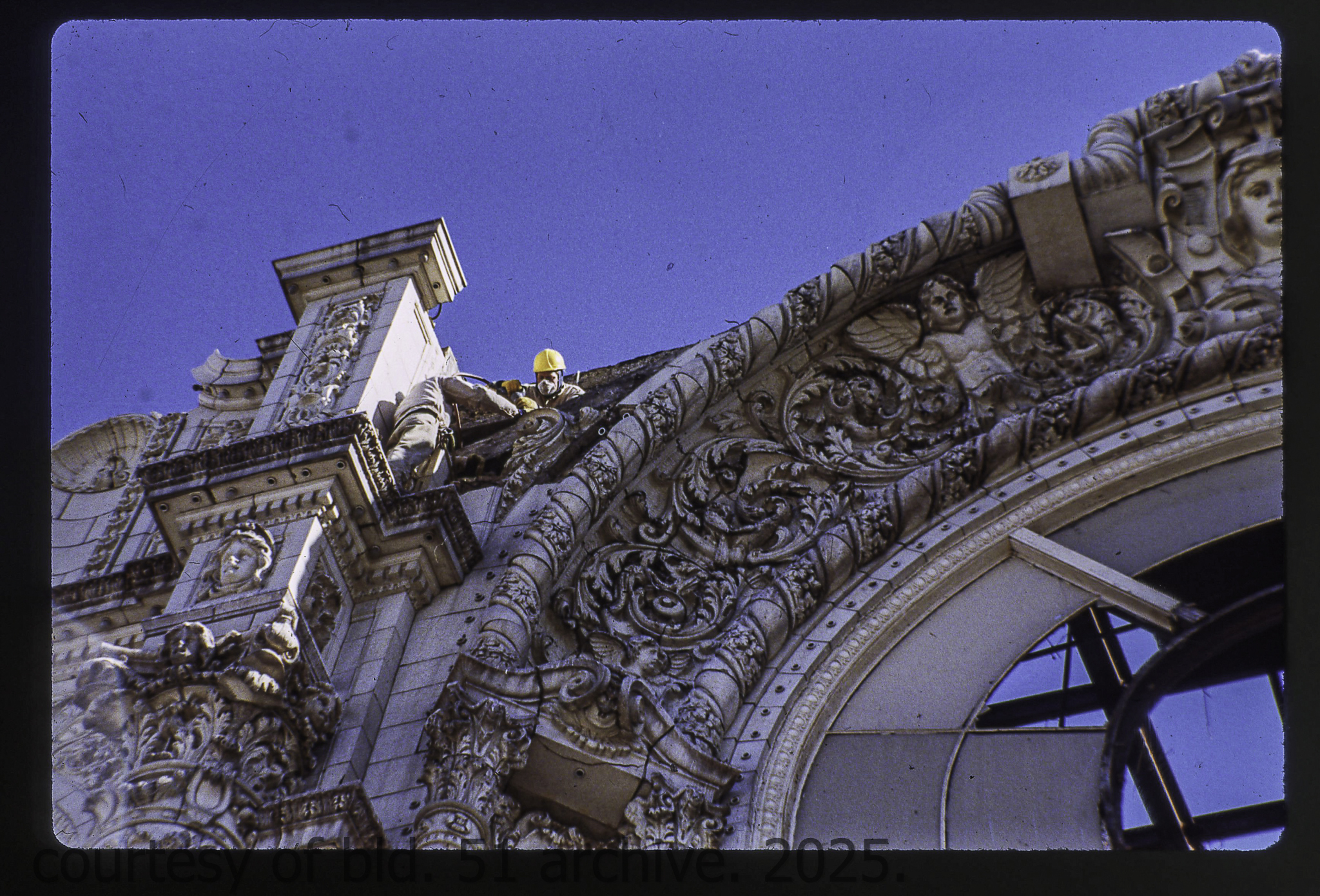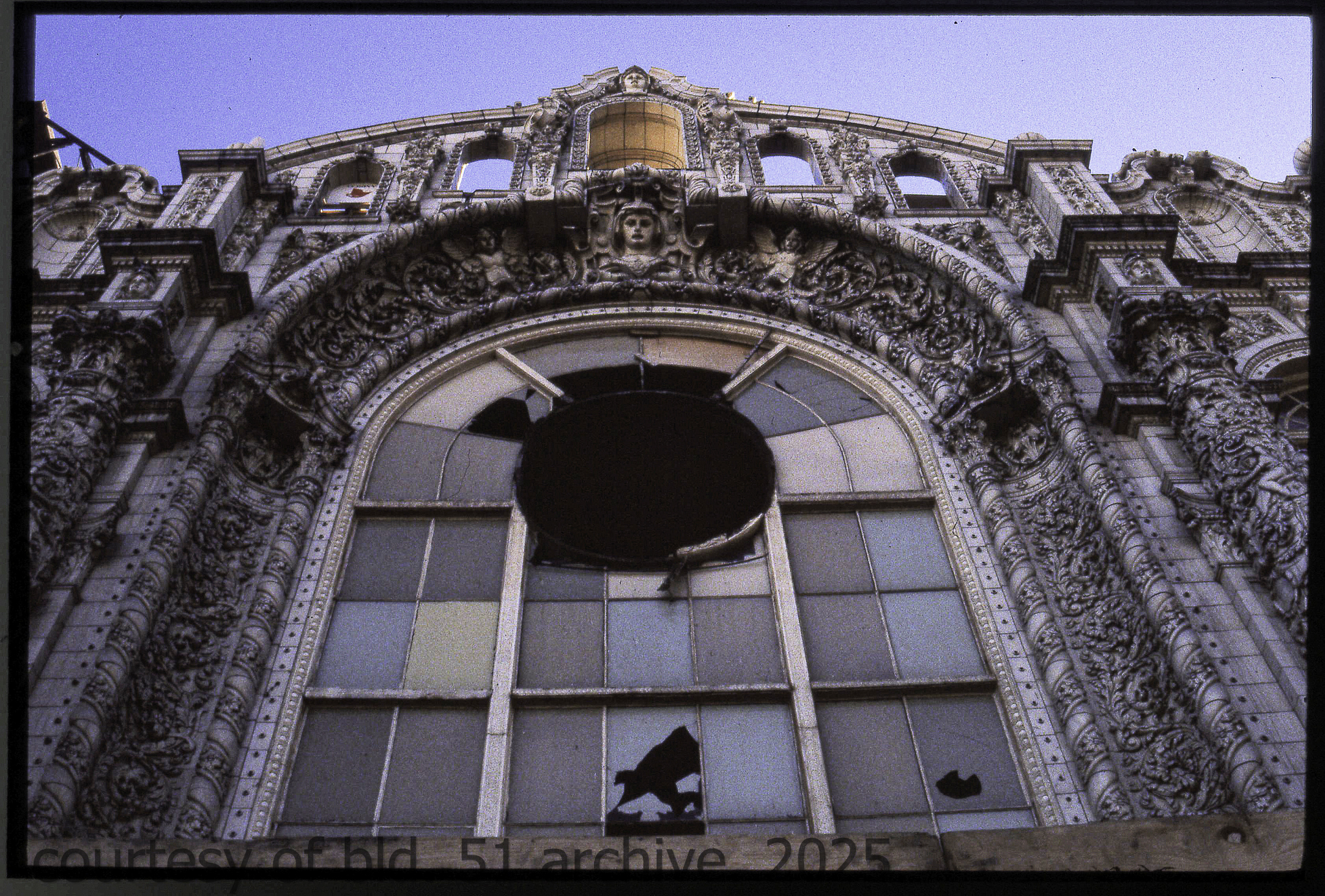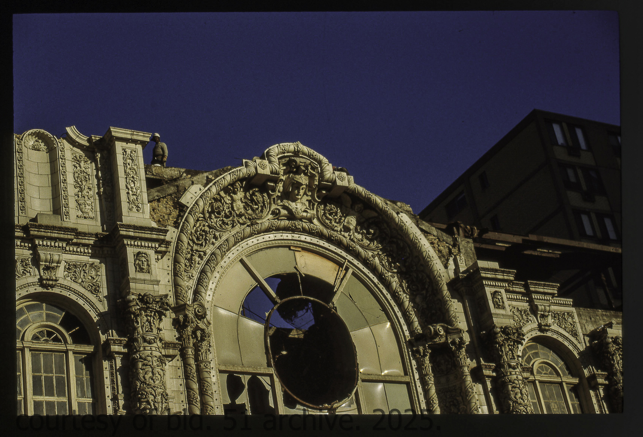 the cream-colored terra cotta facade was salvaged by dave felling of felling contracting, st. louis, mo. during its demolition in 1990 by the g.m. wrecking company, chicago, il.