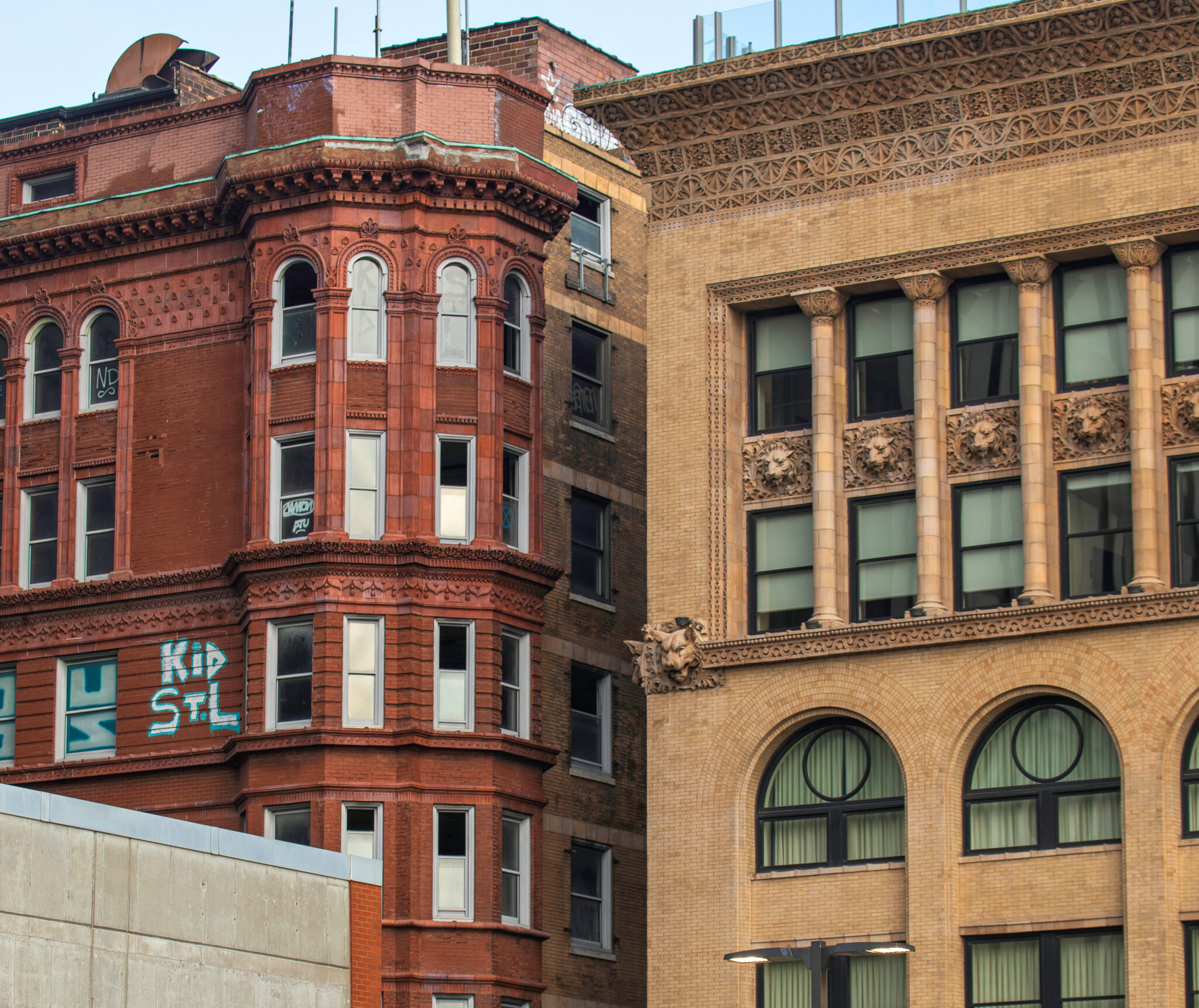 exterior photographic survey of louis h. sullivan-designed terra cotta ornament (executed by winkle of st. louis) on adler and sullivan’s 1893 union trust building, located at 705 olive street, st. louis, mo.