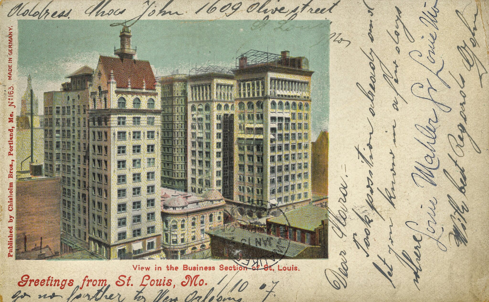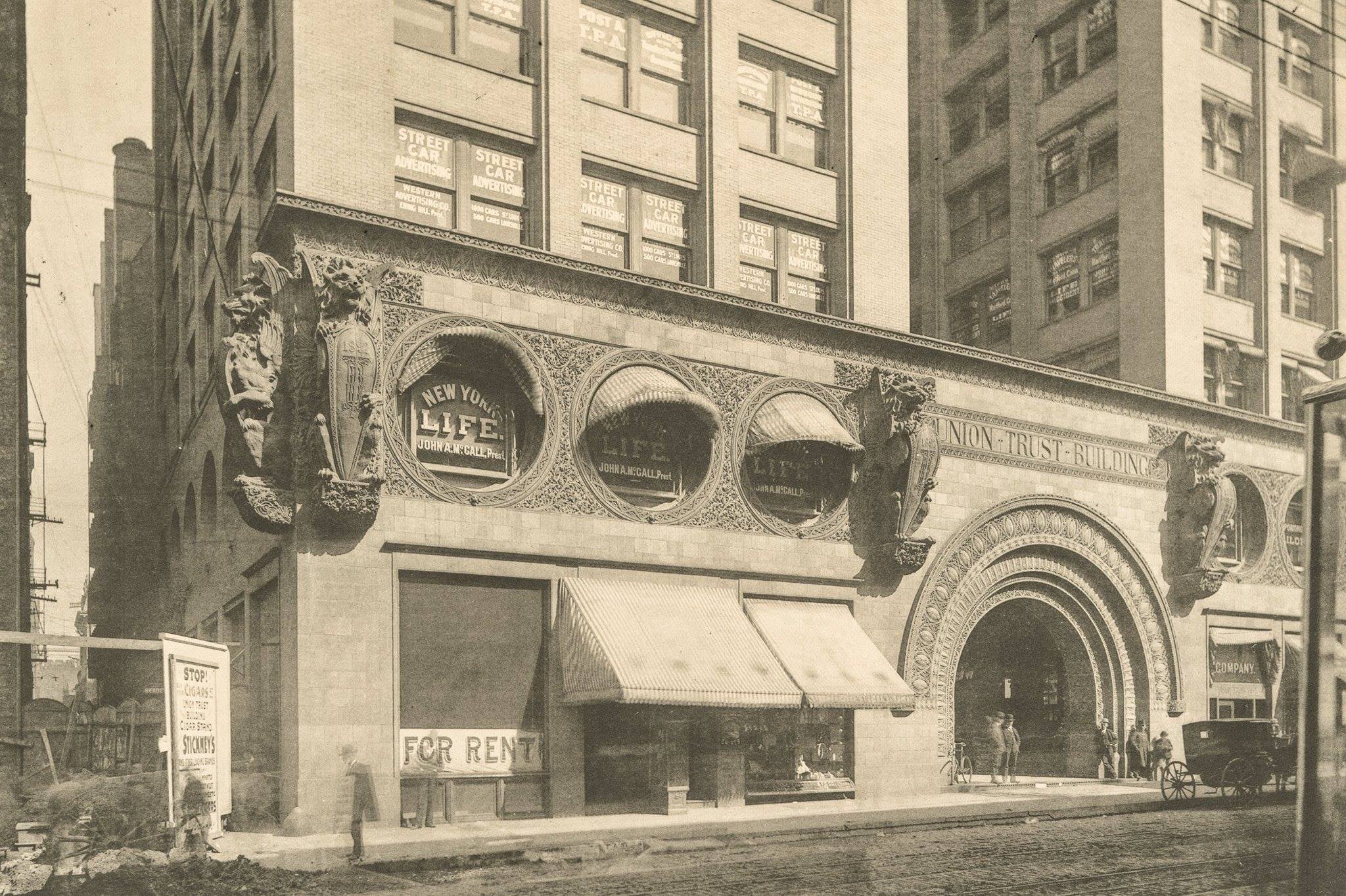 the 14-story union trust building (705 olive street, st. louis) was designed by adler and sullivan between 1892-1893. the image (half-tone) was taken shortly after it was completed.
