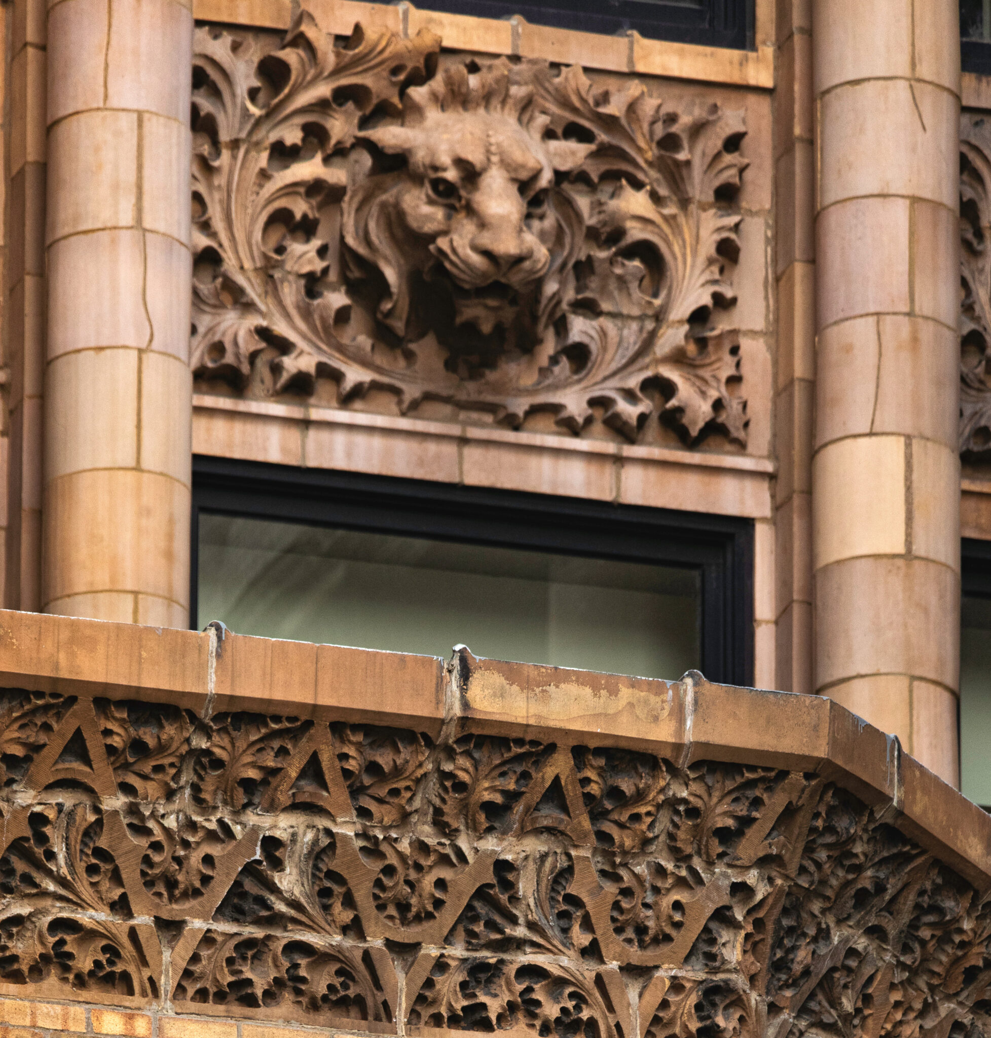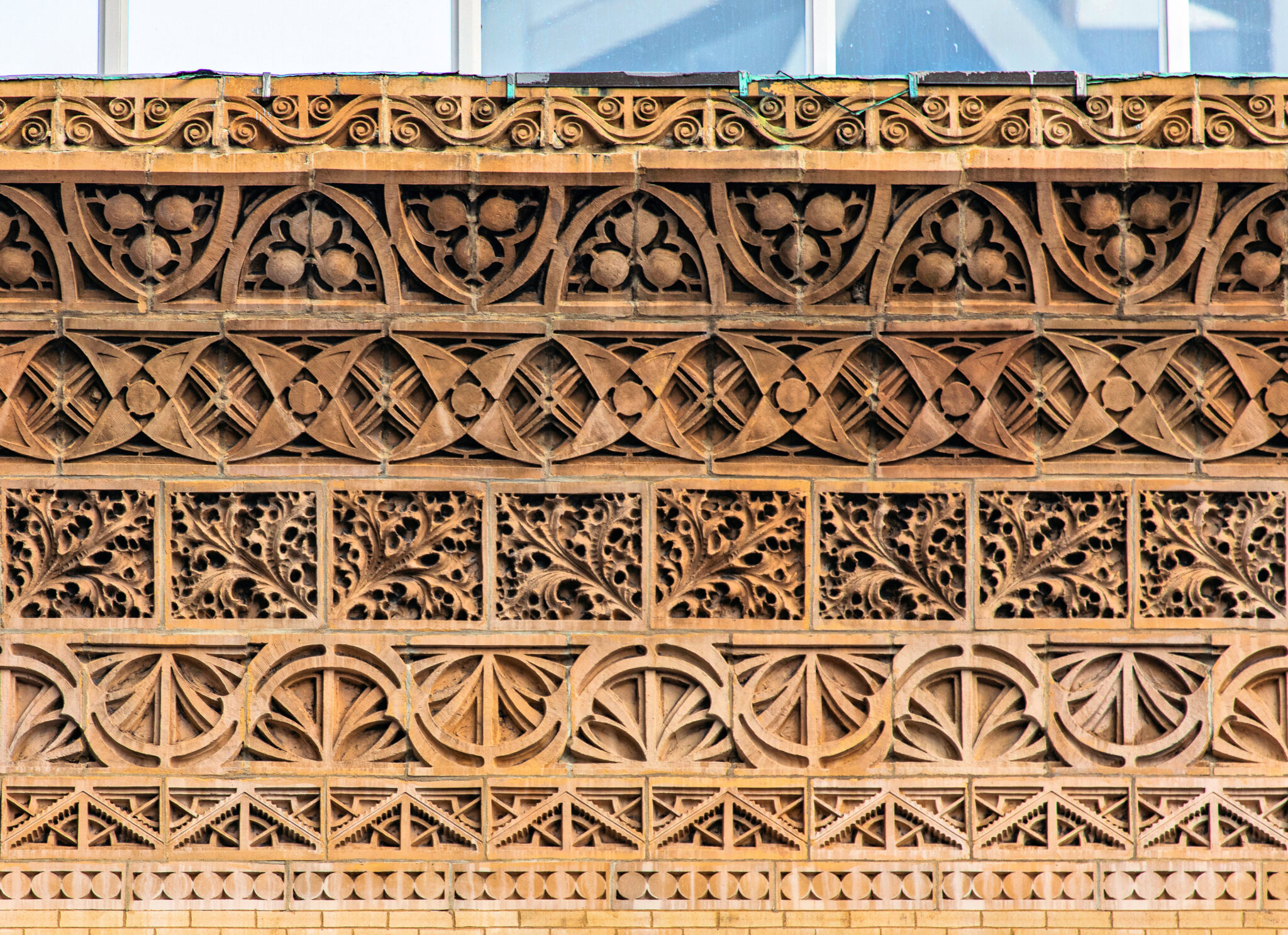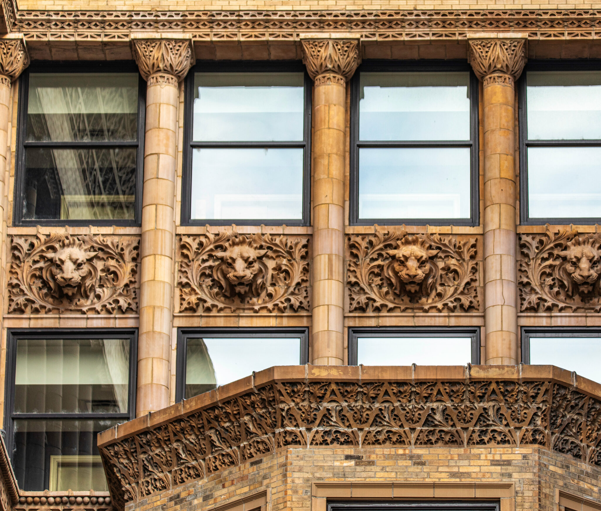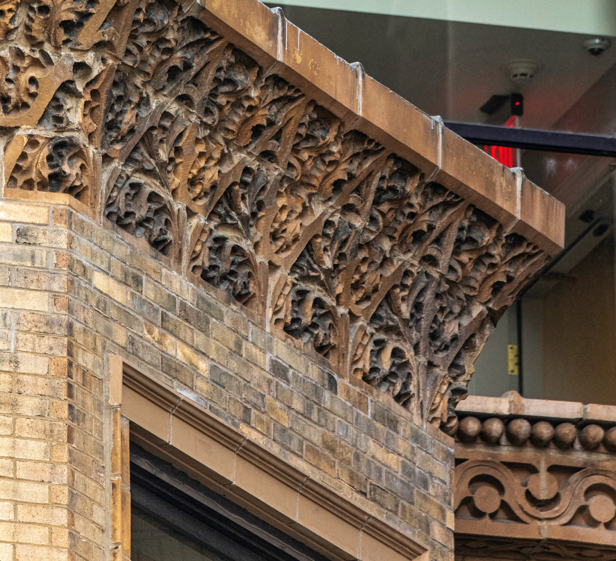 exterior photographic survey of louis h. sullivan-designed terra cotta ornament (executed by winkle of st. louis) on adler and sullivan’s 1893 union trust building, located at 705 olive street, st. louis, mo.