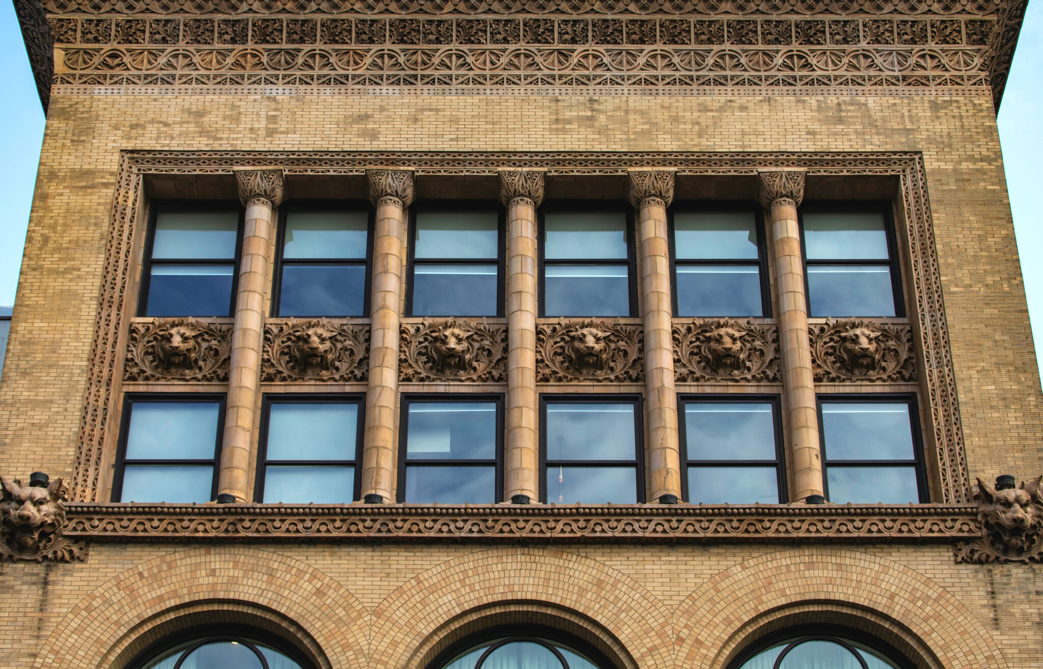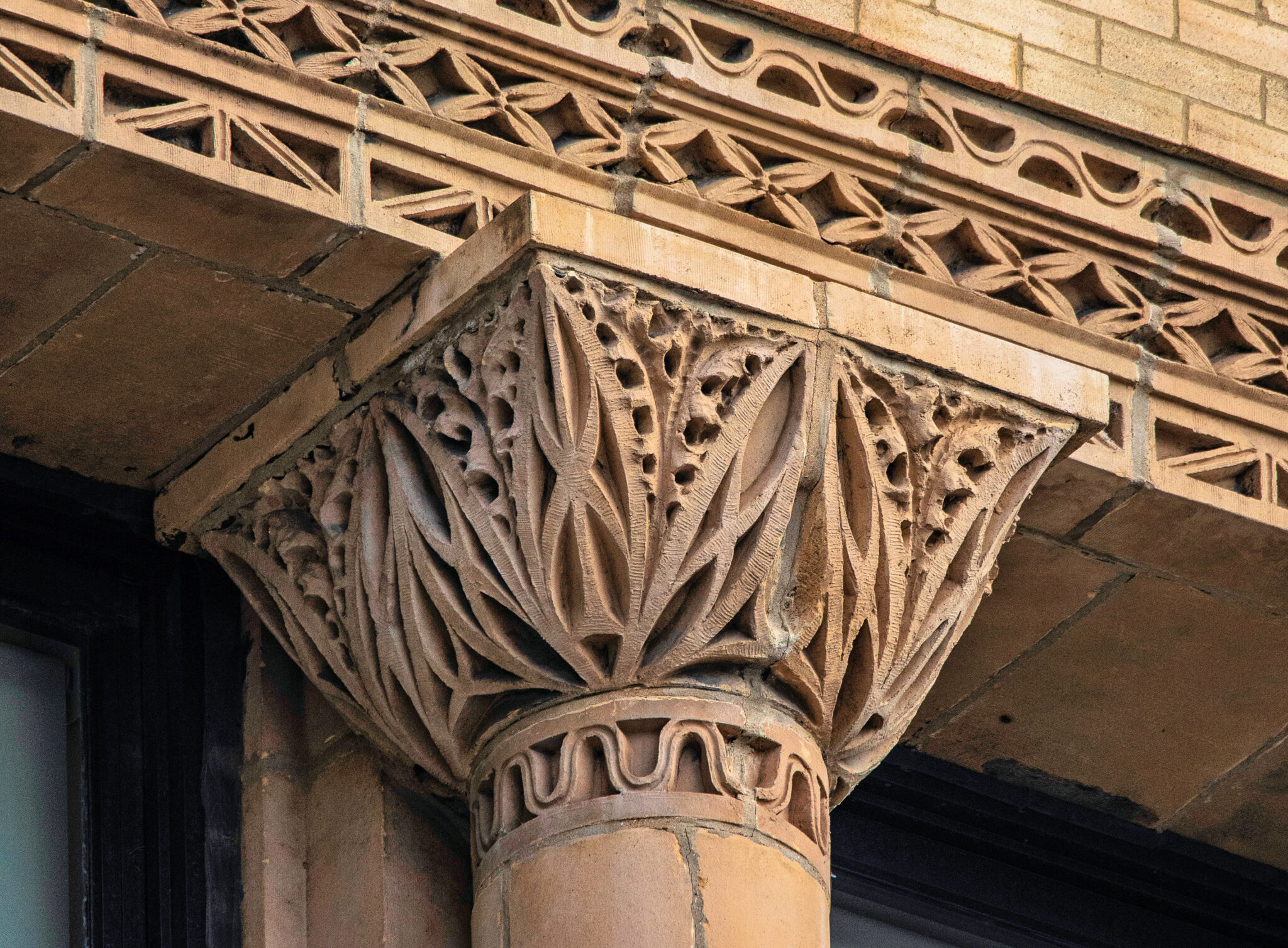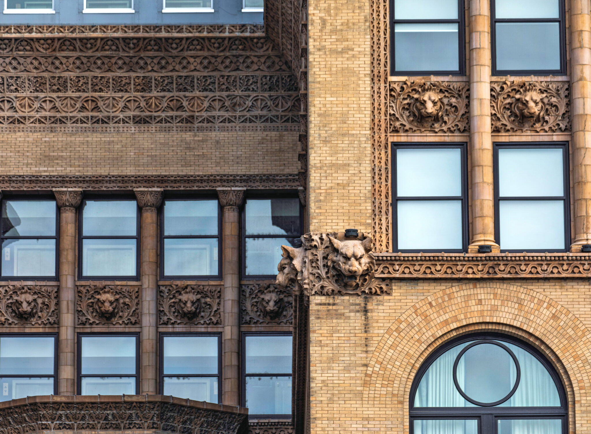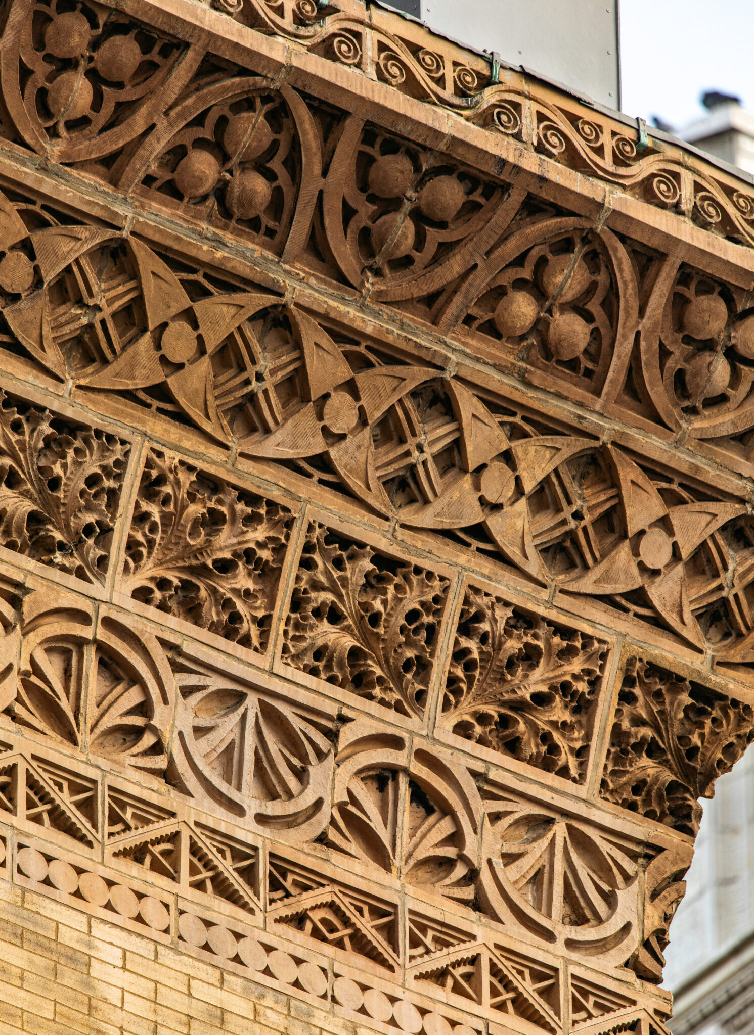 exterior photographic survey of louis h. sullivan-designed terra cotta ornament (executed by winkle of st. louis) on adler and sullivan’s 1893 union trust building, located at 705 olive street, st. louis, mo.