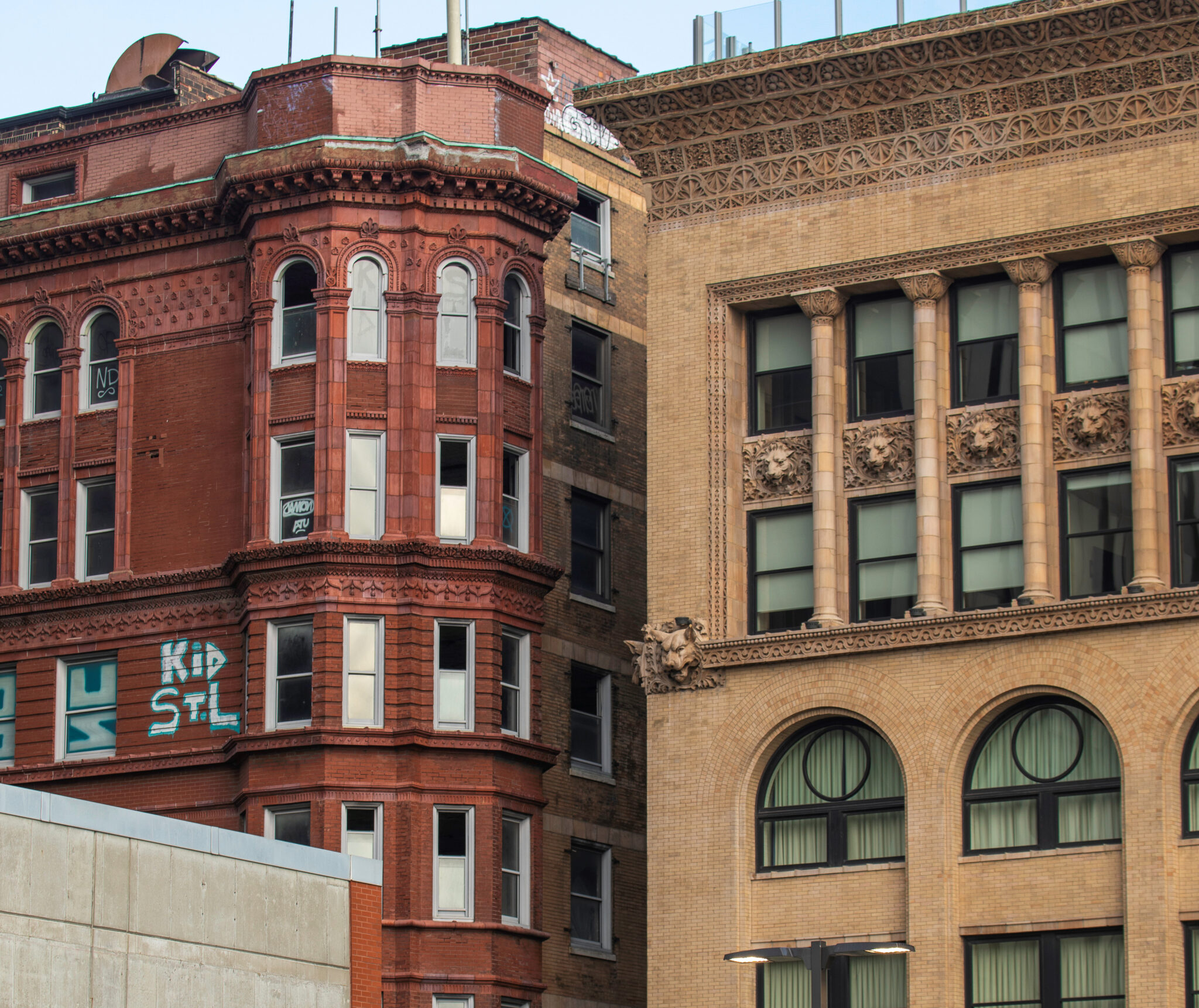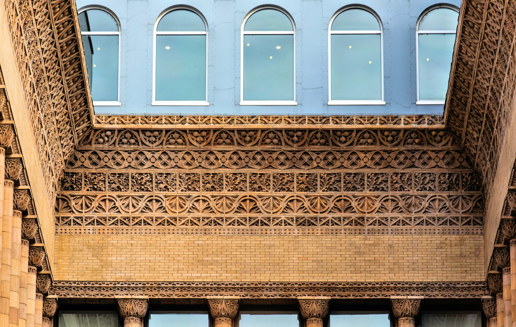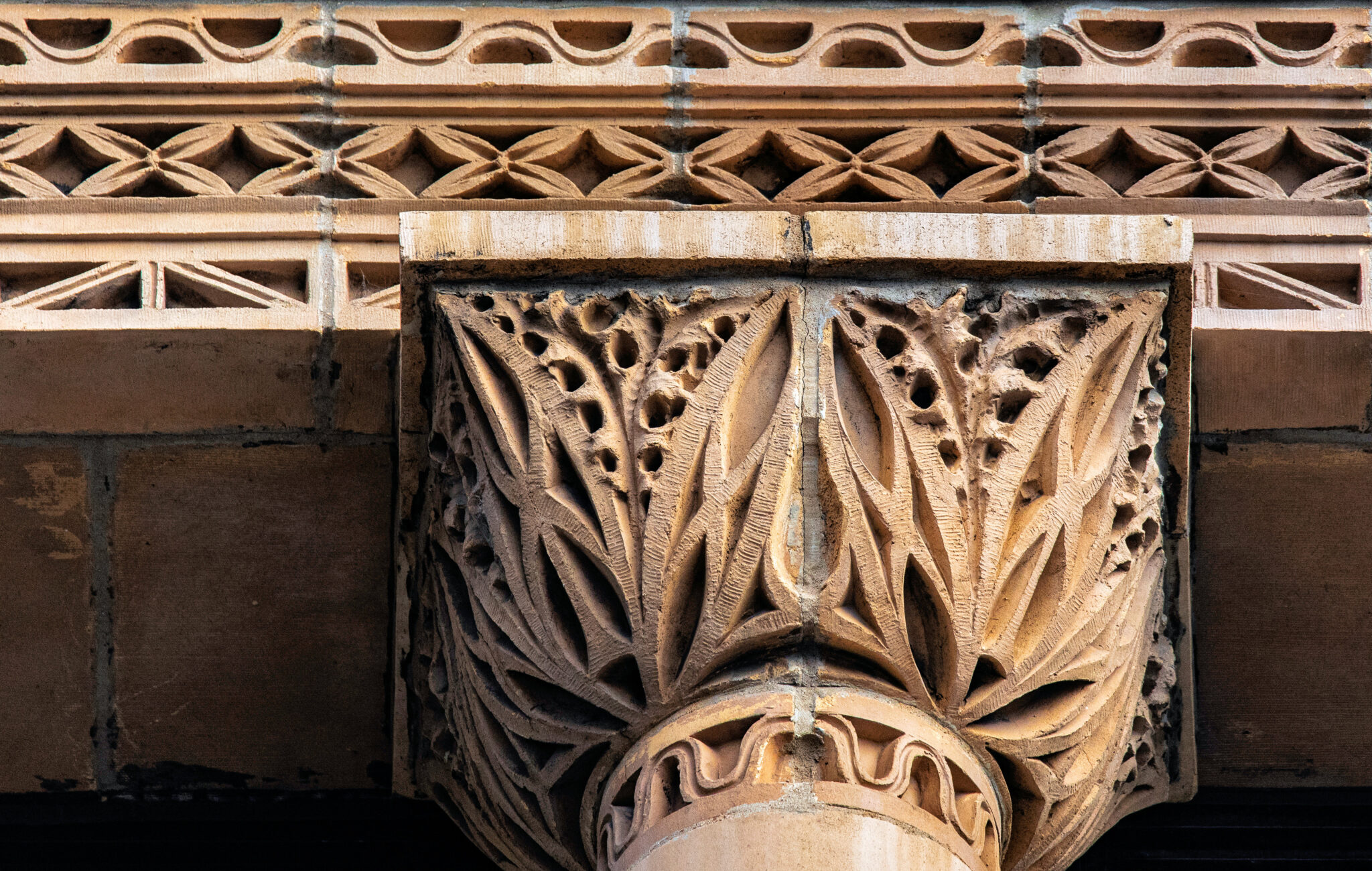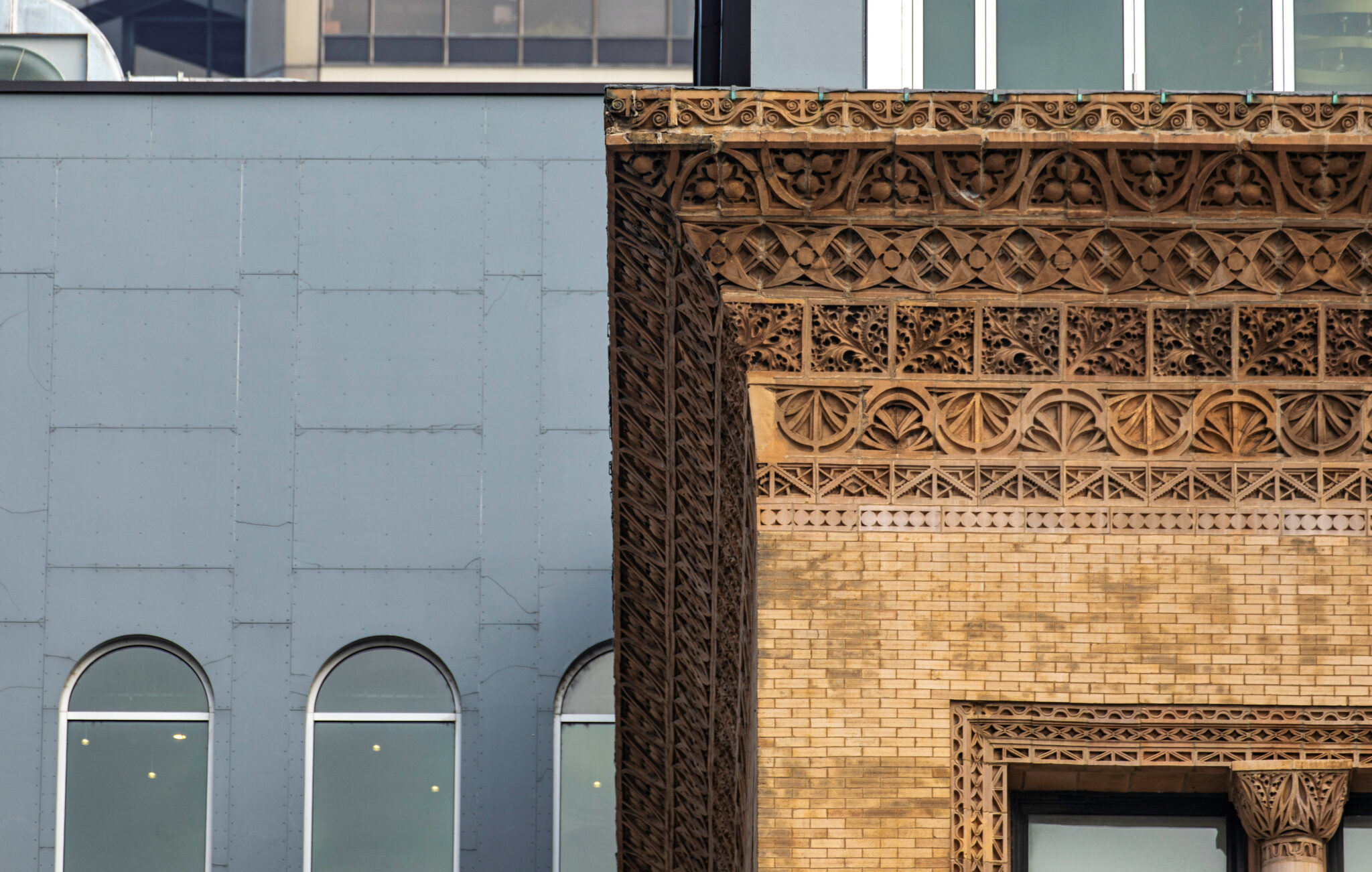 exterior photographic survey of louis h. sullivan-designed terra cotta ornament (executed by winkle of st. louis) on adler and sullivan’s 1893 union trust building, located at 705 olive street, st. louis, mo.