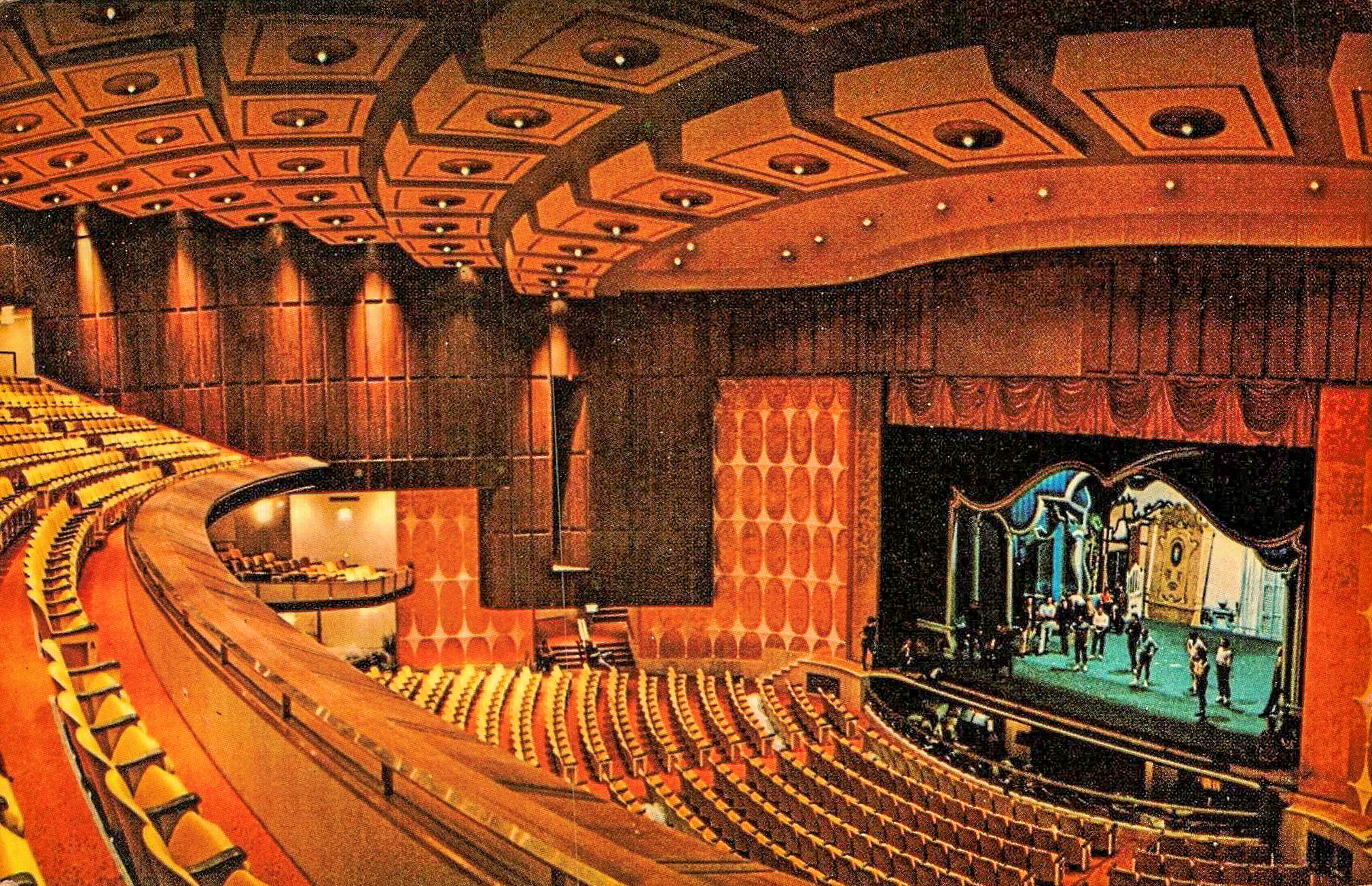 the theater was completely gutted in 1961 – replacing the auditorium’s mayan revival theme with mid-century modern and renaming it the “new fisher theater.”