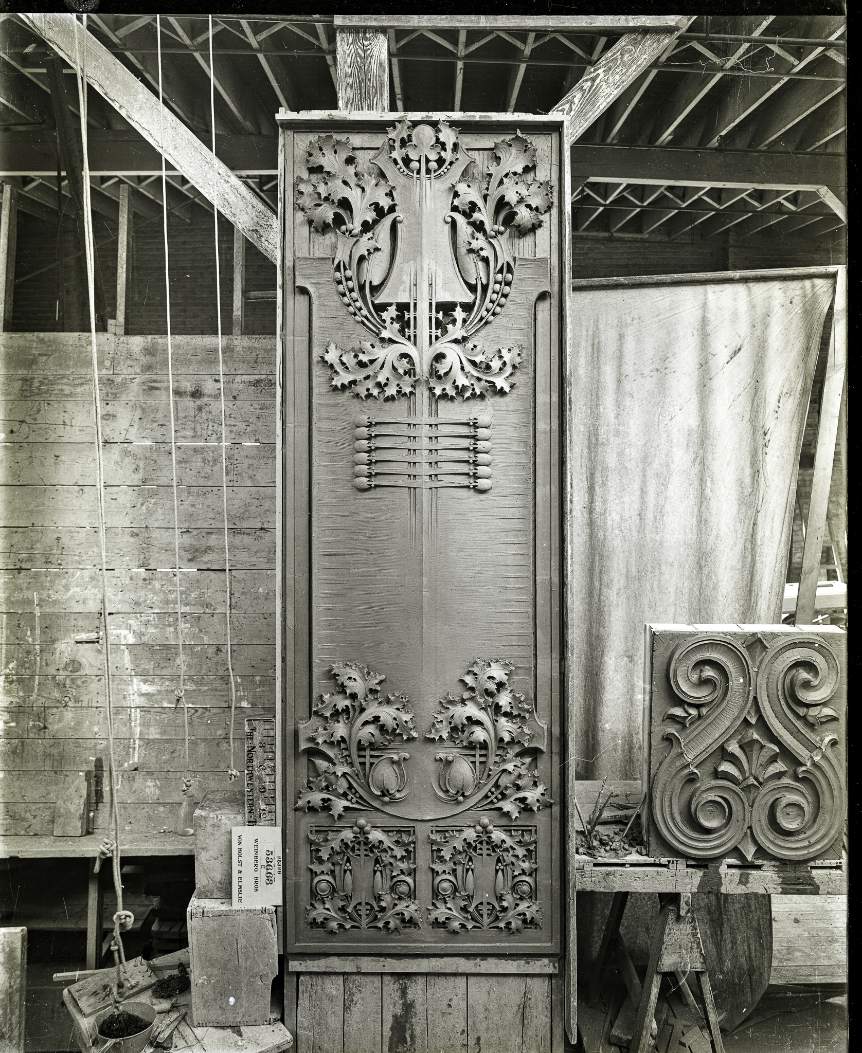 a collection of original and historially important late 19th and early 20th century 8 x 10 glass plate negatives of seldom seen interior views of both northwestern terra cotta company and the american terra cotta company modeling rooms featuring sullivanesque style building ornament – both finished product and various stages of development – have been carefully cleaned and digitized.