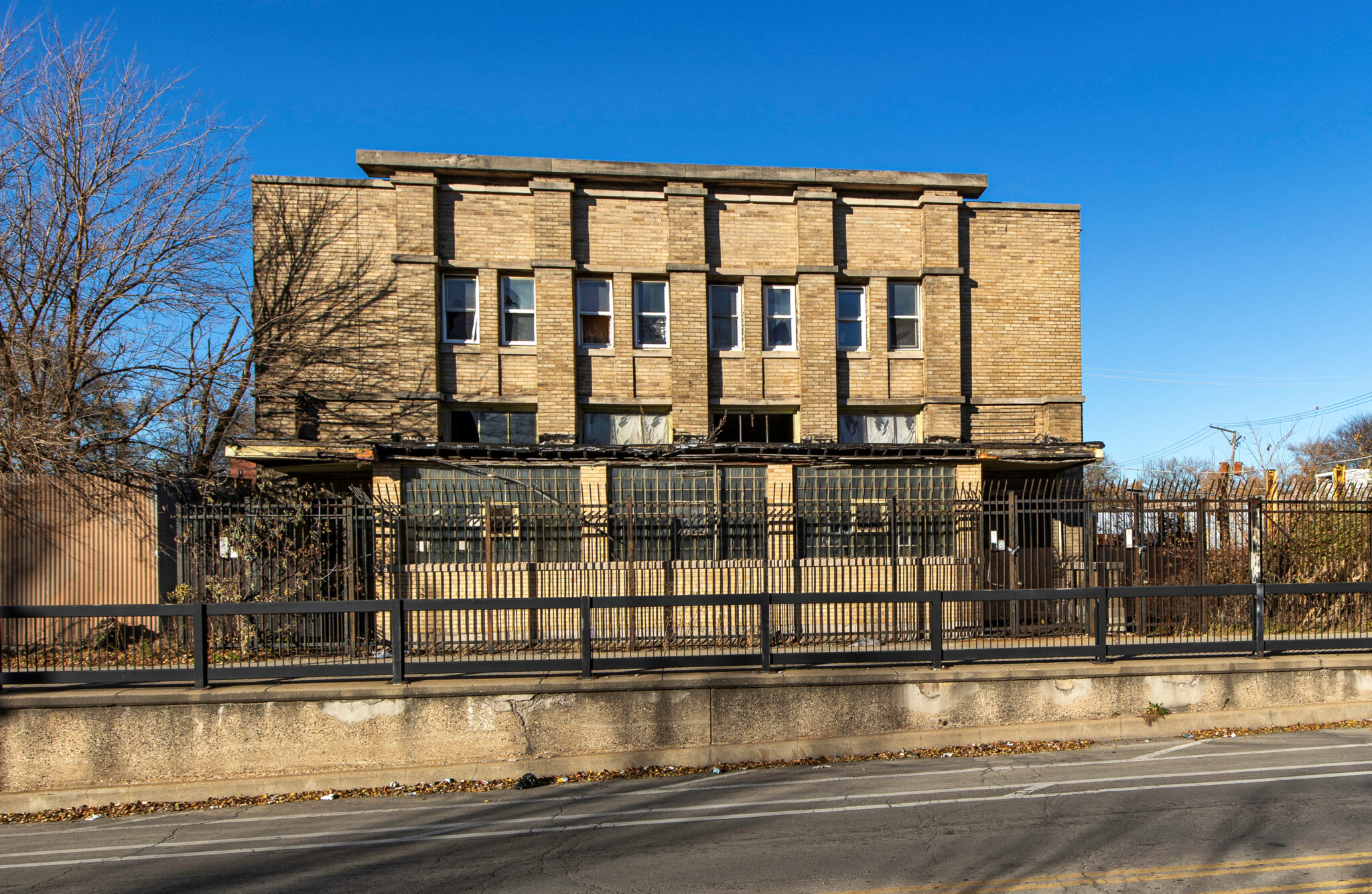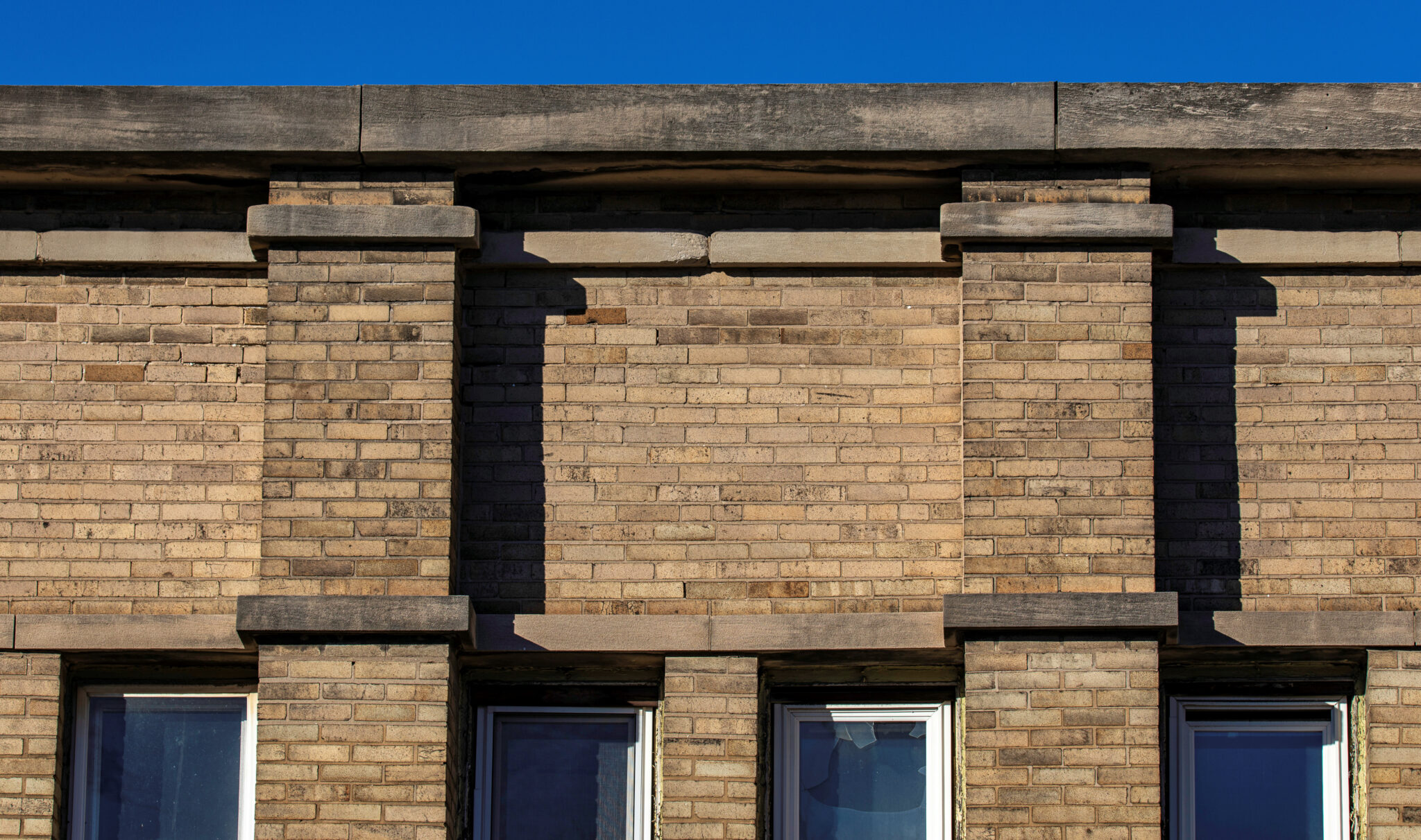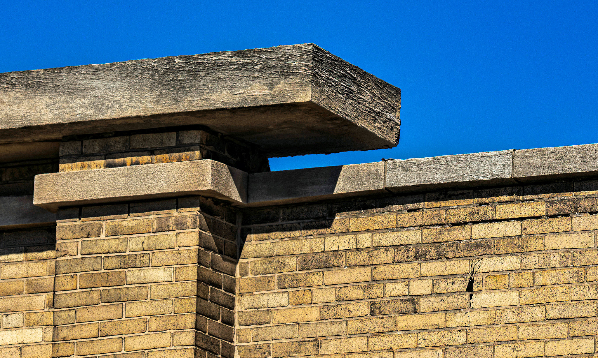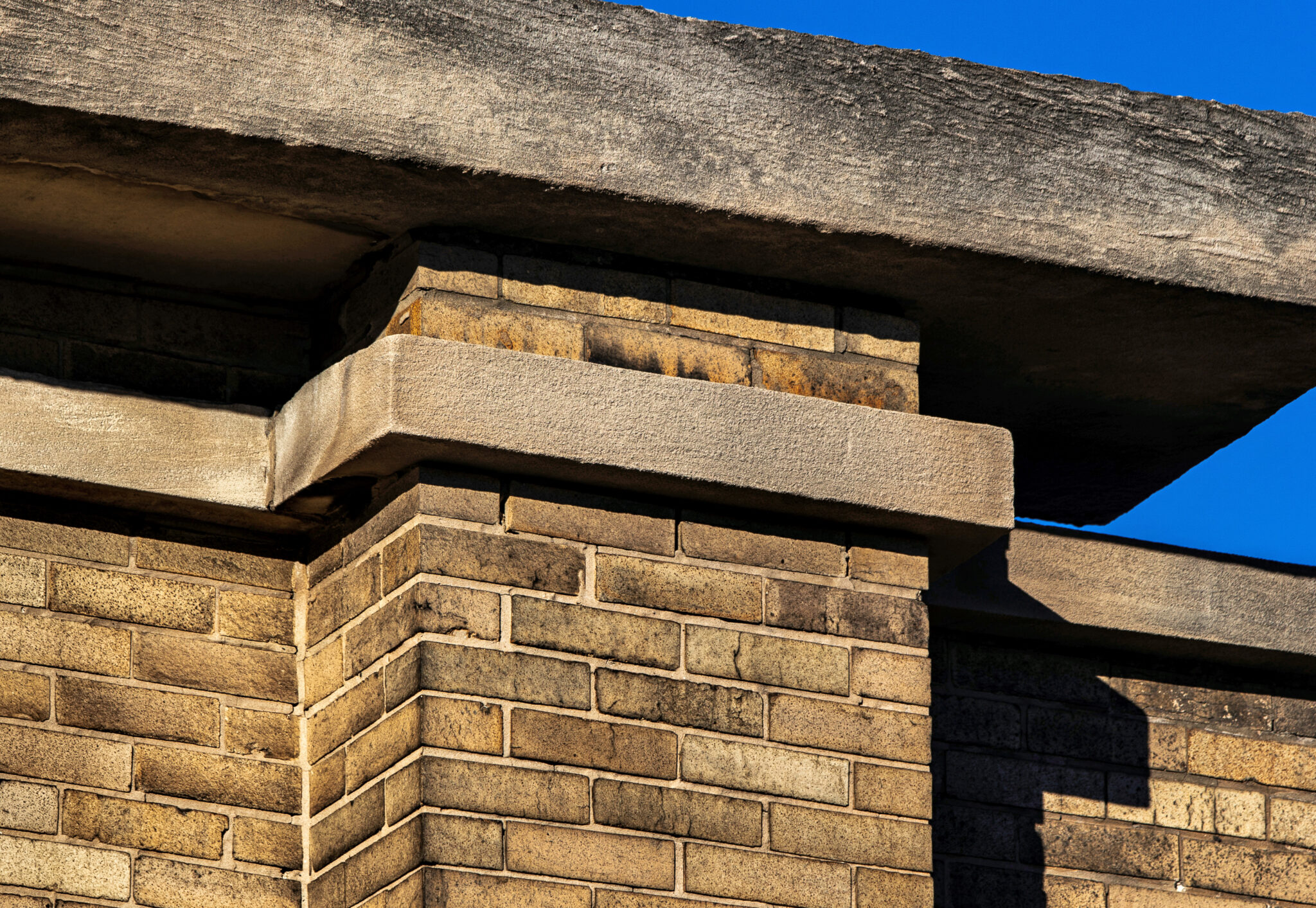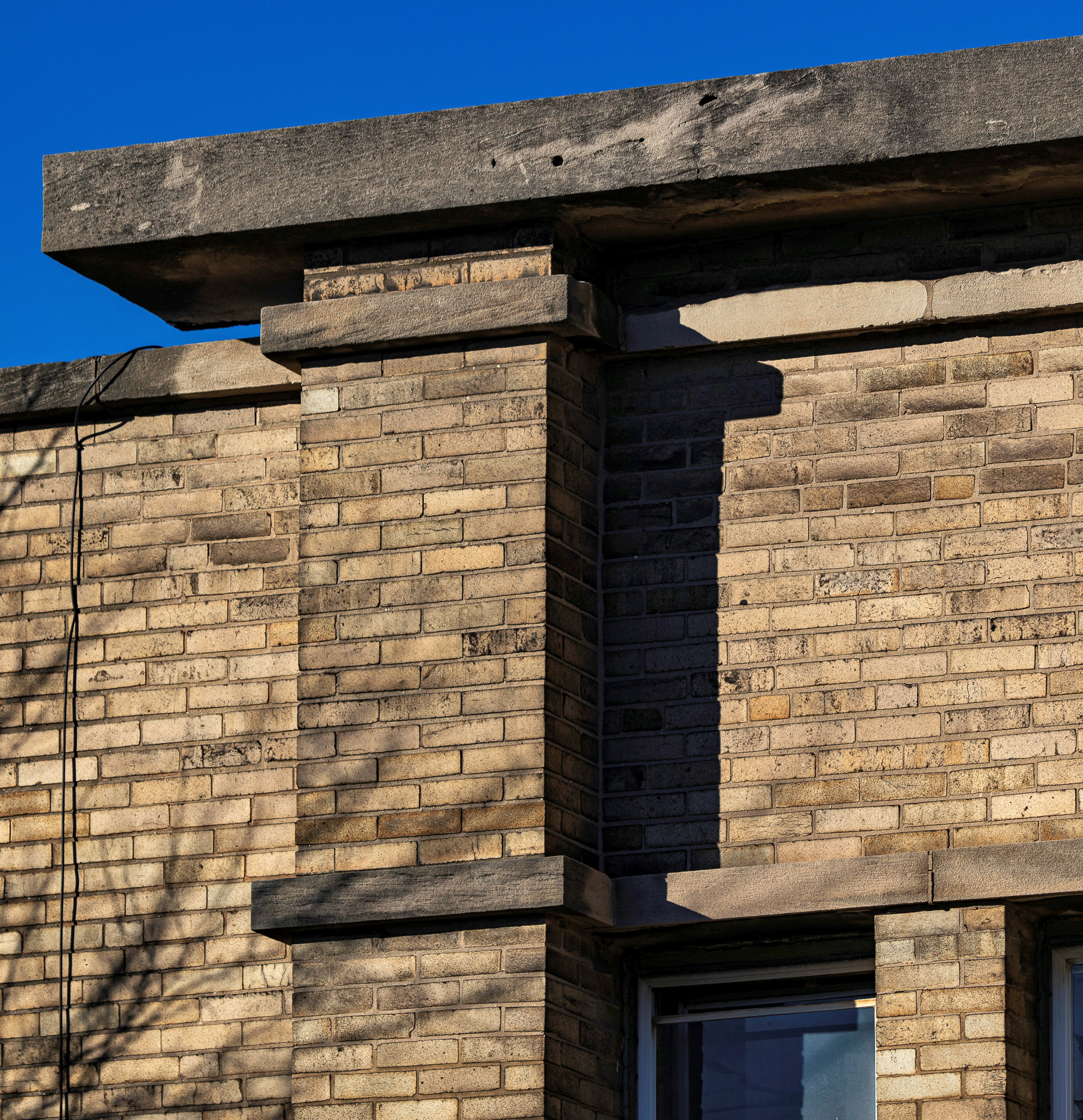 exterior images of walter burley griffin’s prairie style limestone and brick cornell store and flats (1908), located at 1230-32 e. 75th street, chicago, il.