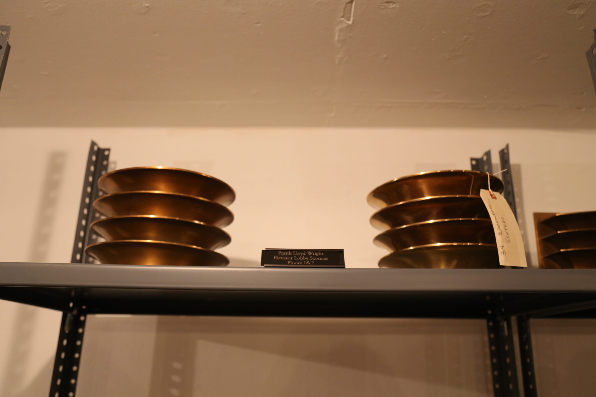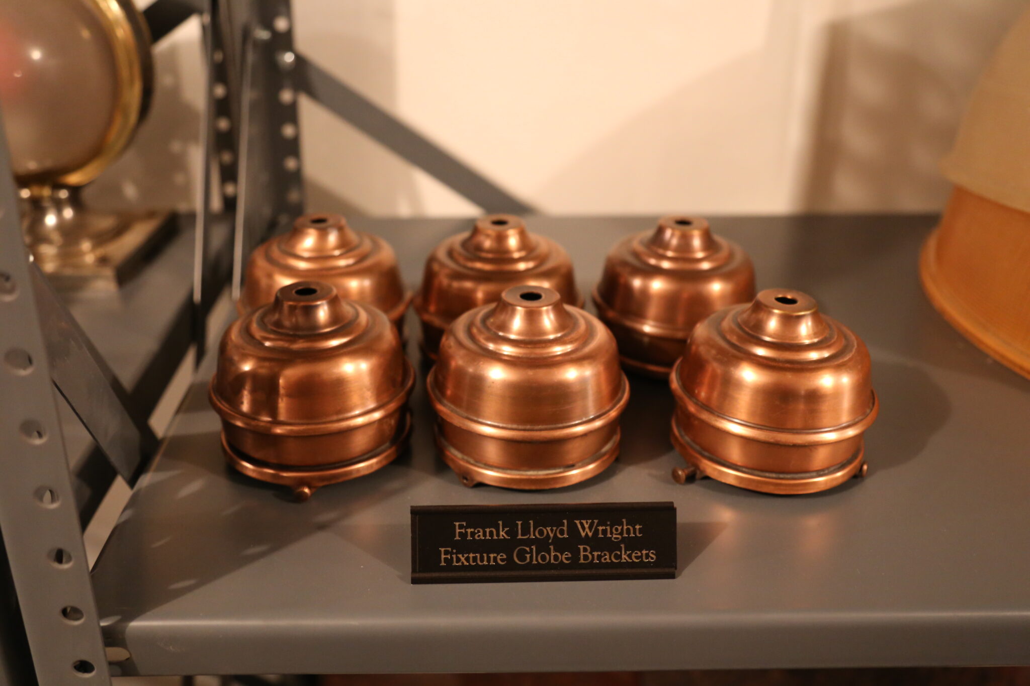 note: after closely reviewing the images, the labels assigned to the artifacts in some cases are incorrect (e.g., the art deco style bronze sconces were designed by drummond, not wright).