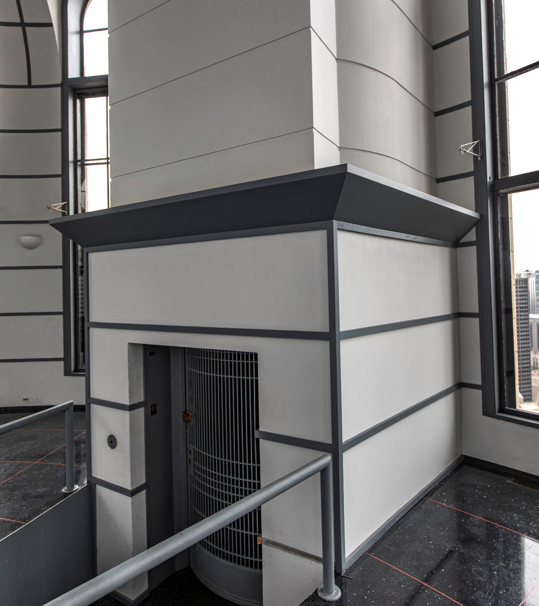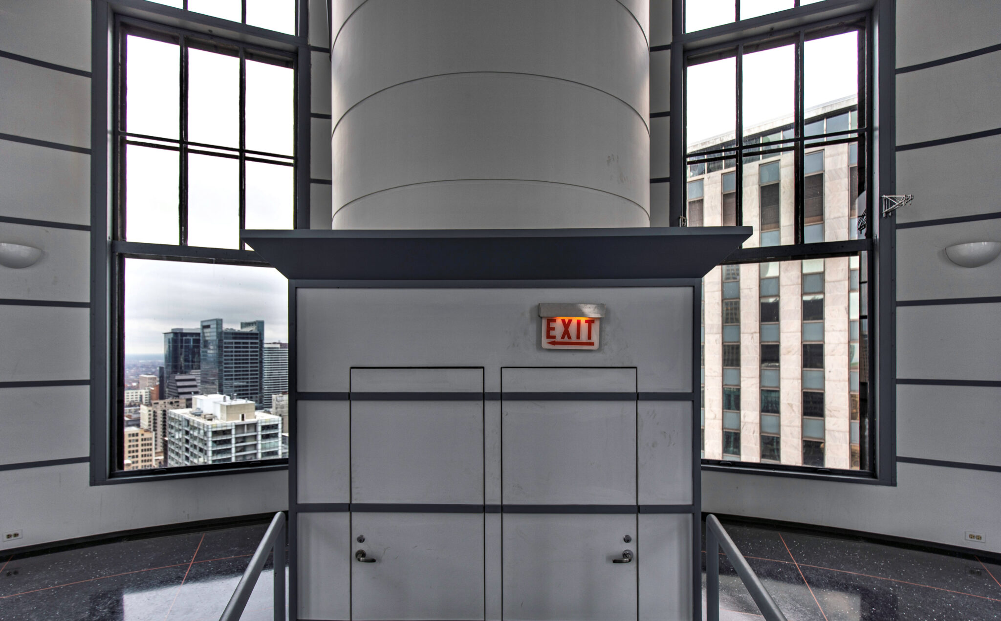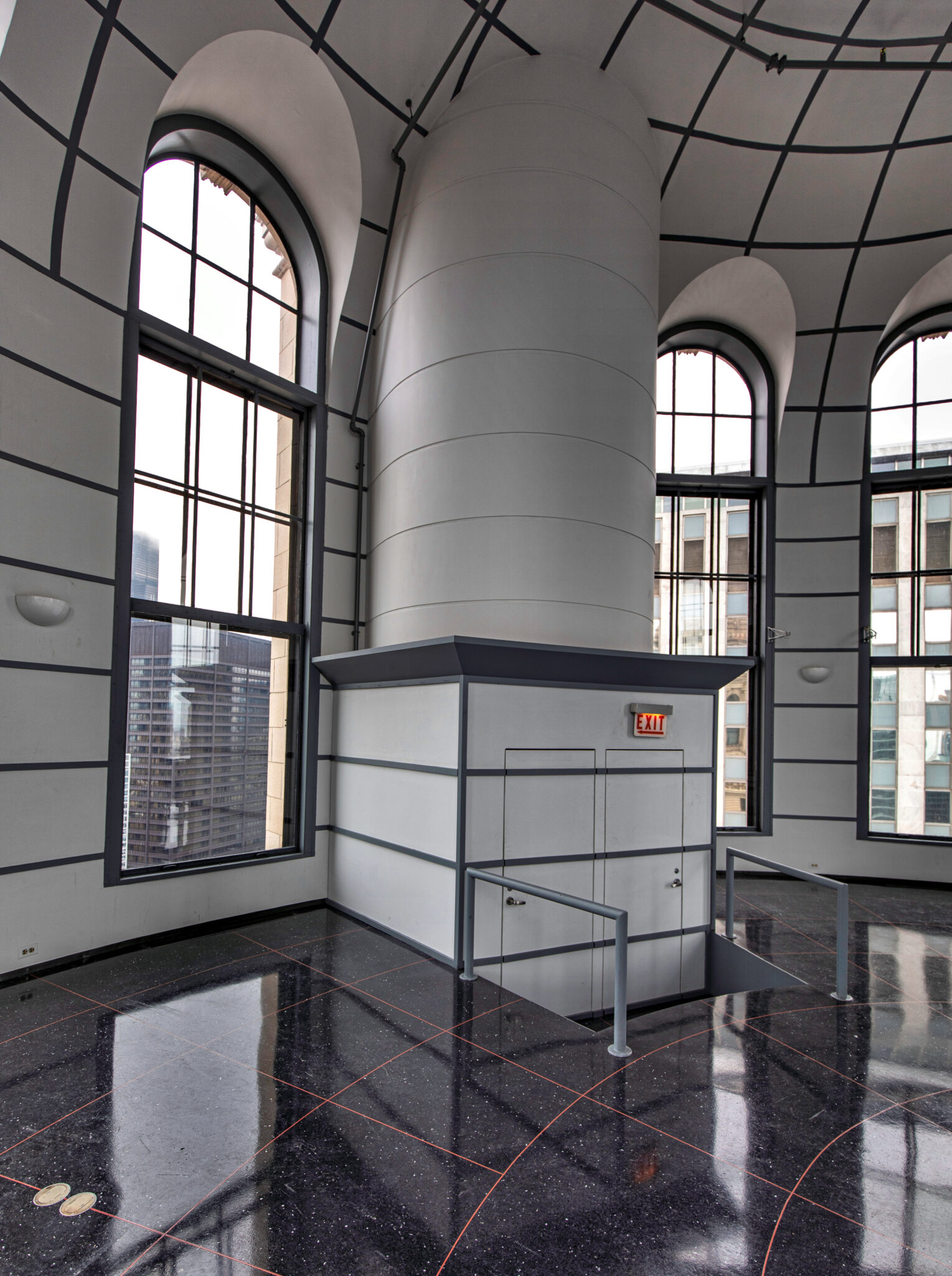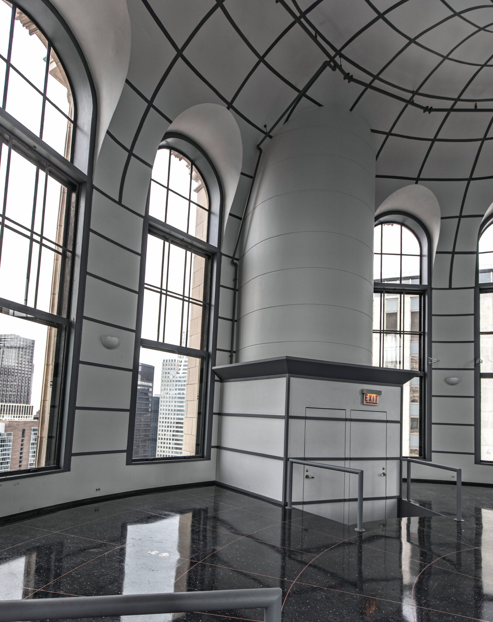 recent photographic survey of helmet jahn’s 40th floor conference room, located on the top floor of giaver and dinkelberg’s 40-story jewelers building (1927), located at 35 east wacker drive, chicago, il.