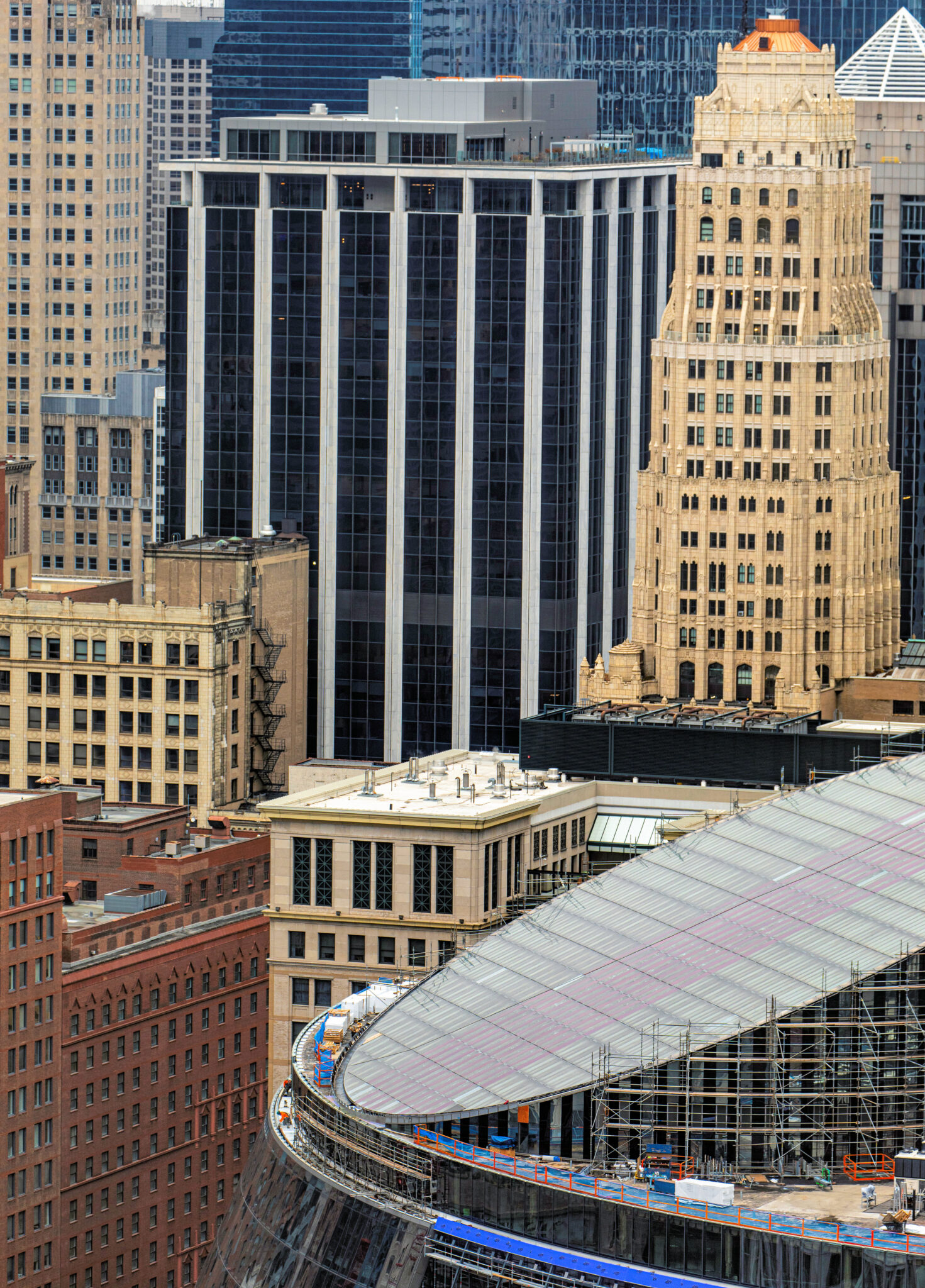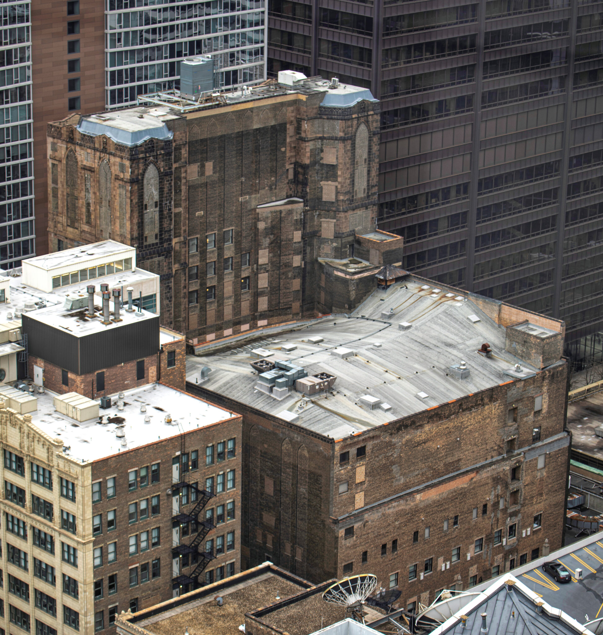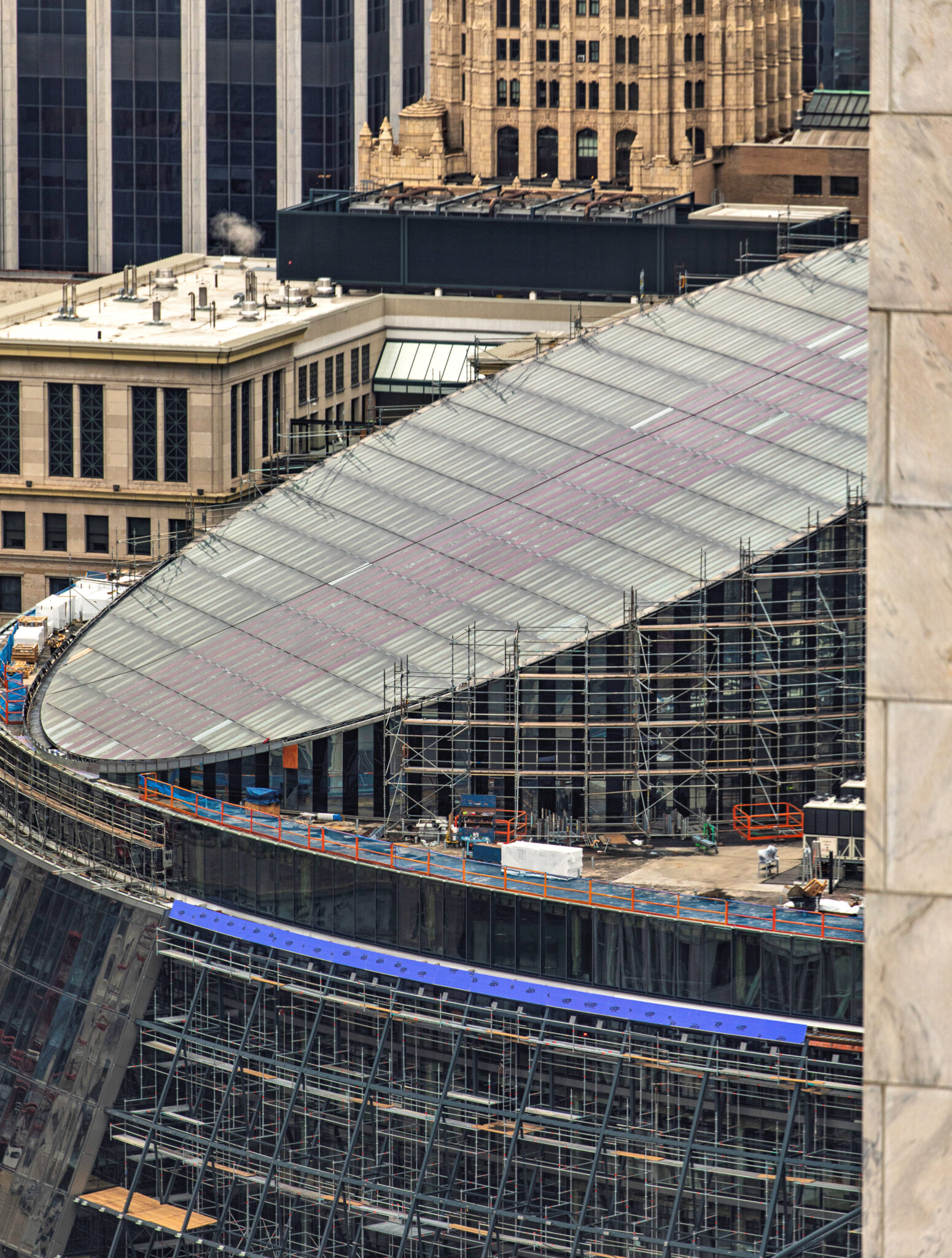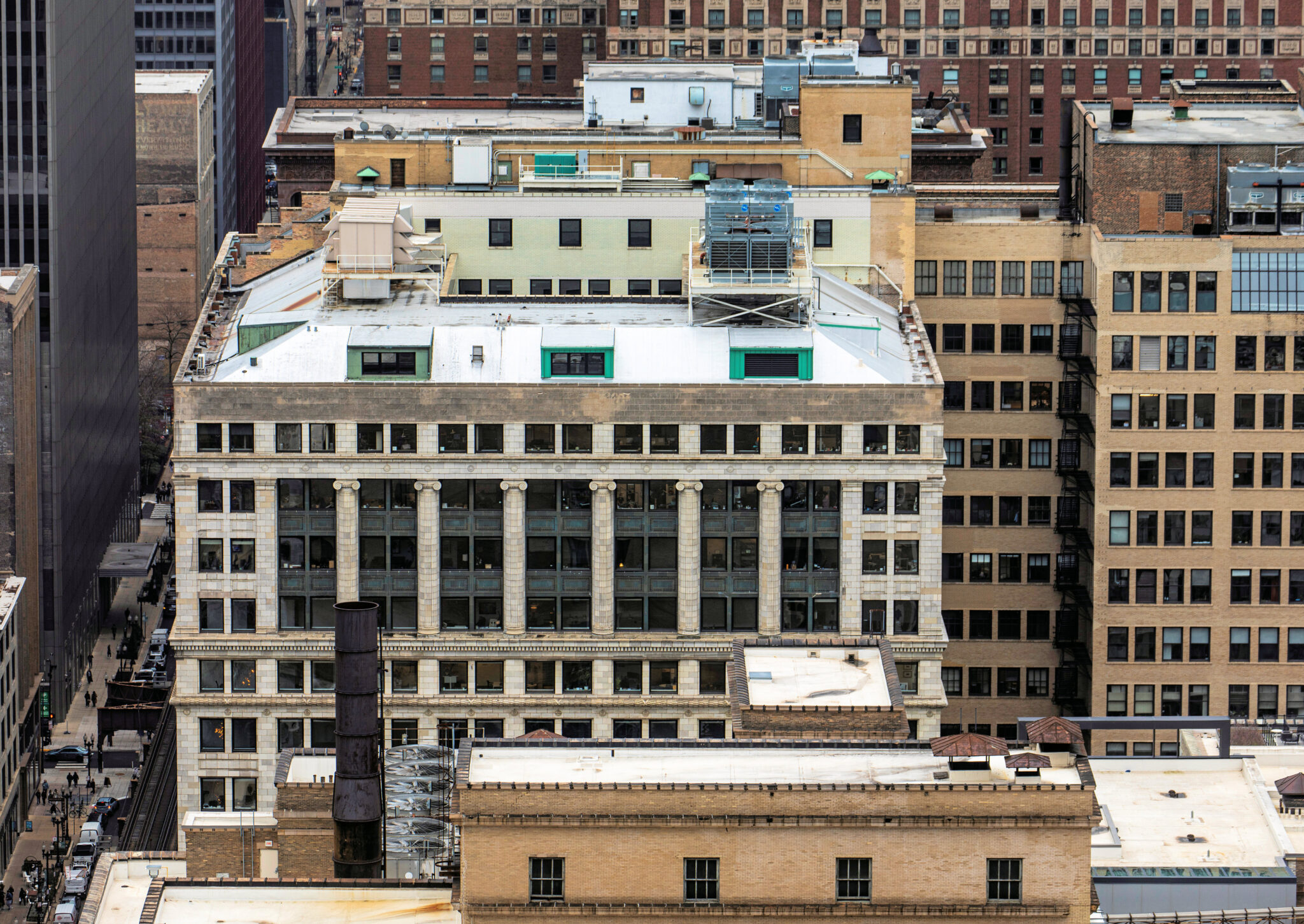 recent photographic survey of helmet jahn’s 40th floor conference room, located on the top floor of giaver and dinkelberg’s 40-story jewelers building (1927), located at 35 east wacker drive, chicago, il.