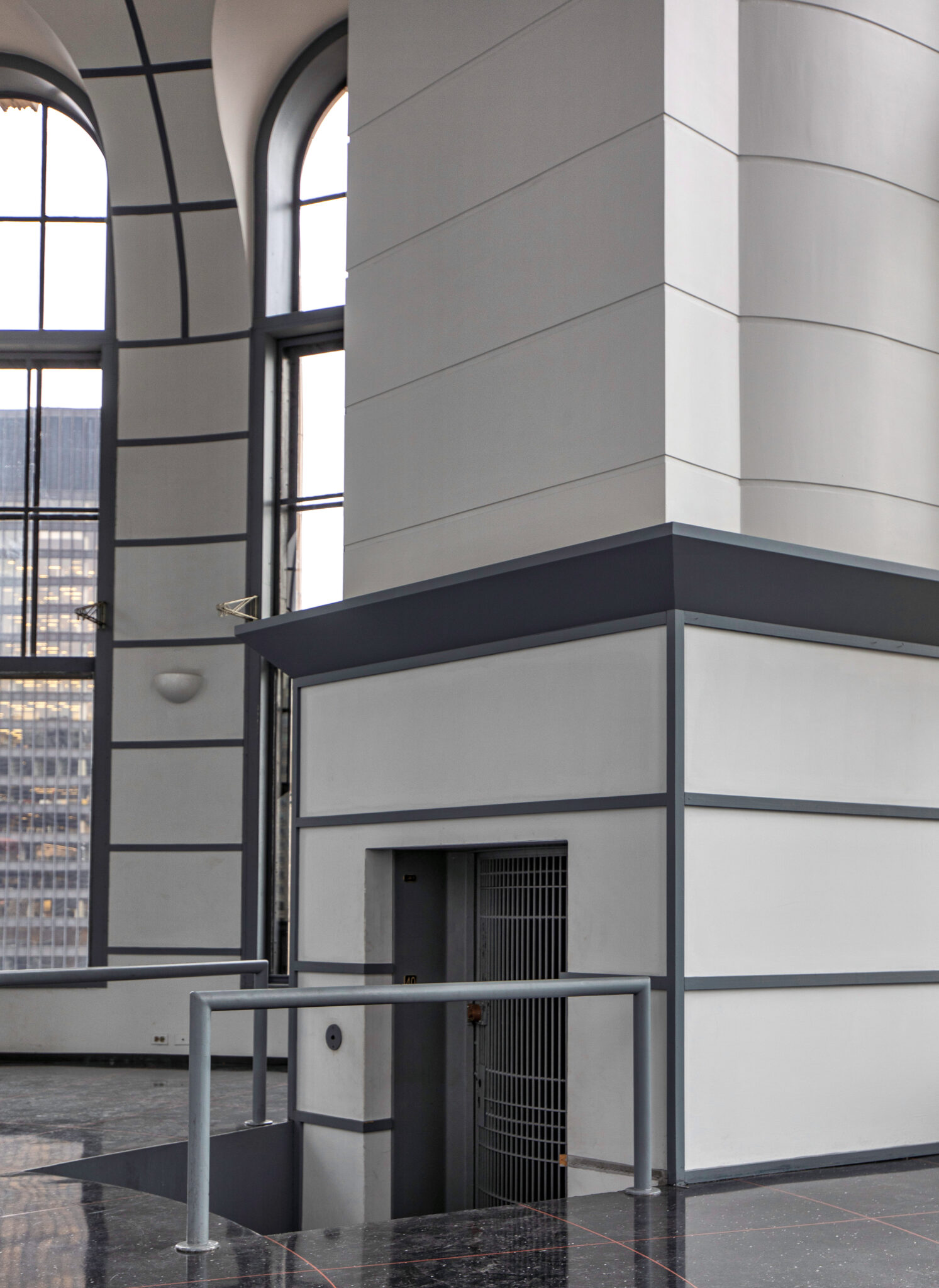 26 Nov a rare opportunity to carefully document helmet jahn’s postmodern spacetime gridded conference room on top floor of giaver and dinkelberg’s 40-story jewelers building
