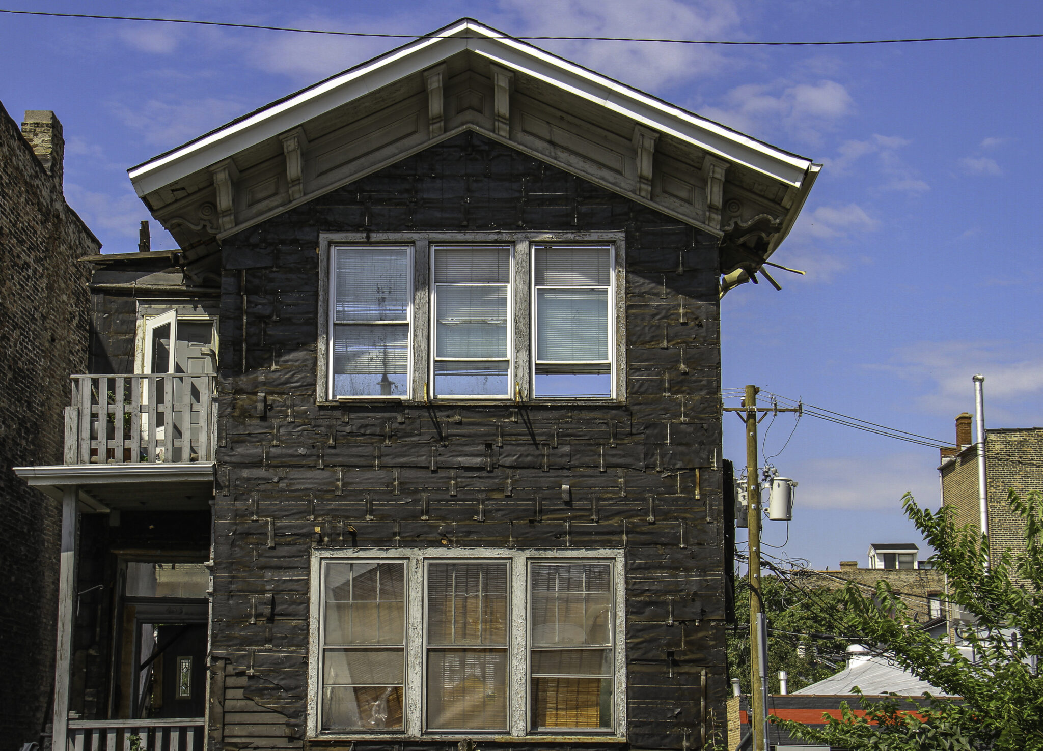 in the 1880’s, ongoing remodeling was performed before and after the home was subdivided into five separate apartments. the highly outdated tenement was further upgraded or cosmetically altered with the addition of electrical, plumbing and asbestos siding used to cover over the dilapidated clapboard siding. the enclosed rear porch and main entrance were reconfigured, along with the addition of a garage built in the mid-1920’s. during its incredibly long and storied existence, the russell house has survived the great chicago fire, the ongoing expansion of the surrounding manufacturing district, the kennedy expressway, urban renewal and the like.