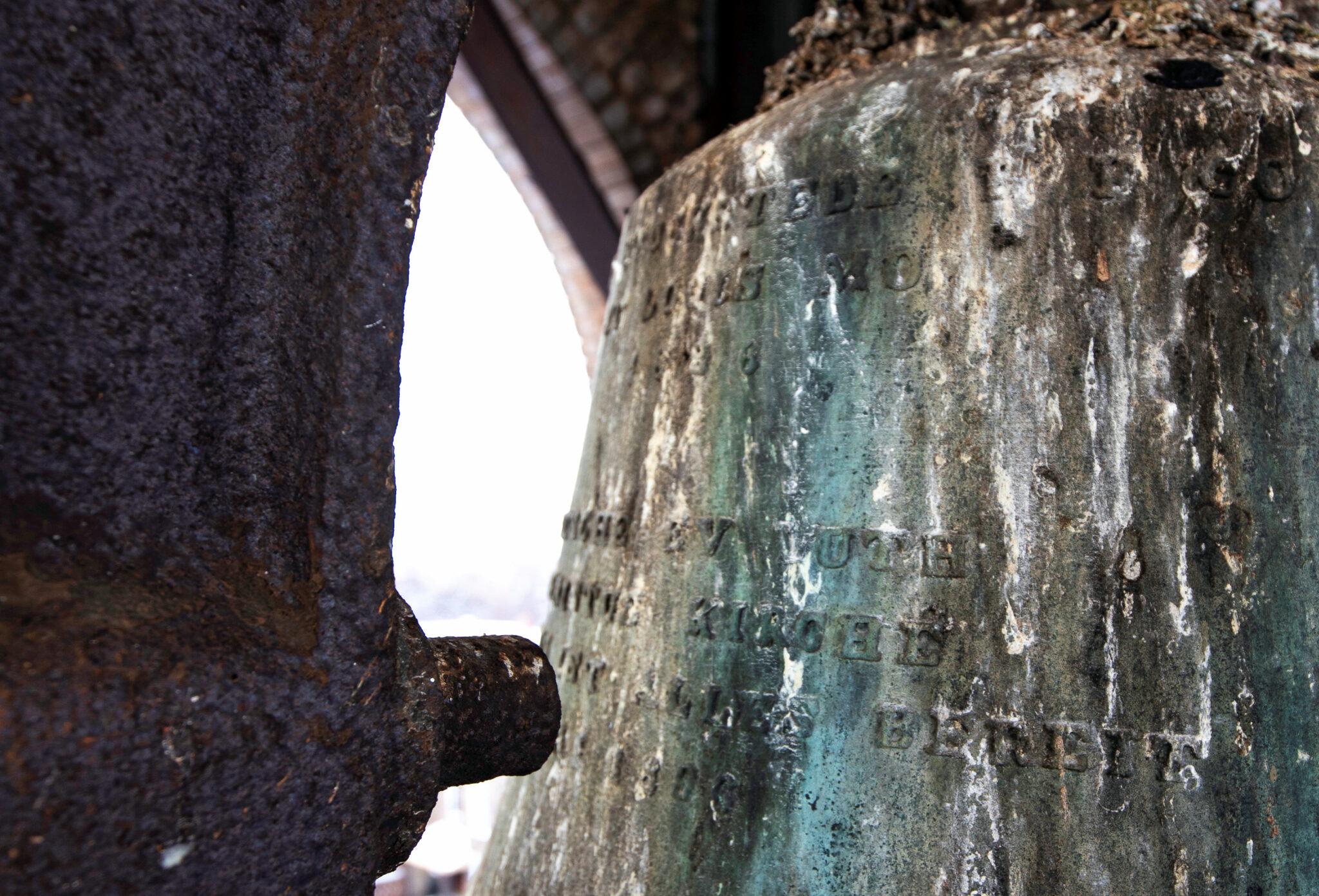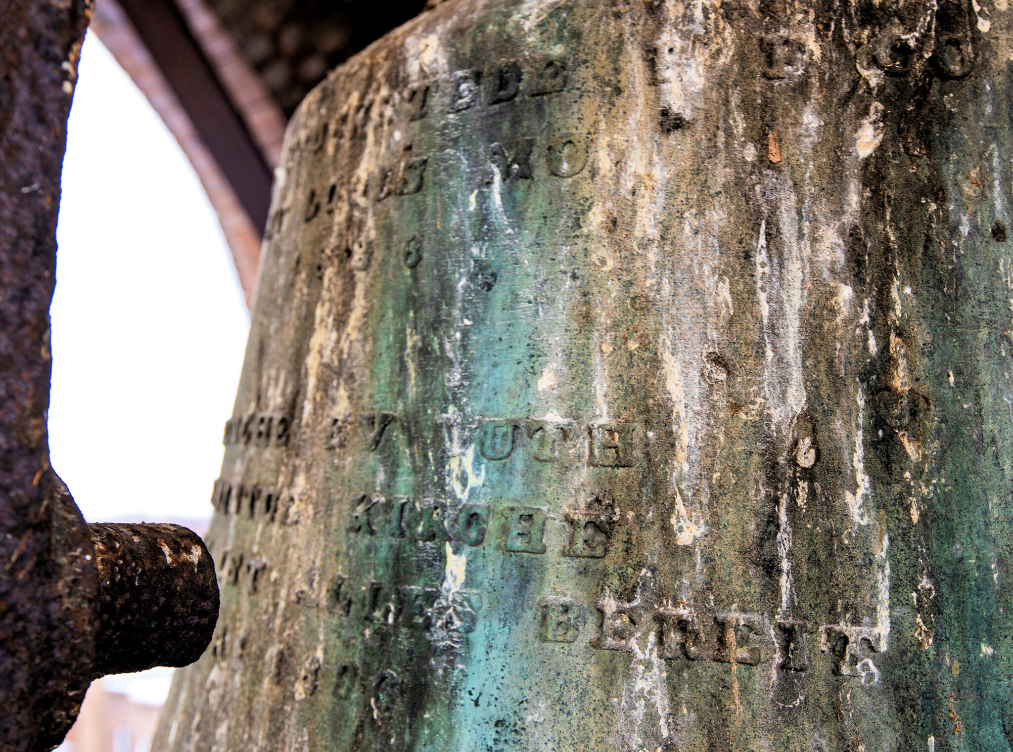 the lightly embossed lettering on the bell reads: