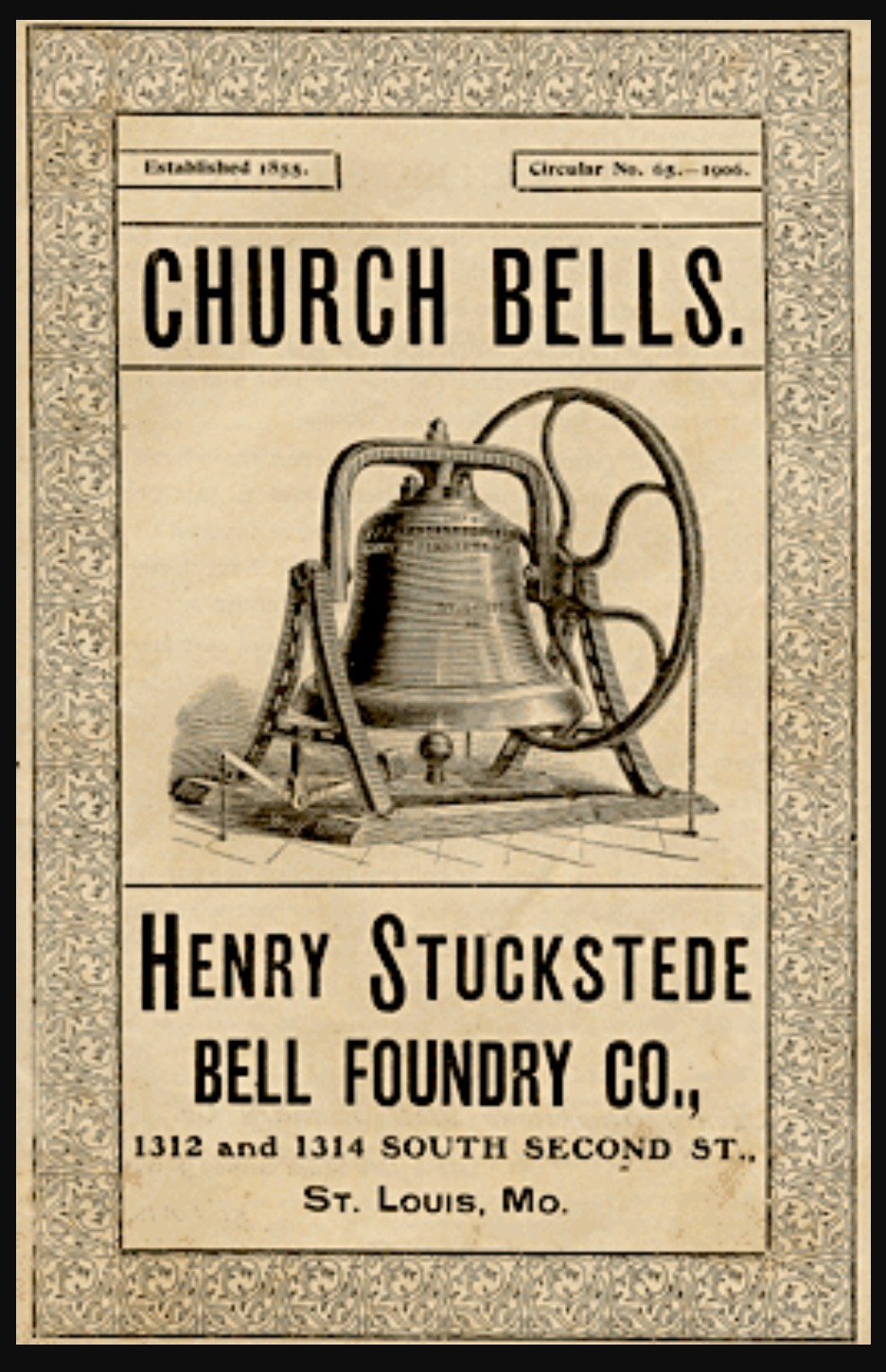 the custom church bell was fabricated by the henry stucketede bell foundry company (1892-1931), st. louis, mo.