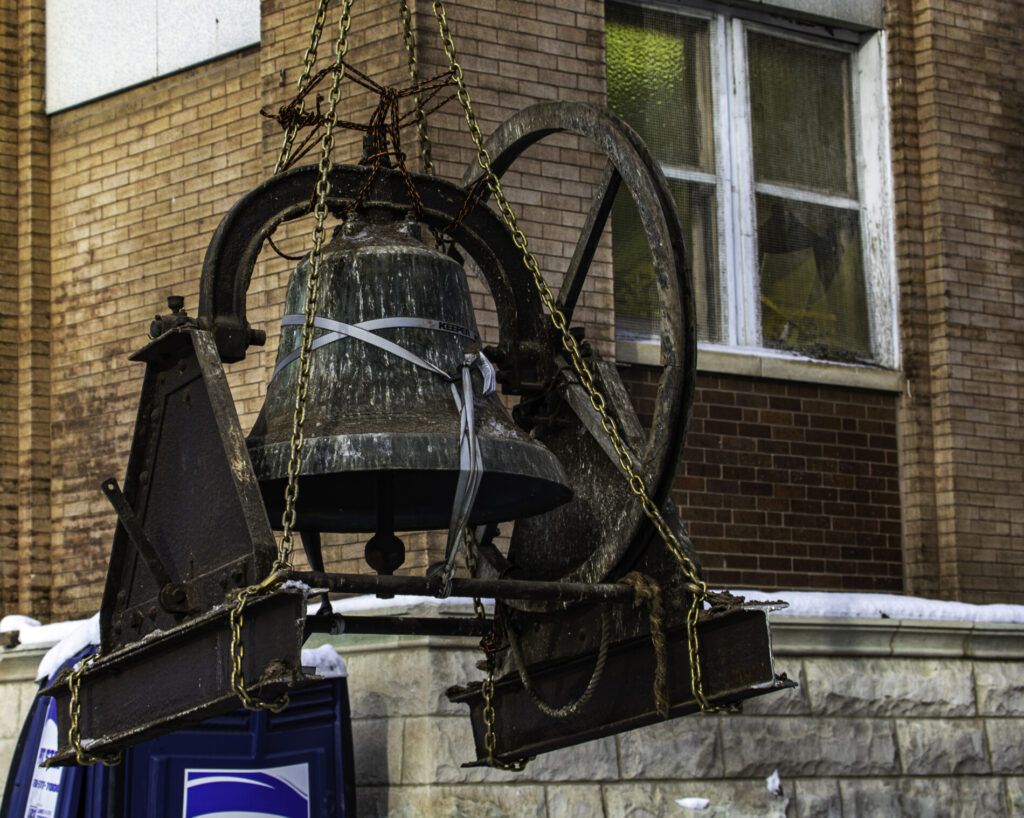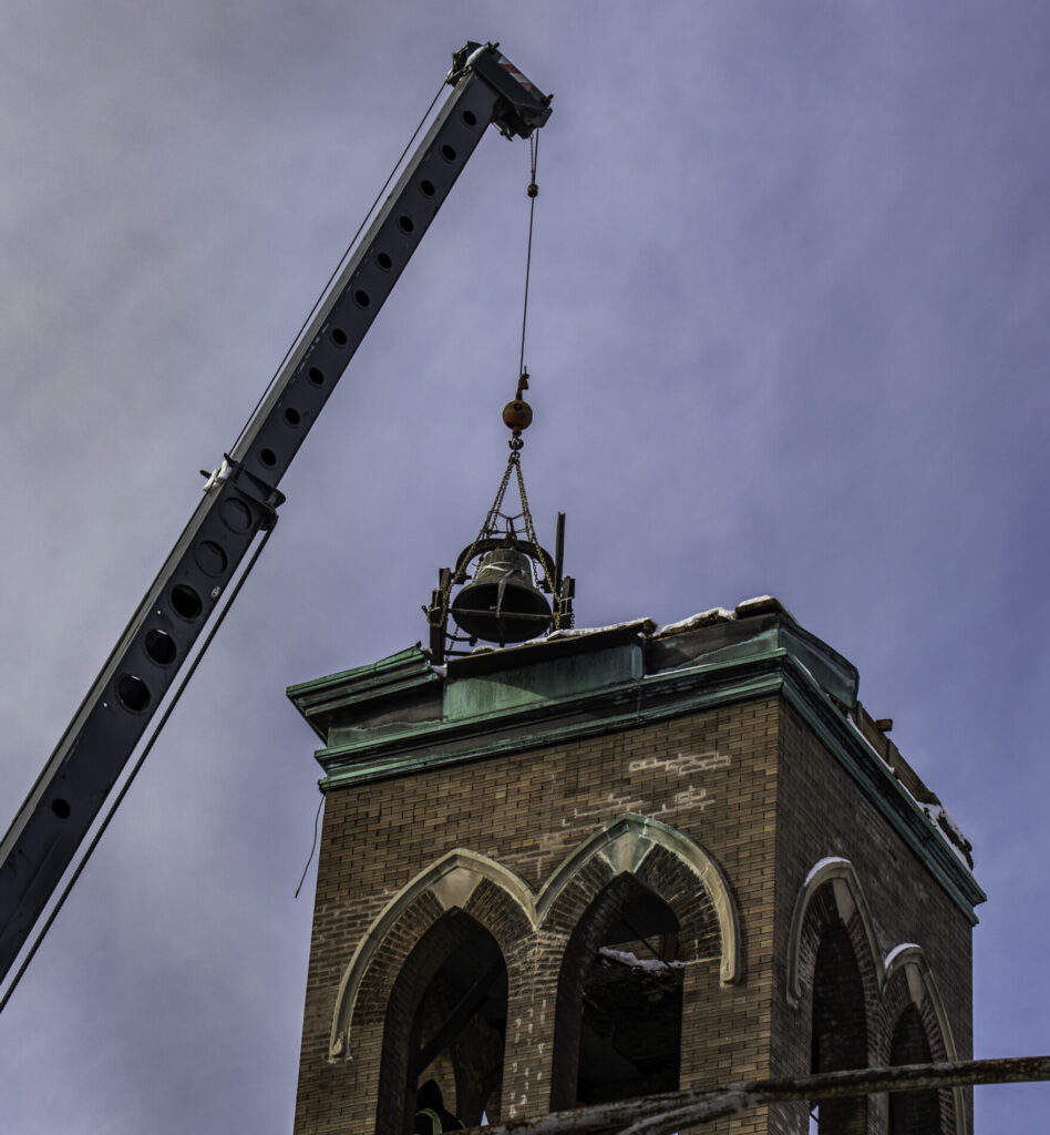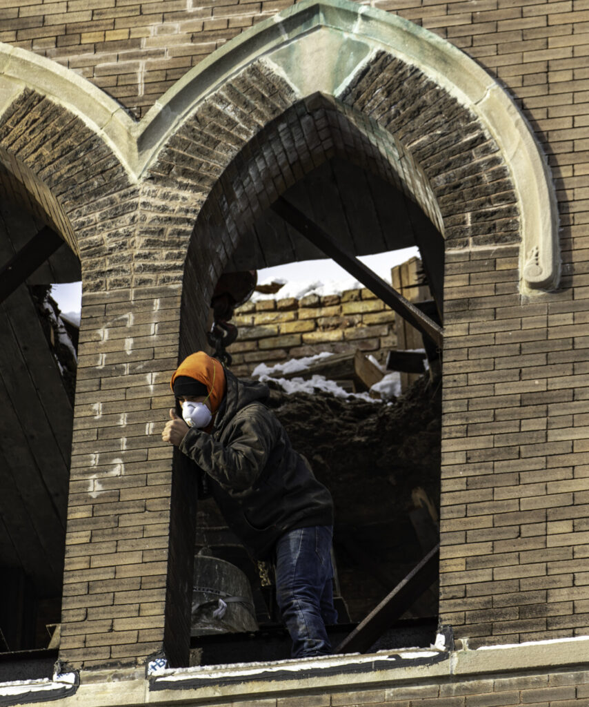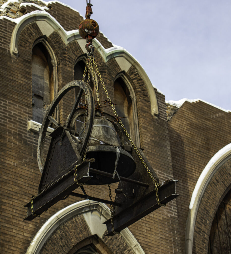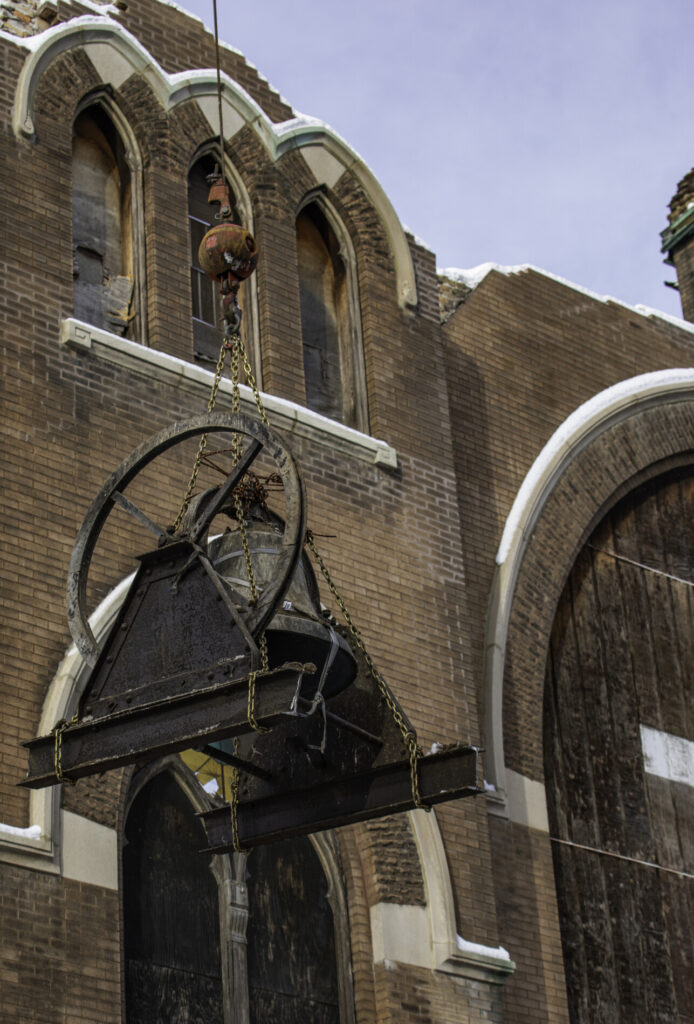 additional images documenting bronze church bell extraction from flizikowski and kaiser’s german evangelical lutheran church (1896), located at 2028 north richmond street, chicago, il.