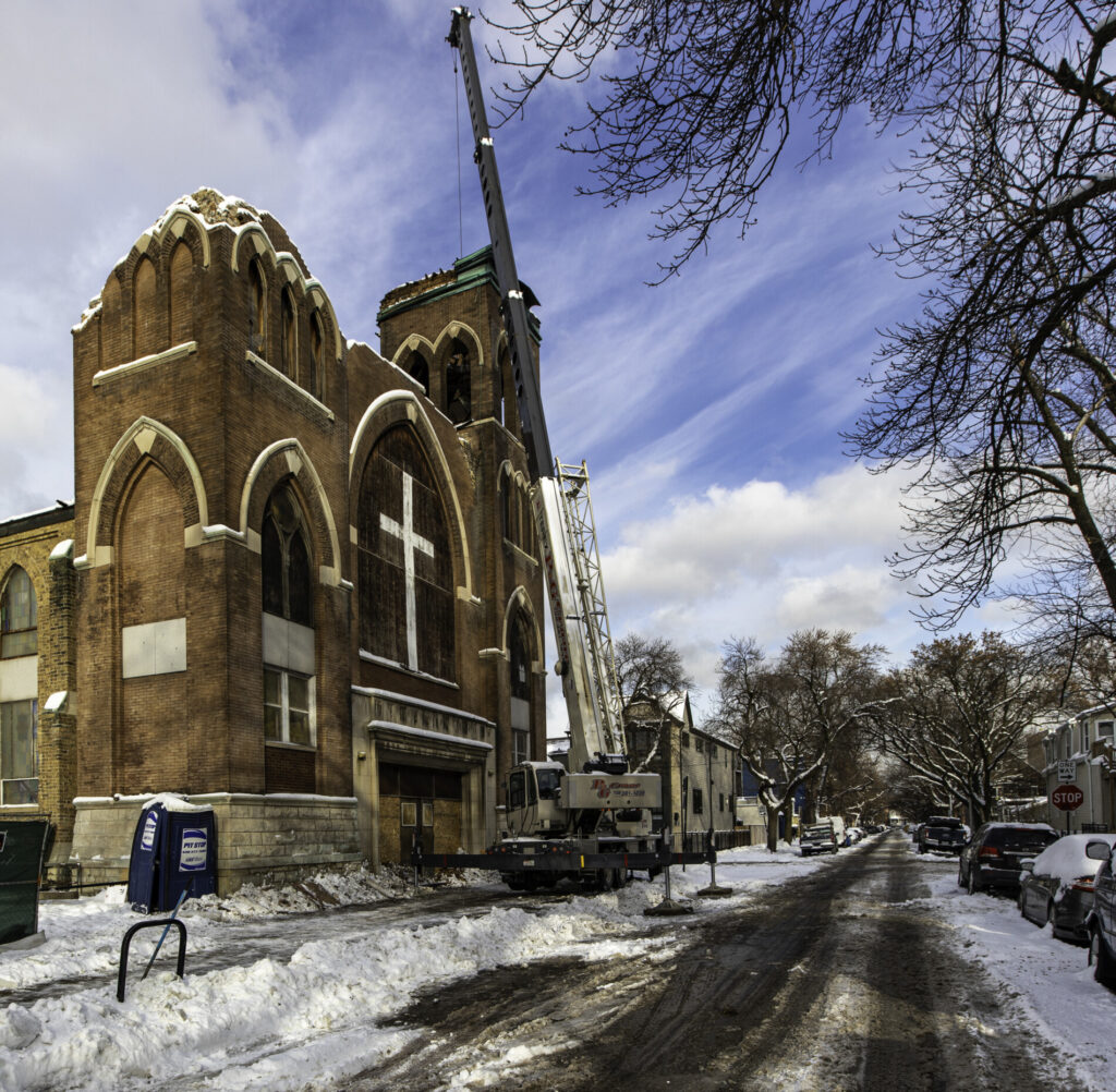 additional images taken during removal of historically important church bell from flizikowski and kaiser’s german evangelical lutheran church (1896), located at 2028 north richmond street, chicago, il. the previous blog contains the majority of images and additional information.