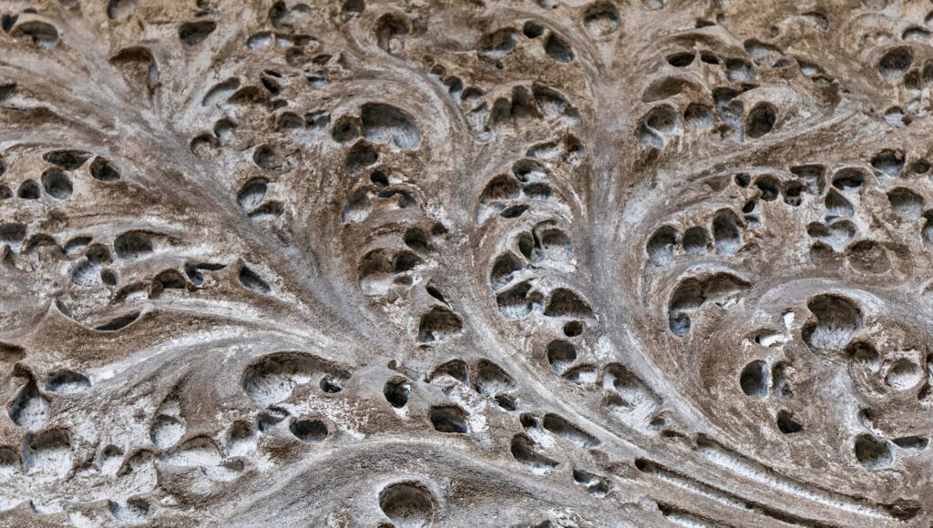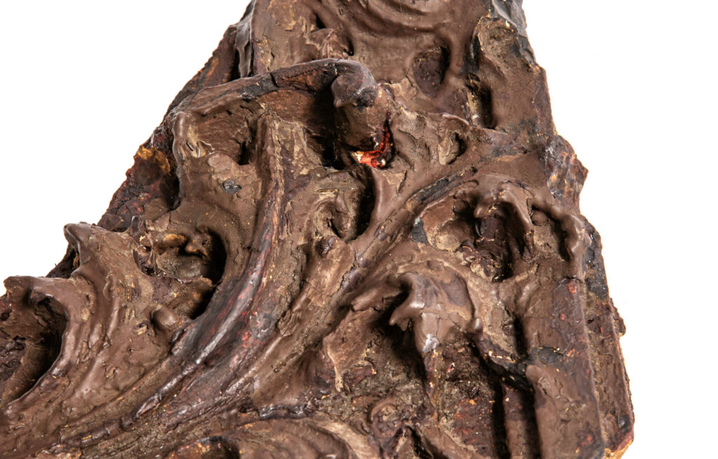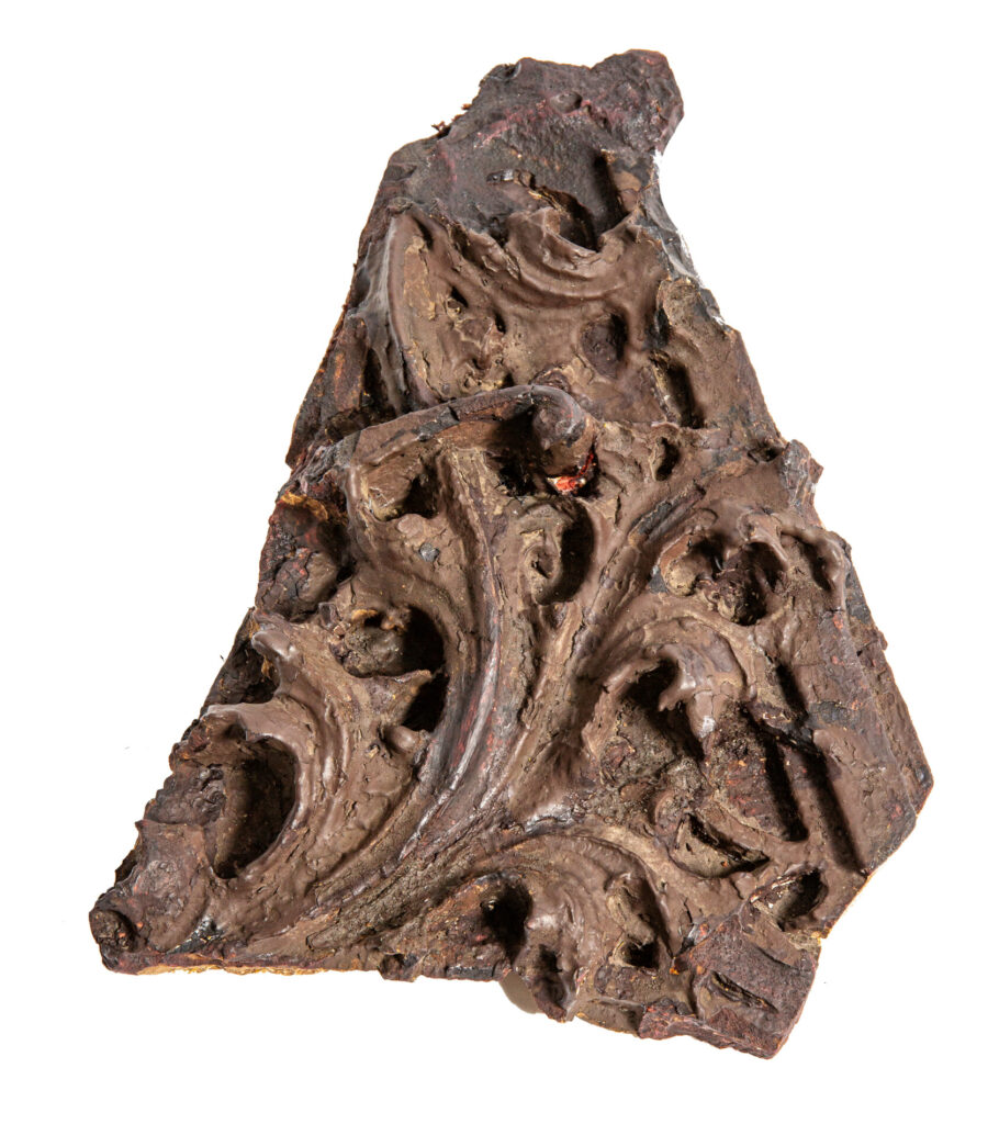 an original and largley intact painted cast staff or fibrous plaster frank lloyd wright-designed leafage panel salvaged from the william h. winslow house (1894) during renovations was added to bld. 51 museum collection earlier this week. the chocolate brown colored fragment features all over leafage with deep undercuts.
