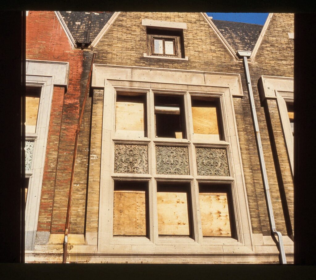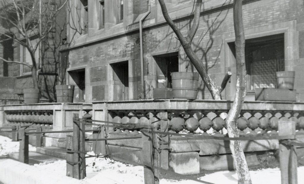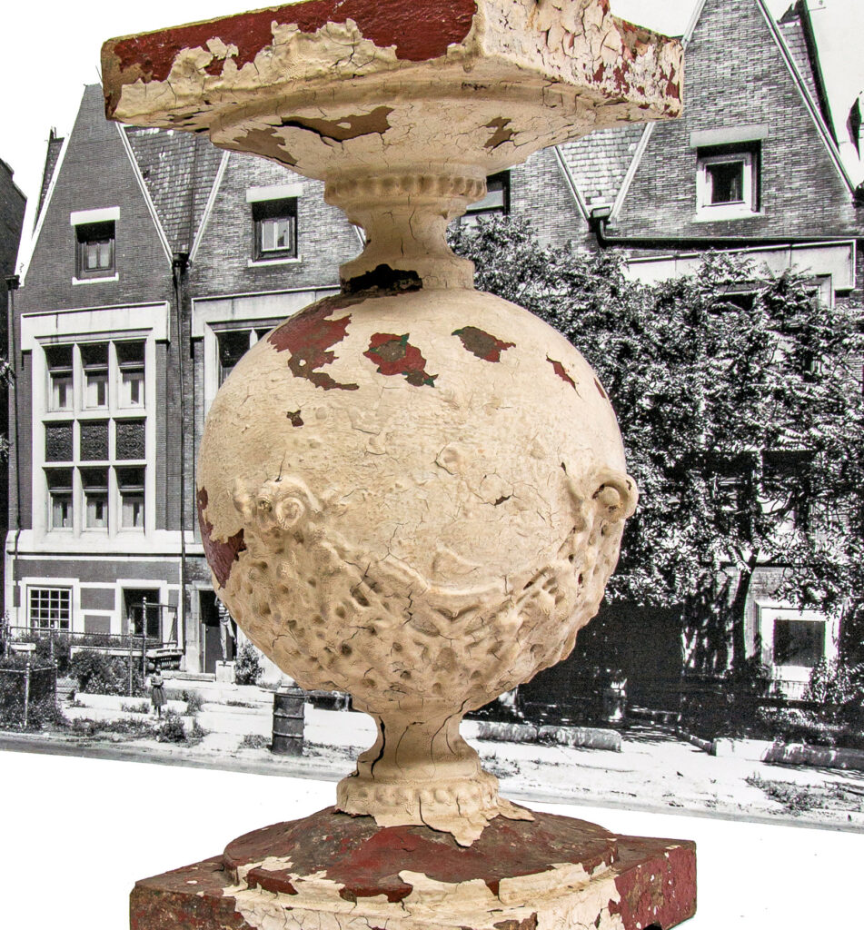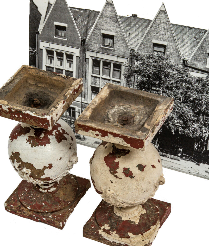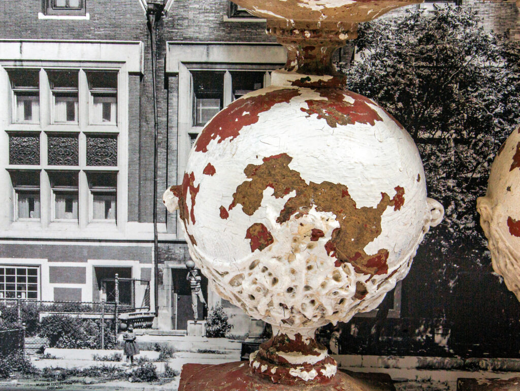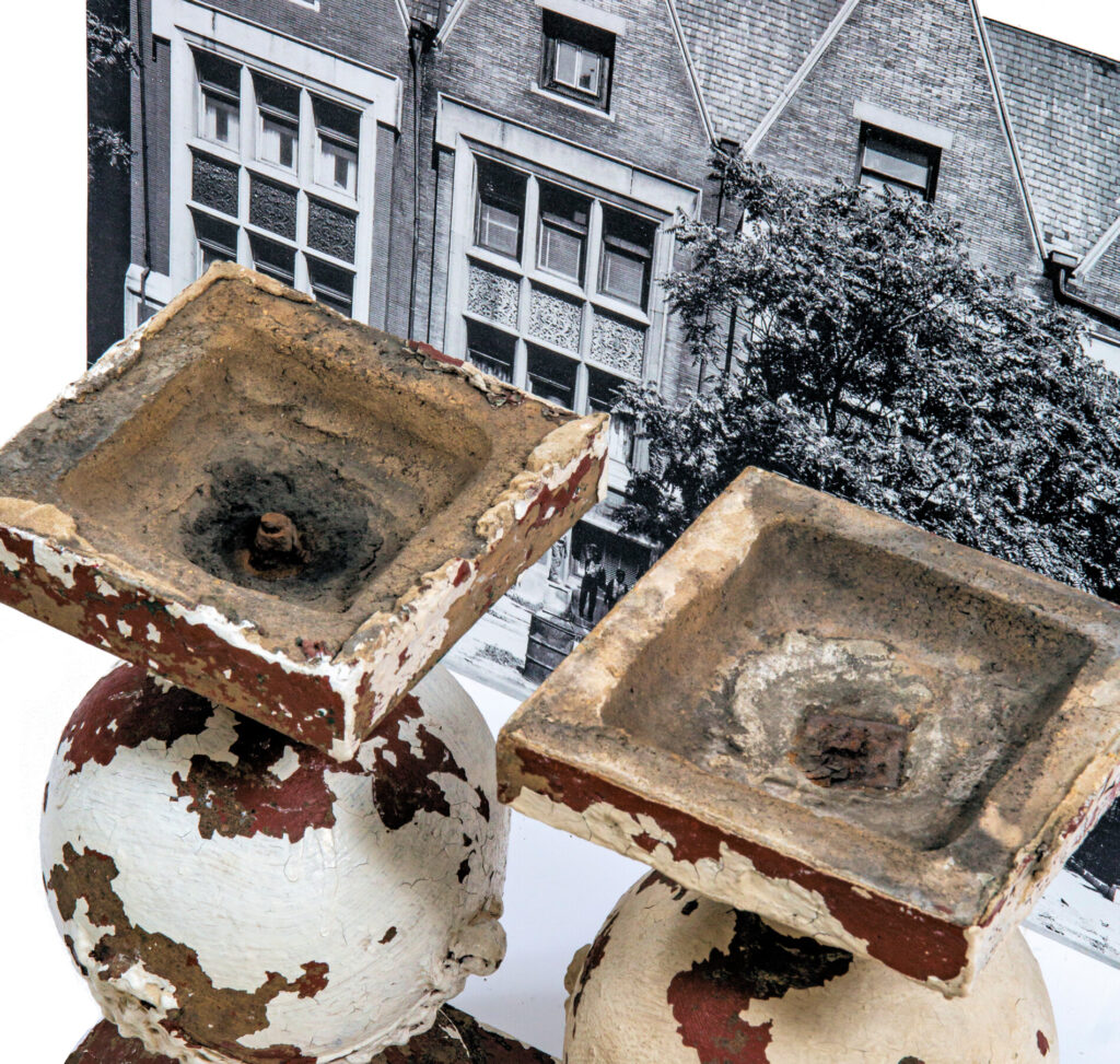 three largely intact and original early frank lloyd wright-designed buff-colored sullivanesque terra cotta balusters salvaged from the robert roloson row houses (1894) when the front terraces where dismantled/demolished in the early 1970’s were added to the ever-expanding bldg. 51 museum collection.