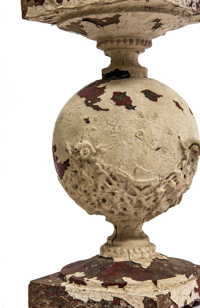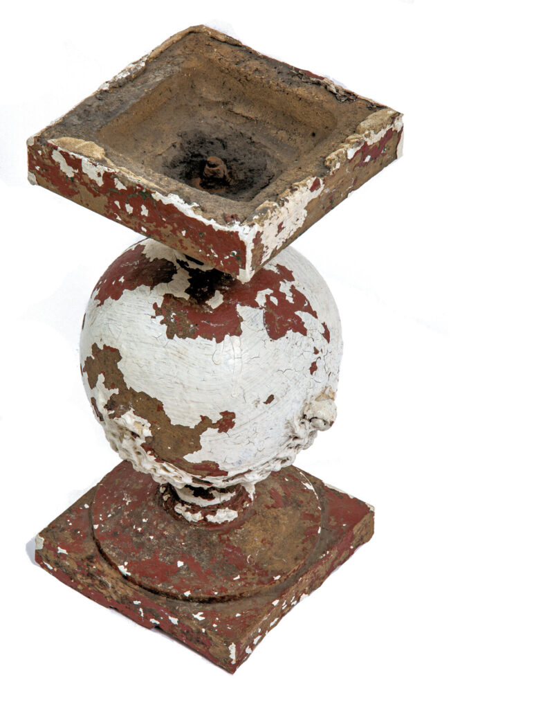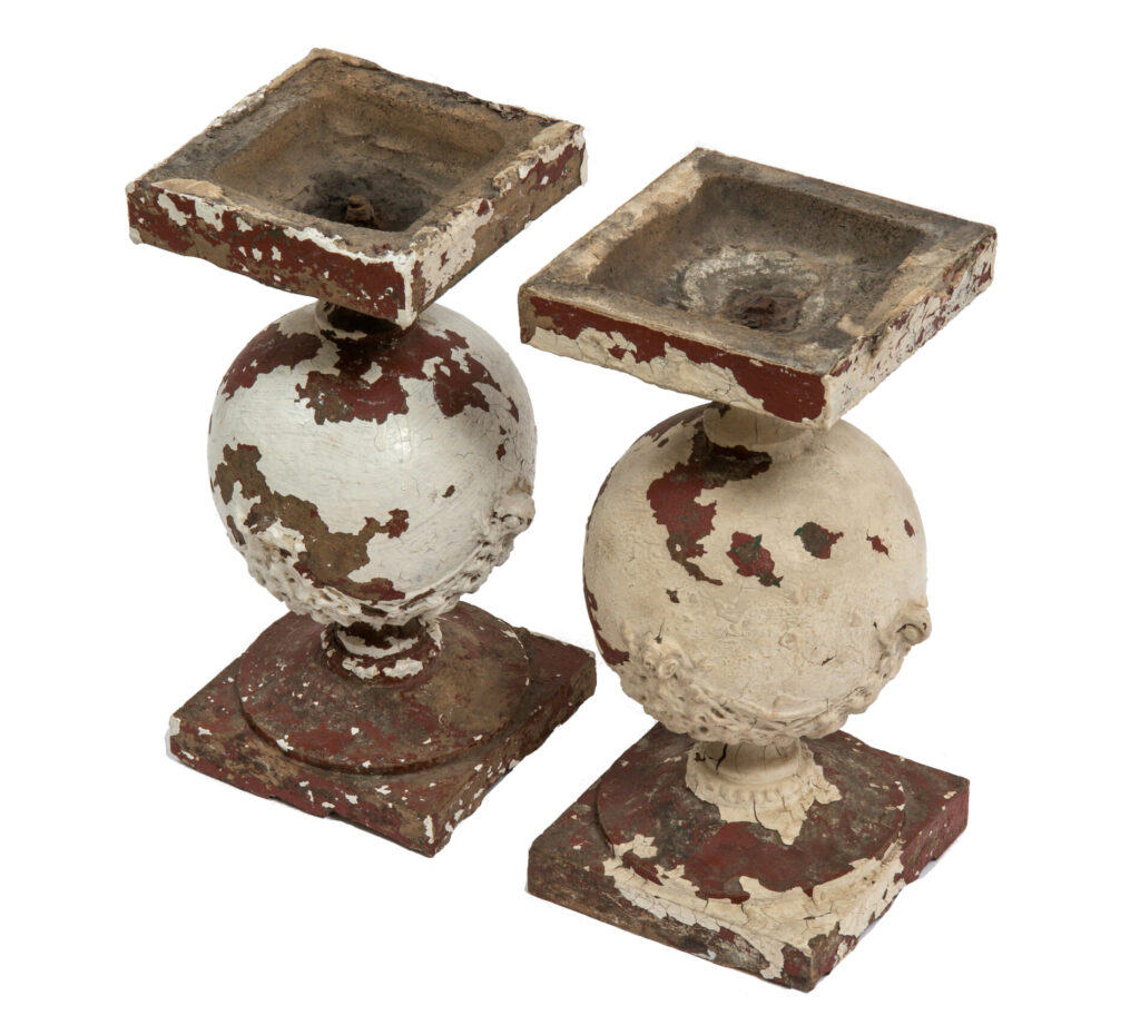 two of the three sullivanesque style balusters contain multiple coats of paint applied to them in the 1960s-1980s.