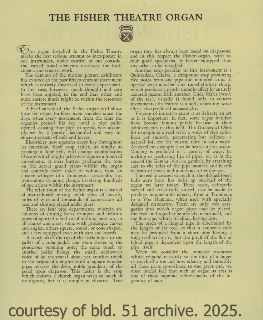 digitized fisher theater dedication booklet – from front to back – provided below in sequential order: