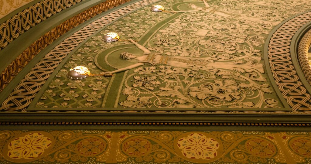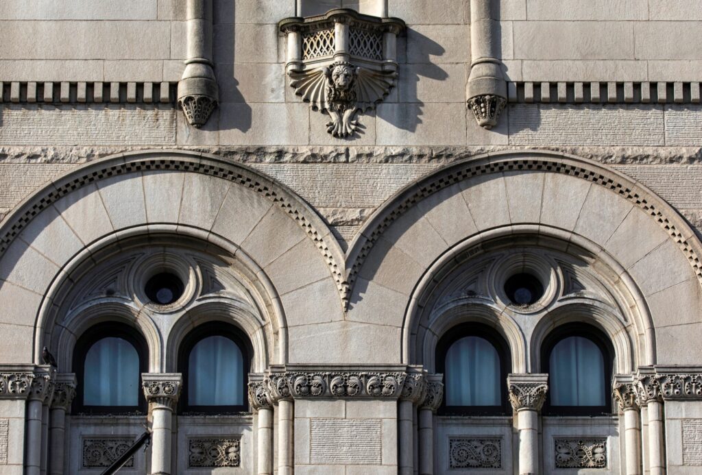 original signed richard haas painting (1985) of theodore link’s gargantuan romanesque style union station headhouse (1894), located at 1820 market street, st. louis, mo.