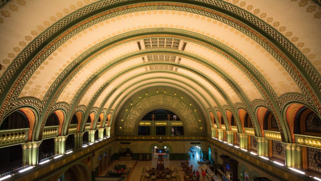 Expanded in 1903 for the 1904 St. Louis World’s Fair, the station remained the largest American rail terminal through the 1920s, combining services from 22 railroads. Declining rail travel and increased airline use led to its obsolescence by the 1950s–60s; Amtrak took over in 1971 but left in 1978 as passenger service dropped. Subsequently, Amtrak relocated to the Gateway Transportation Center. The station earned National Historic Landmark status in 1970 and a Civil Engineering Landmark designation in 1981.