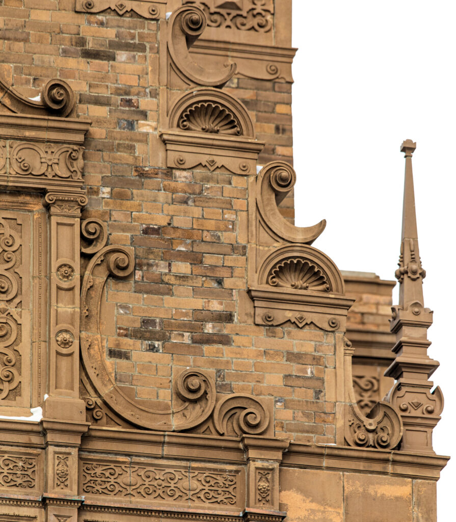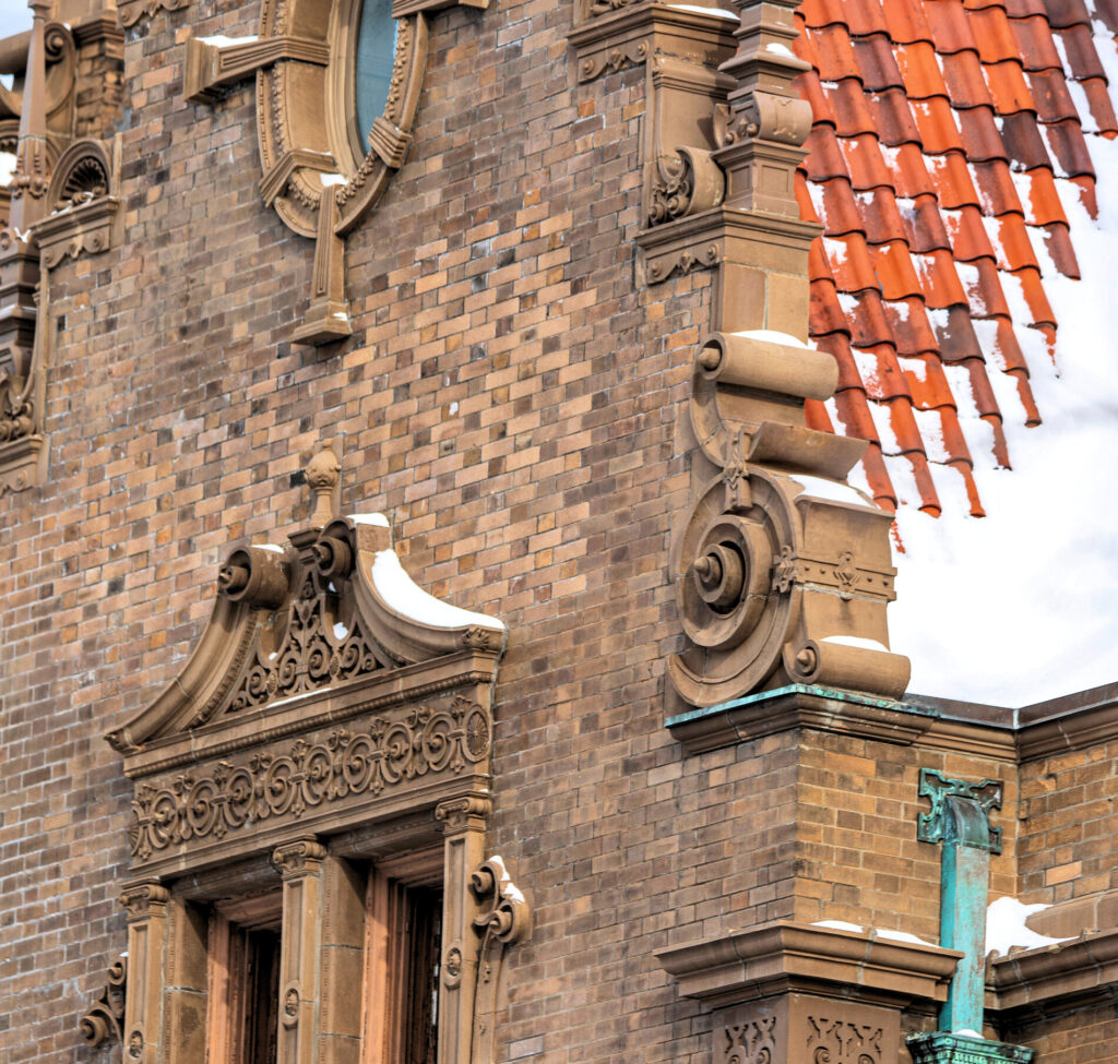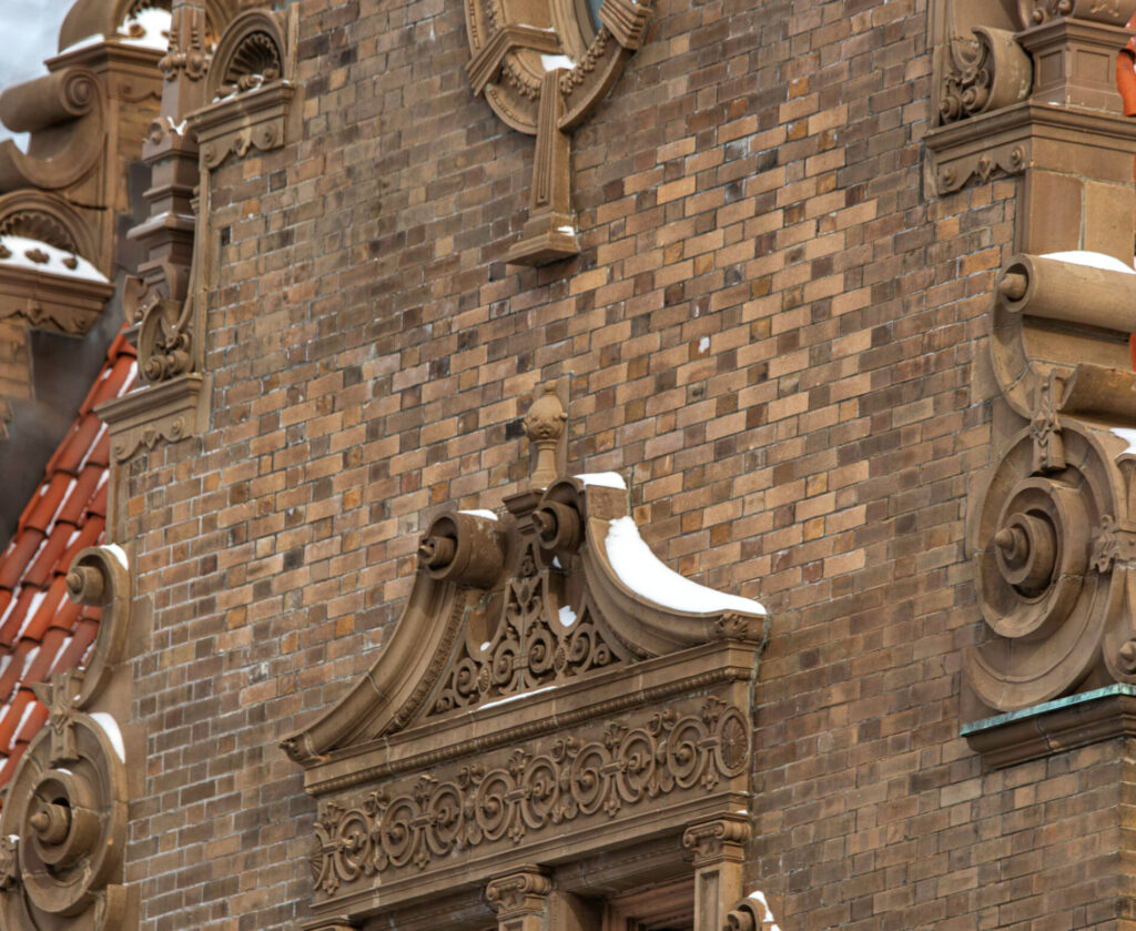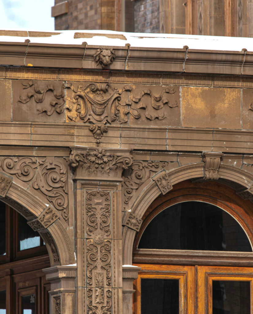 detail photographic images taken after scaffolding was removed (a few months ago) from the flemish renaissance revival-style frederick pabst mansion (george ferry, architect, 1892) located at 2000 west wisconsin avenue, milwaukee, wisc.