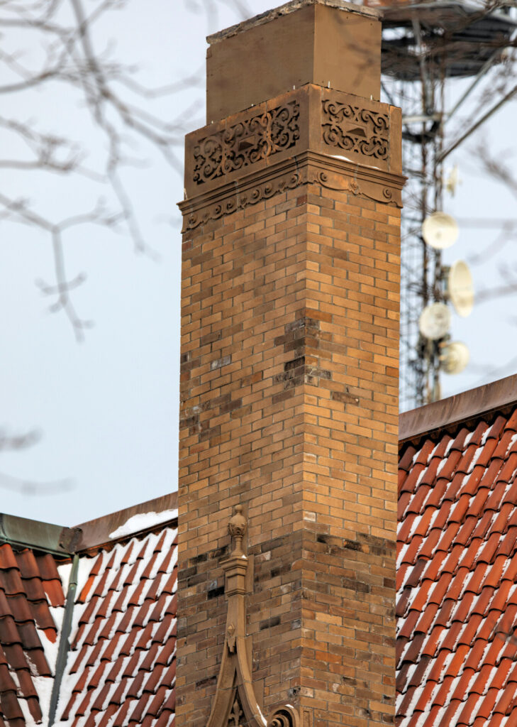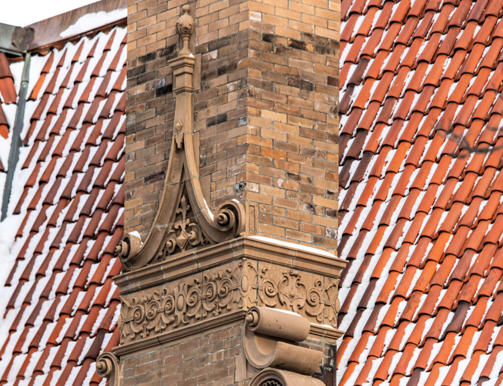 the boston terra cotta company (based in buffalo, ny.) was previously brought onboard to replicate and replace damaged terra cotta ornament used extensively on the house, including chimney stacks, roofline finials, front and side porticos, dormers, etc.