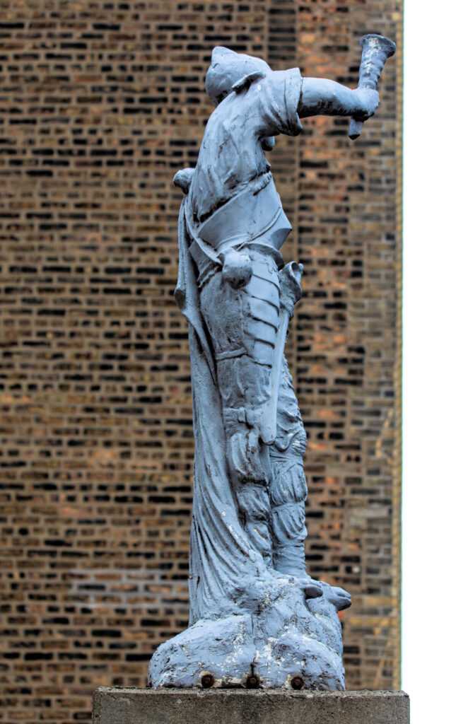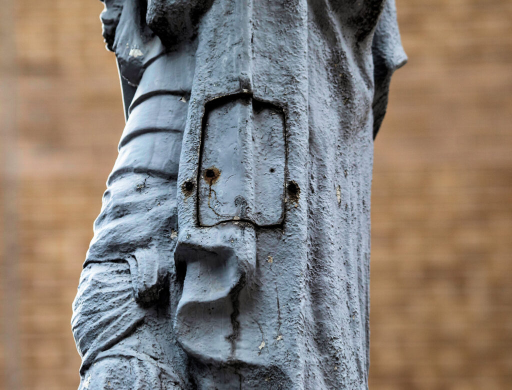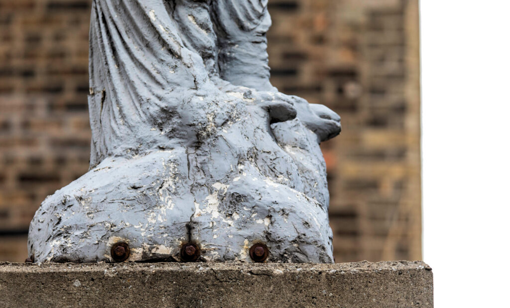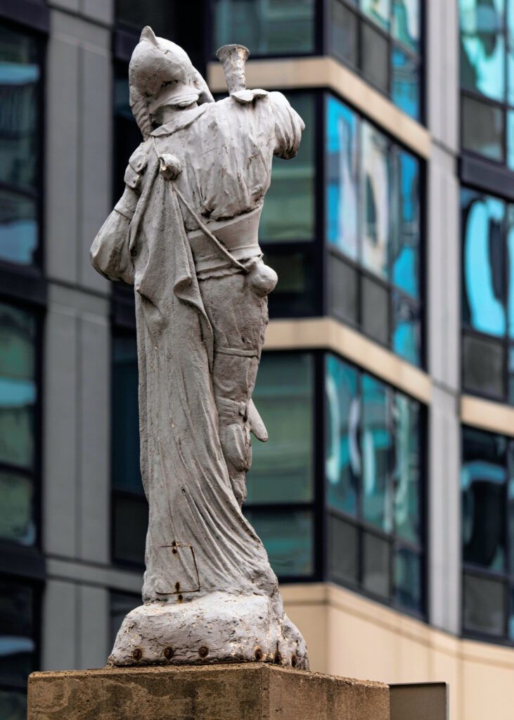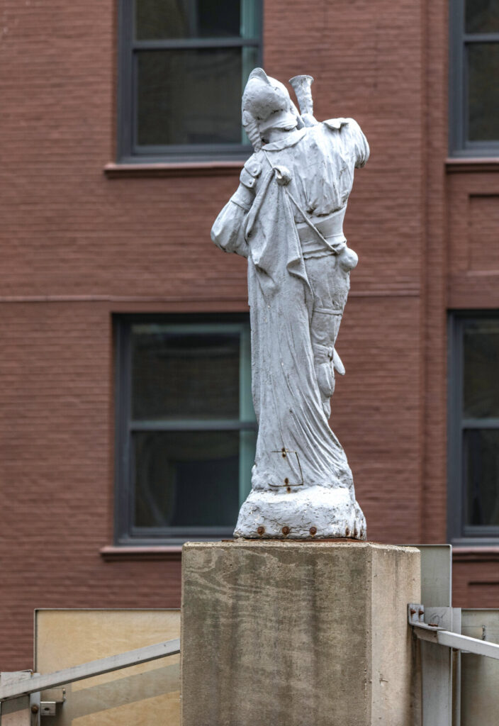 17 Feb photographic survey of the hood ornament atop stanley tigerman’s 1986 “rolls-royce” downtown chicago parking gargage