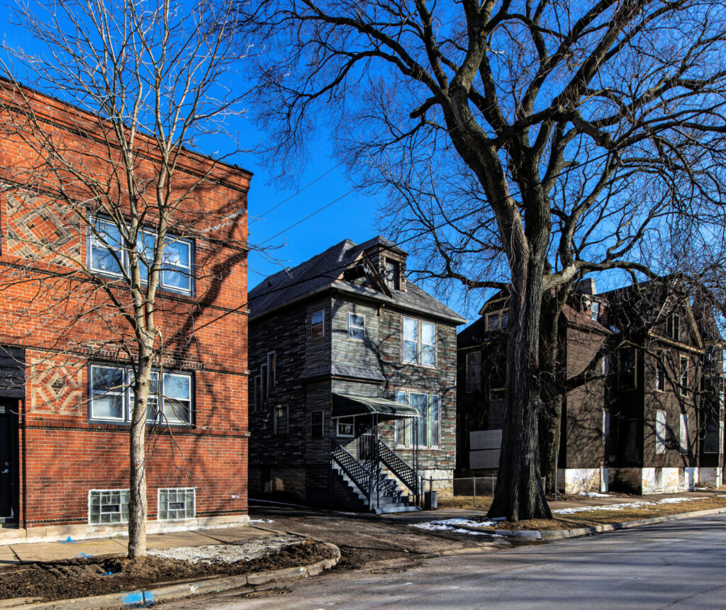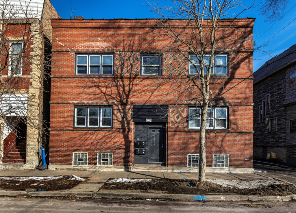 exterior photographic survery of robert c. spencer’s uniquely designed apartment building located at 6109 south normal avenue, chicago, il.