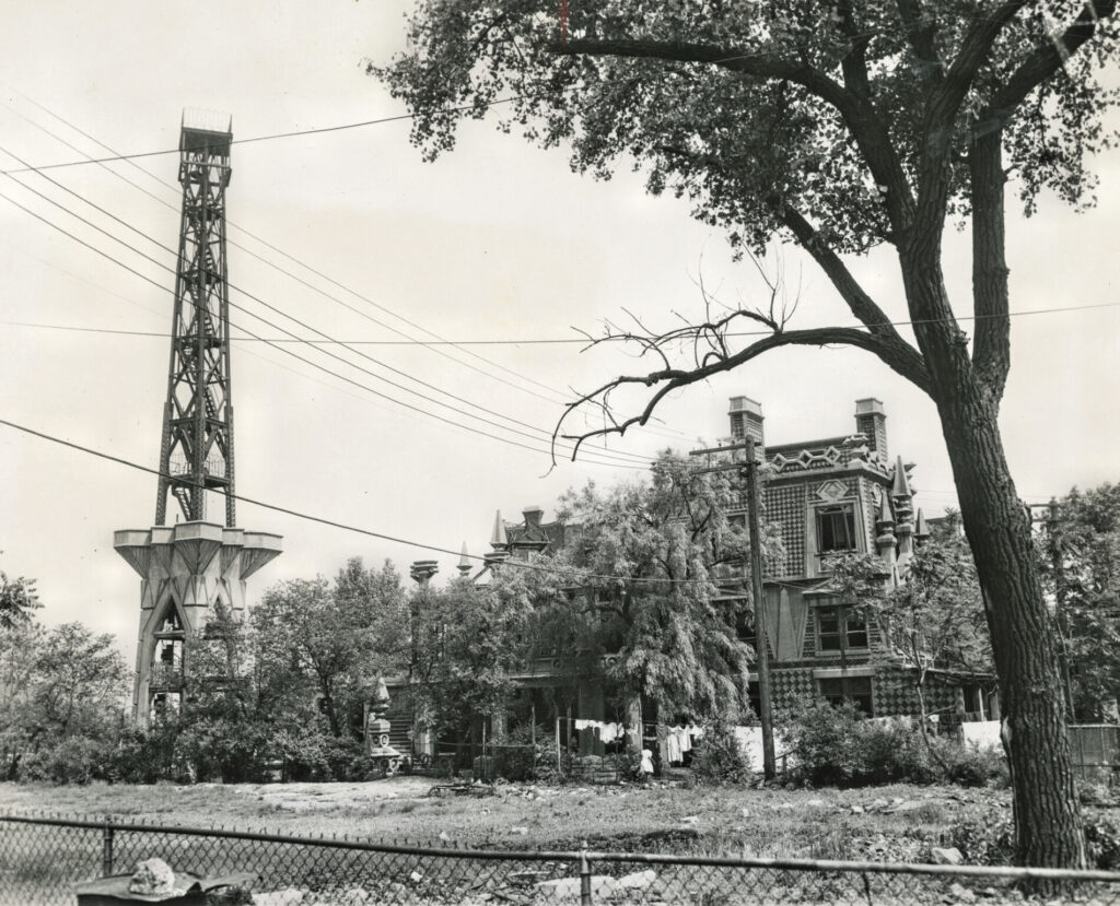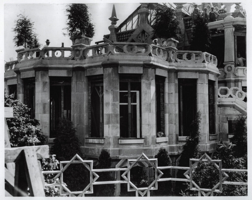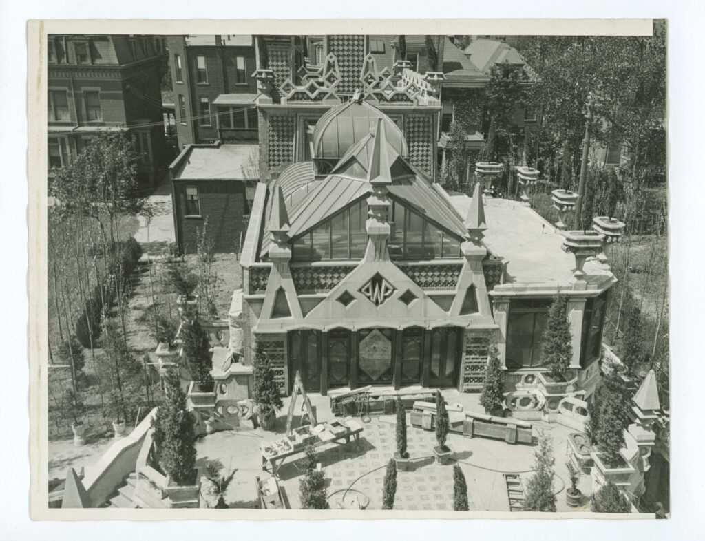 designed in egyptian revivalstyle to showcase porter’s antique collection, it featured a 15-story observation tower visible from lake shore drive, intended to be topped with a glass sphinx (never completed). the interior included grottos, glass terraces, secret passages, and themed rooms. porter claimed ownership of napoleon’s table silver and valuable goldfish.