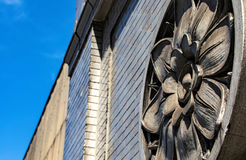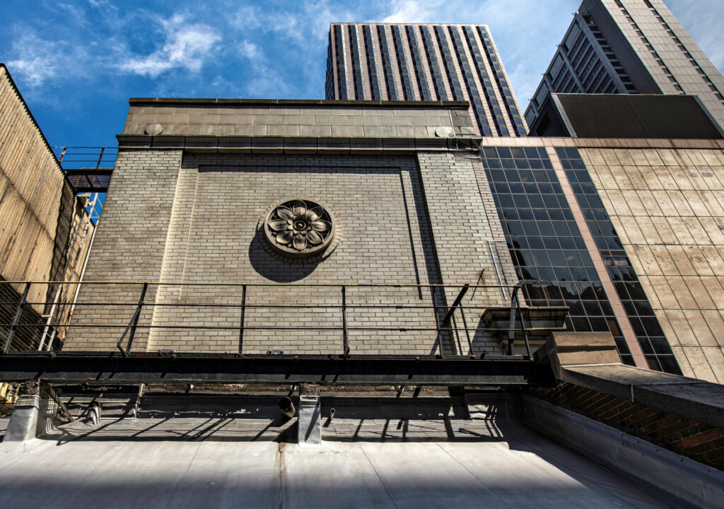 the white or cream-colored interior lobby terra cotta ornament was fabricated by the northwestern terra cotta company, chicago, il.