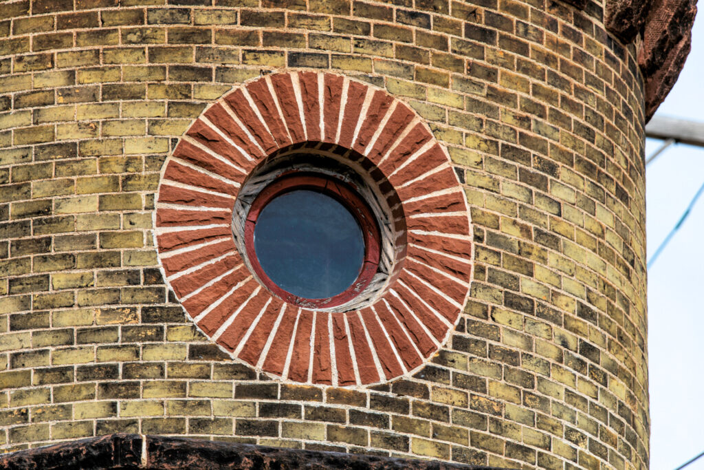 the cream city brick and rusticated stone building with three-story tower was designed by architect orson burlingame and built by nichola reichert.
