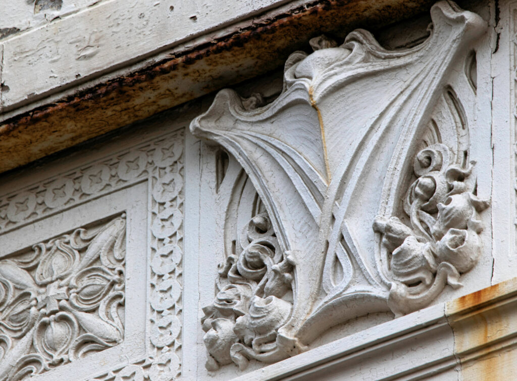 the facade displays sullivanesque terra cotta ornament inspired by louis sullivan.
