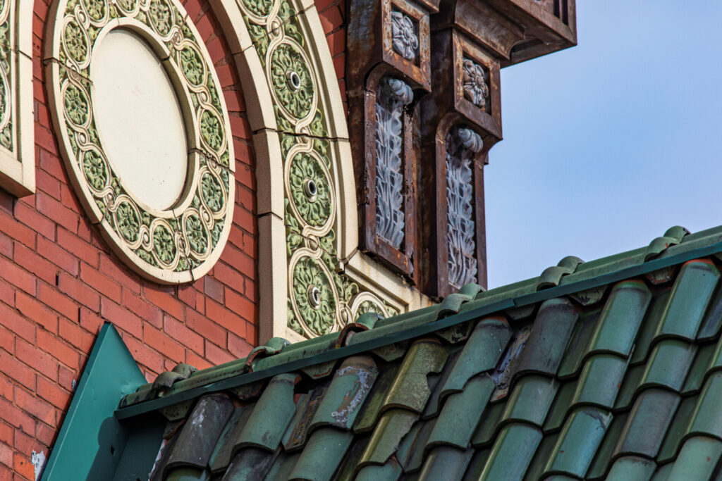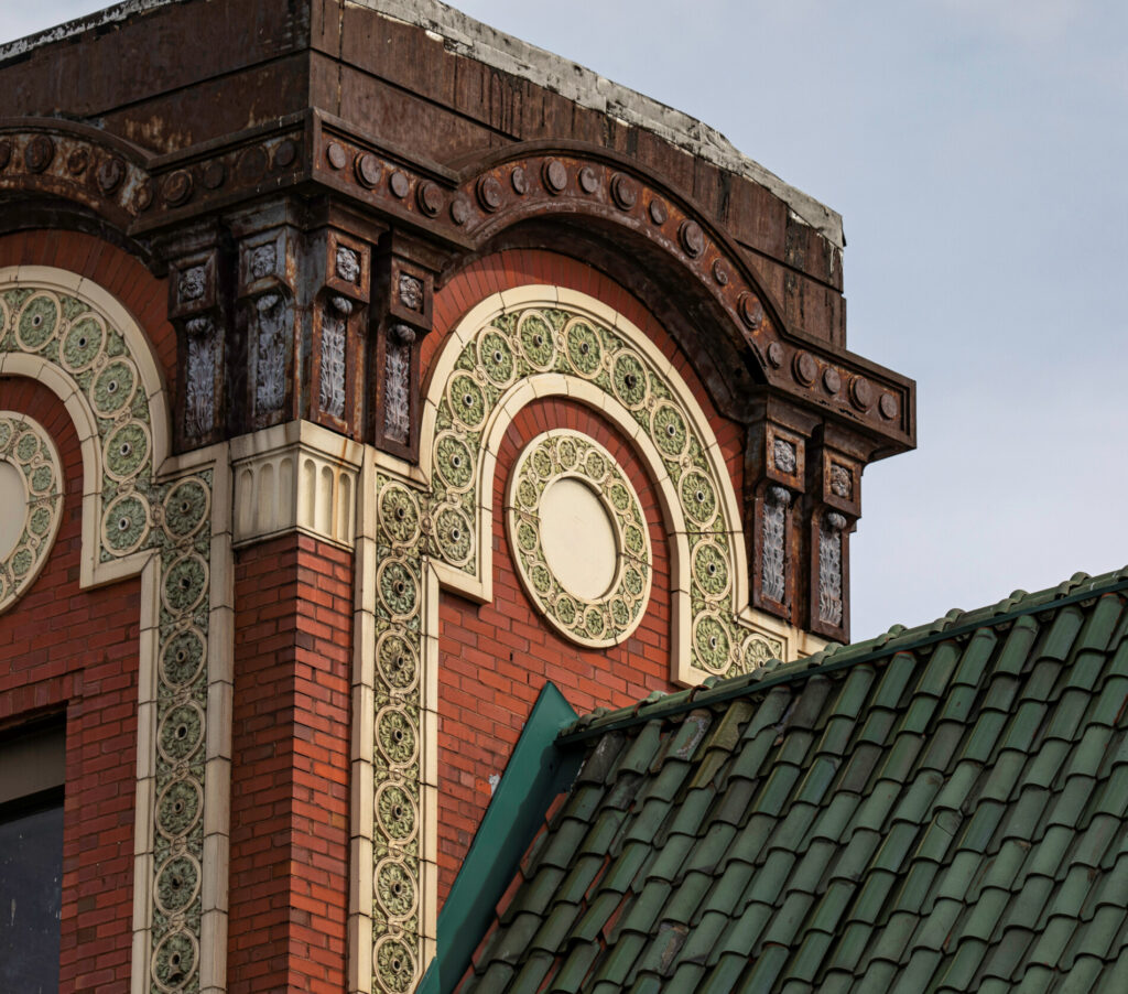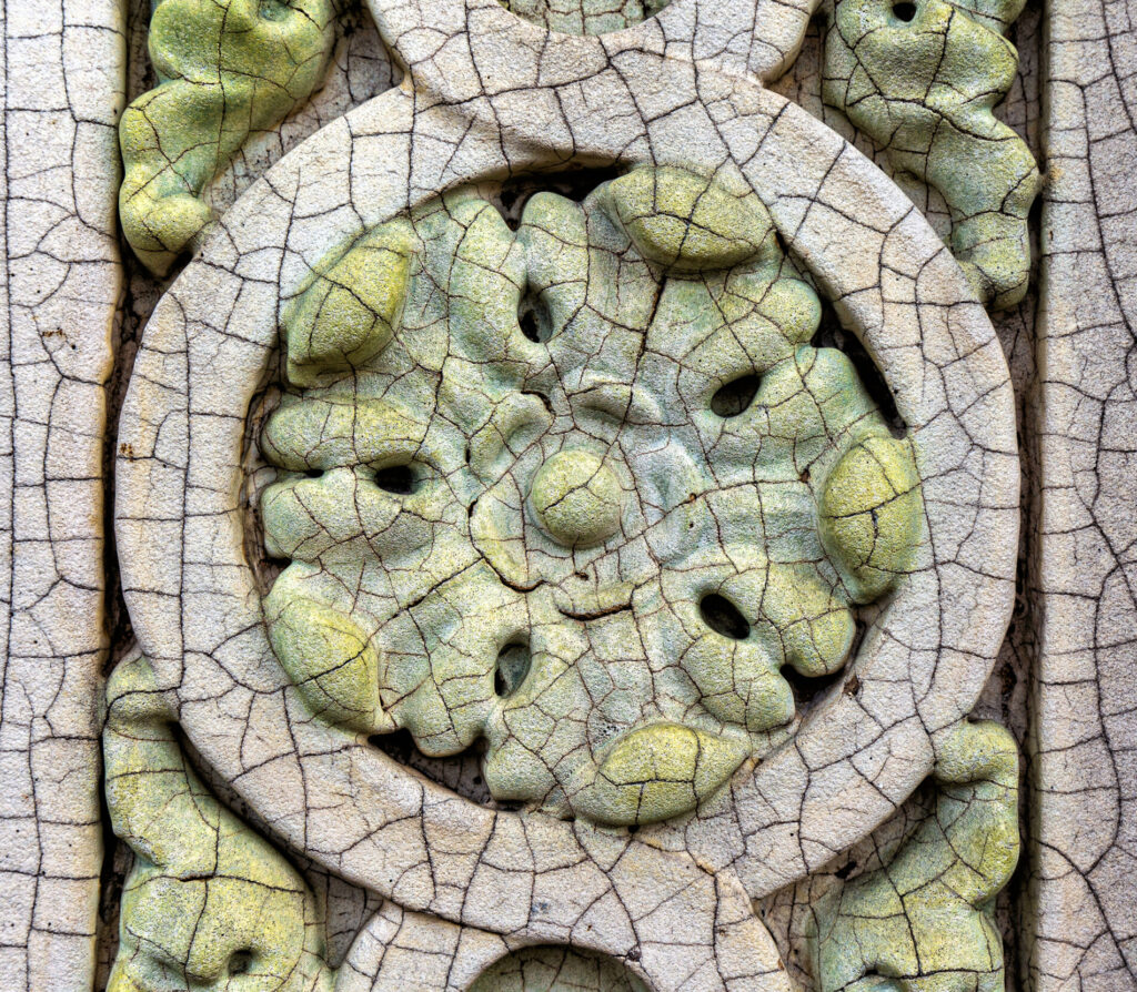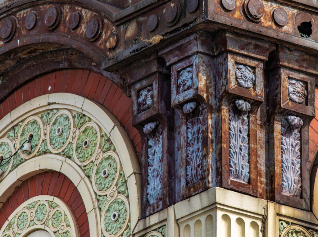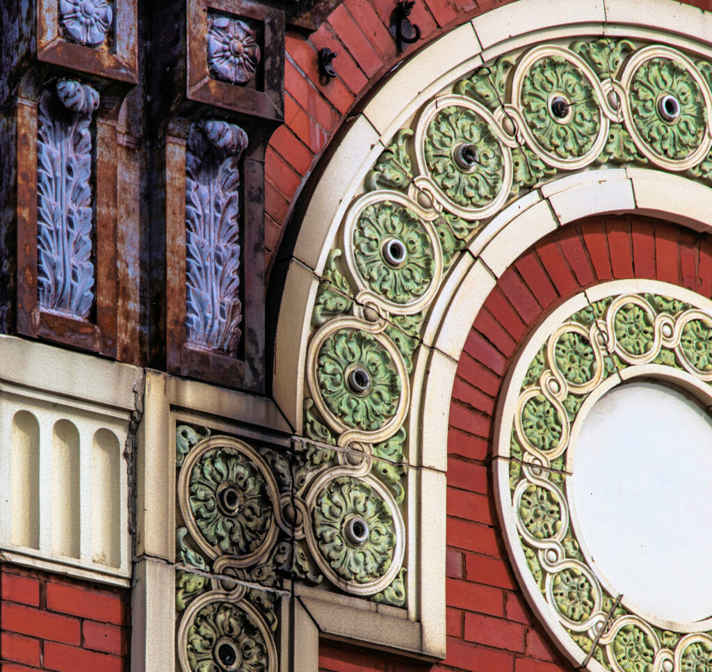 the polychrome terra cotta ornament was executed by the midland terra cotta company, chicago, il.