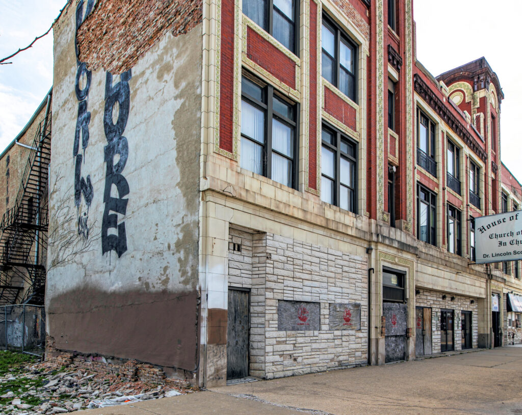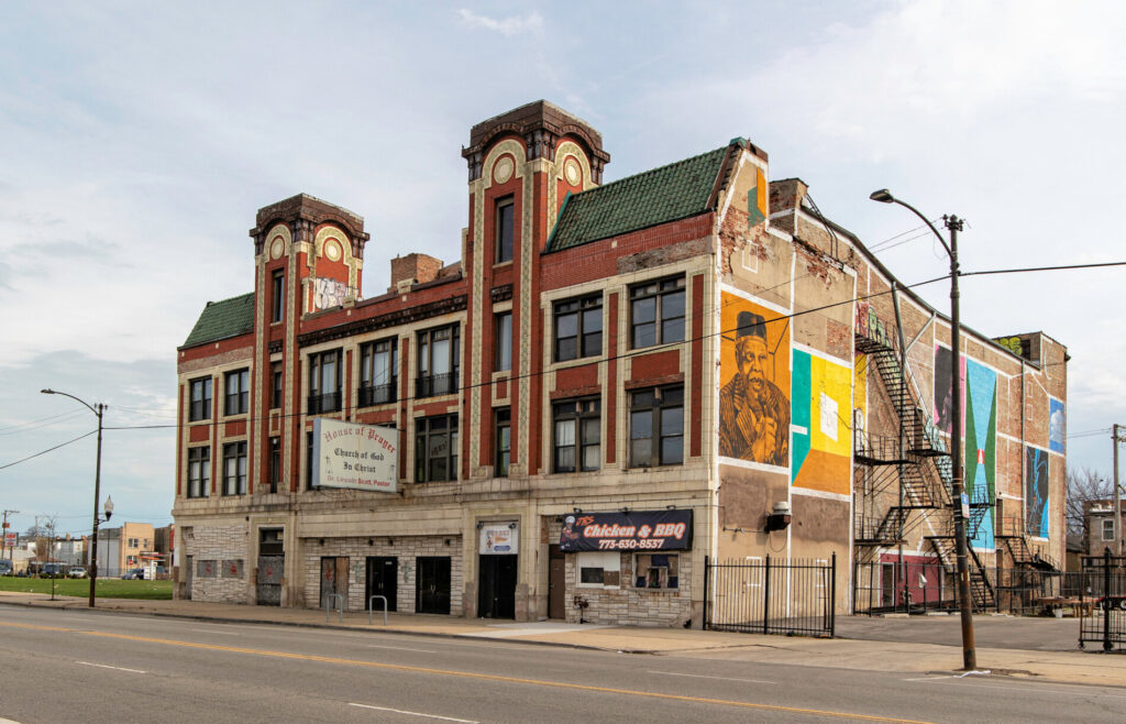 recent exterior photographic survey of rapp and rapp’s spanish baroque style central park theater (1917), located at 3535 w. roosevelt road, chicago, il.