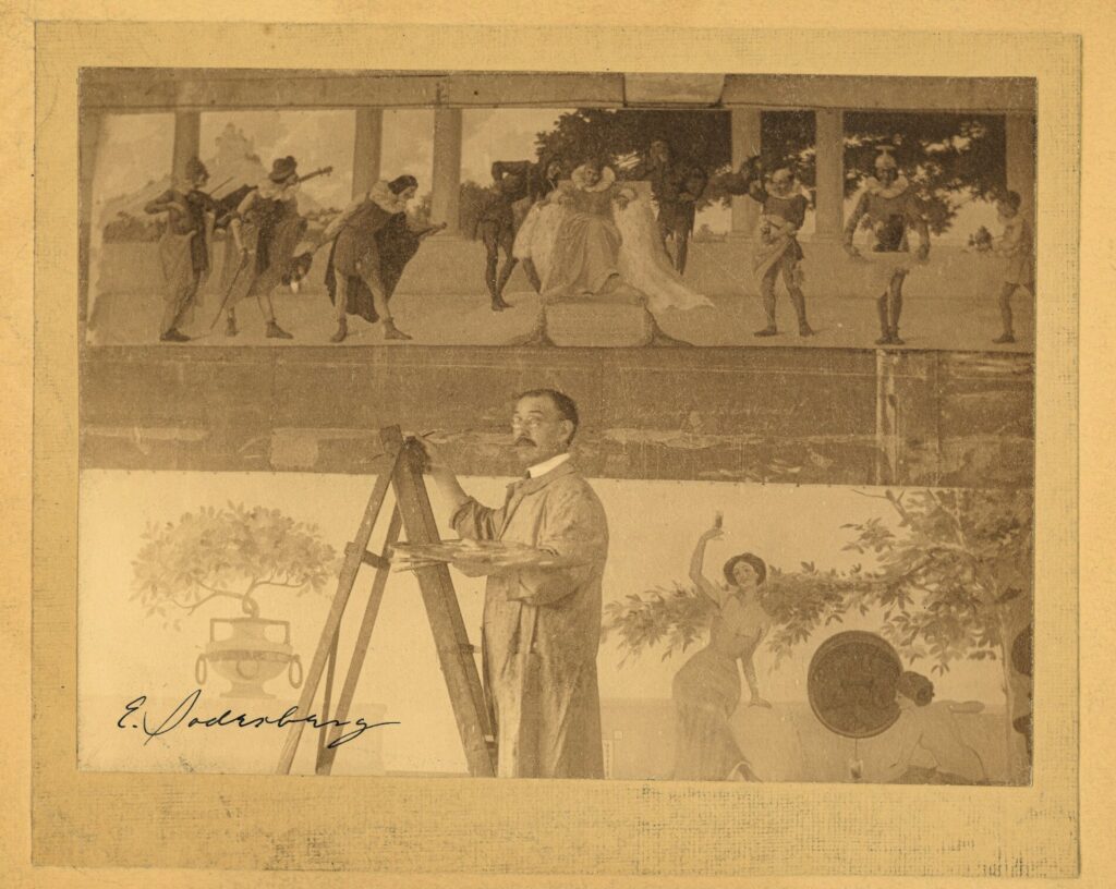 in 1903, axel edward soderberg joined as the firm’s chief artist, executing most of the firm’s interior installations—including painted murals—throughout the early 20th century. oyen recruited soderberg away from the competing andrews decorating company of clinton, iowa. around 1912, oyen secured key contracts designing interiors for friedman brothers and finklestein & ruben theaters, with offices in minneapolis and st. paul, from approximately 1912 through 1925.
