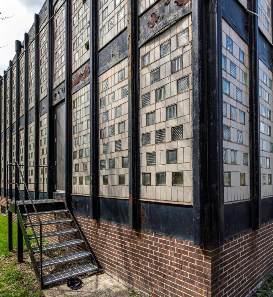 the additon to the south was possibly designed by wendell campbell or cooley and the clear textured blocks were fabricated by corning glass works.