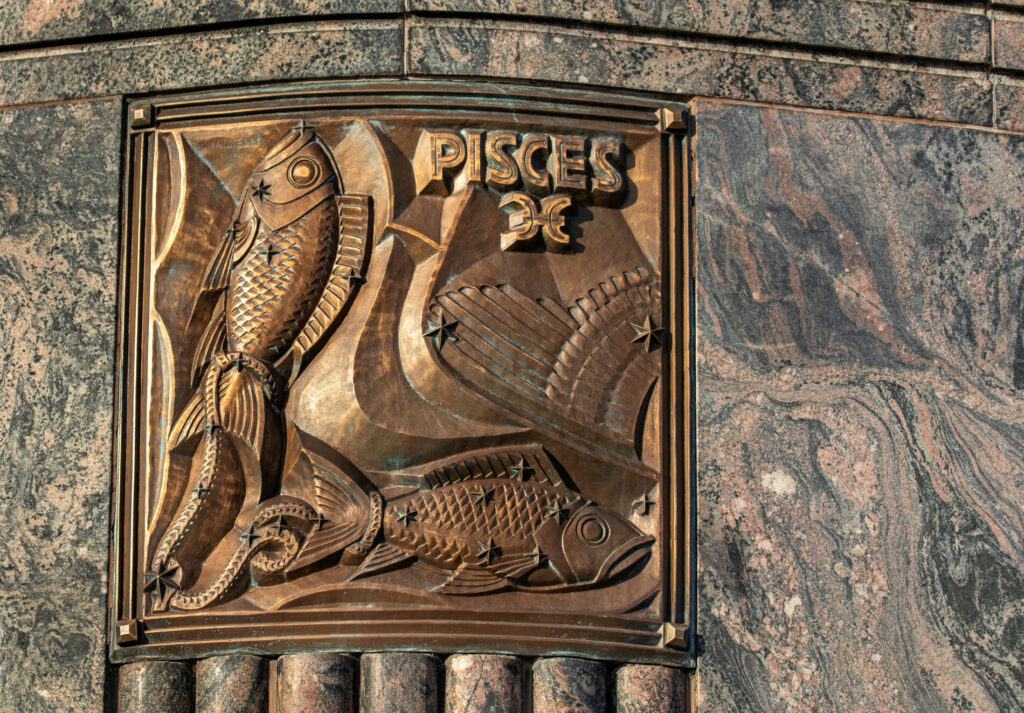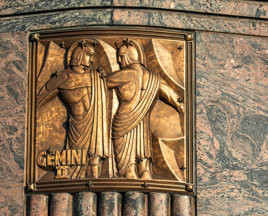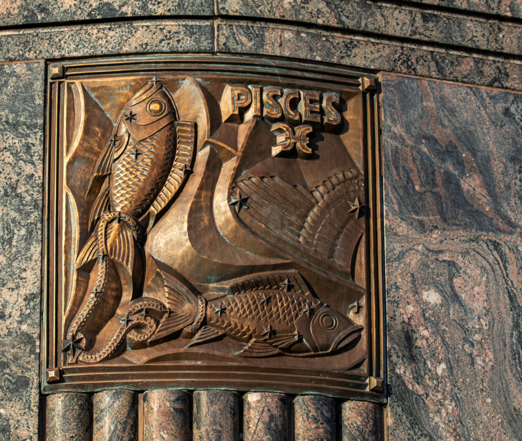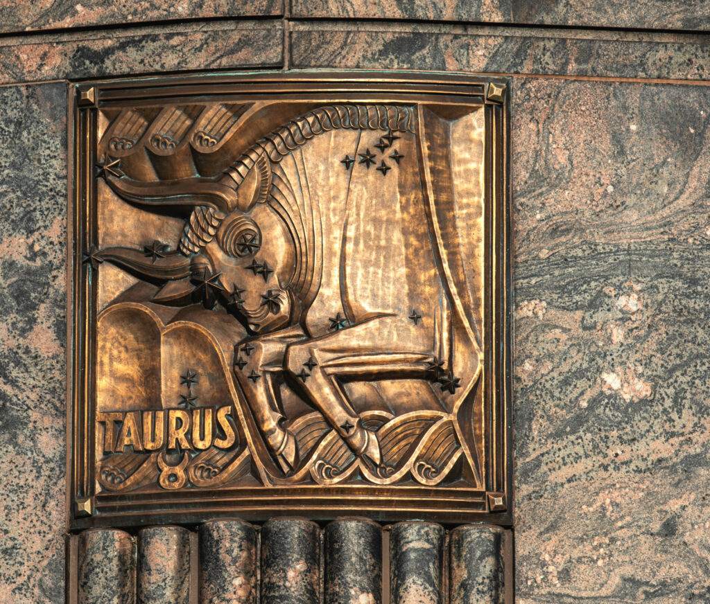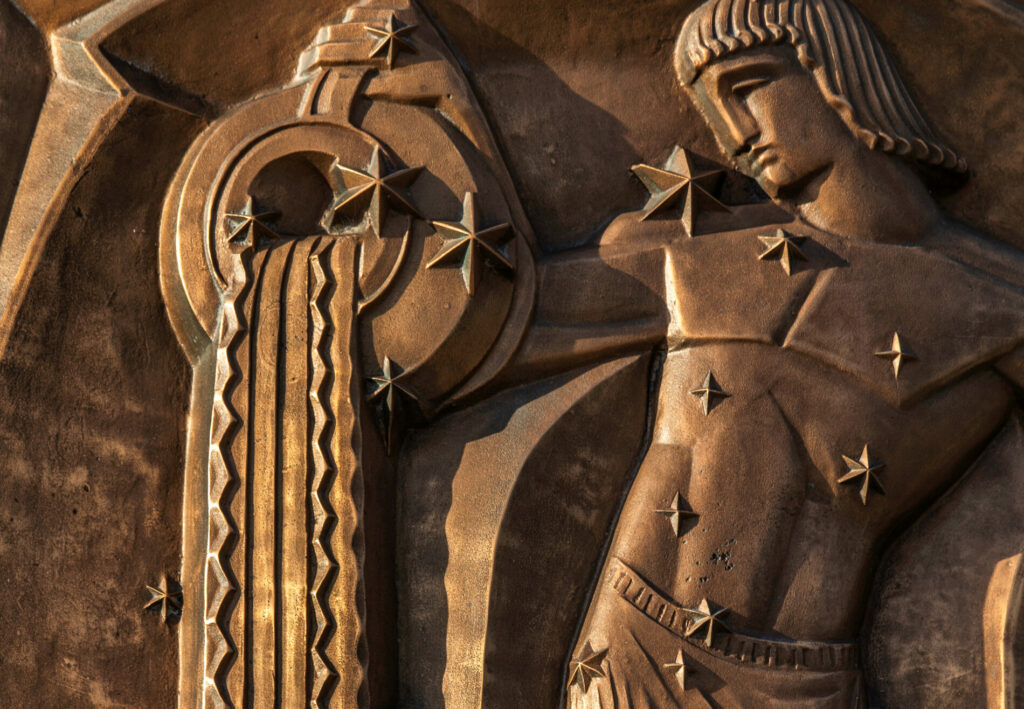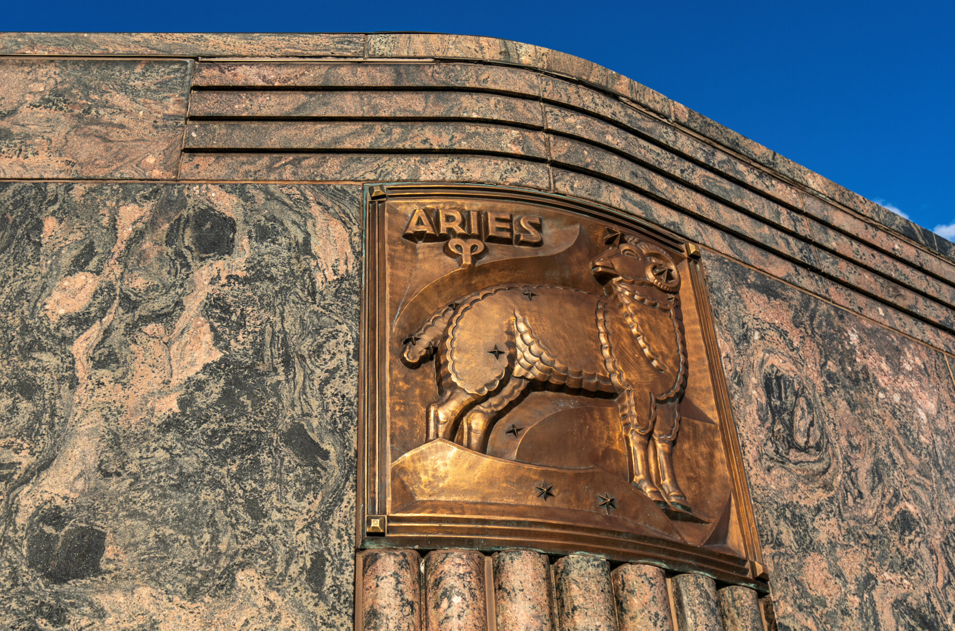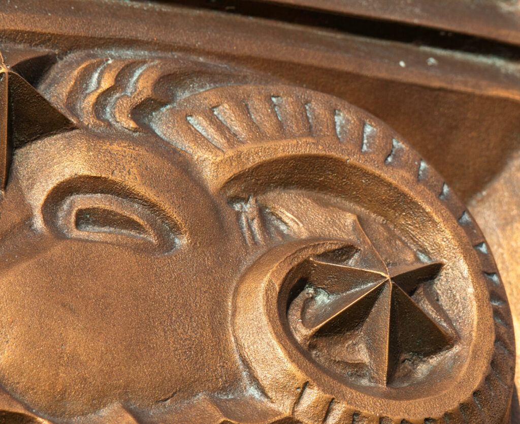 the 12 zodiac relief plaques were sculpted by alfonso iannelli and executed in bronze by the american bronze company. they follow a clockwise sequence that corresponds to the sun’s annual path.