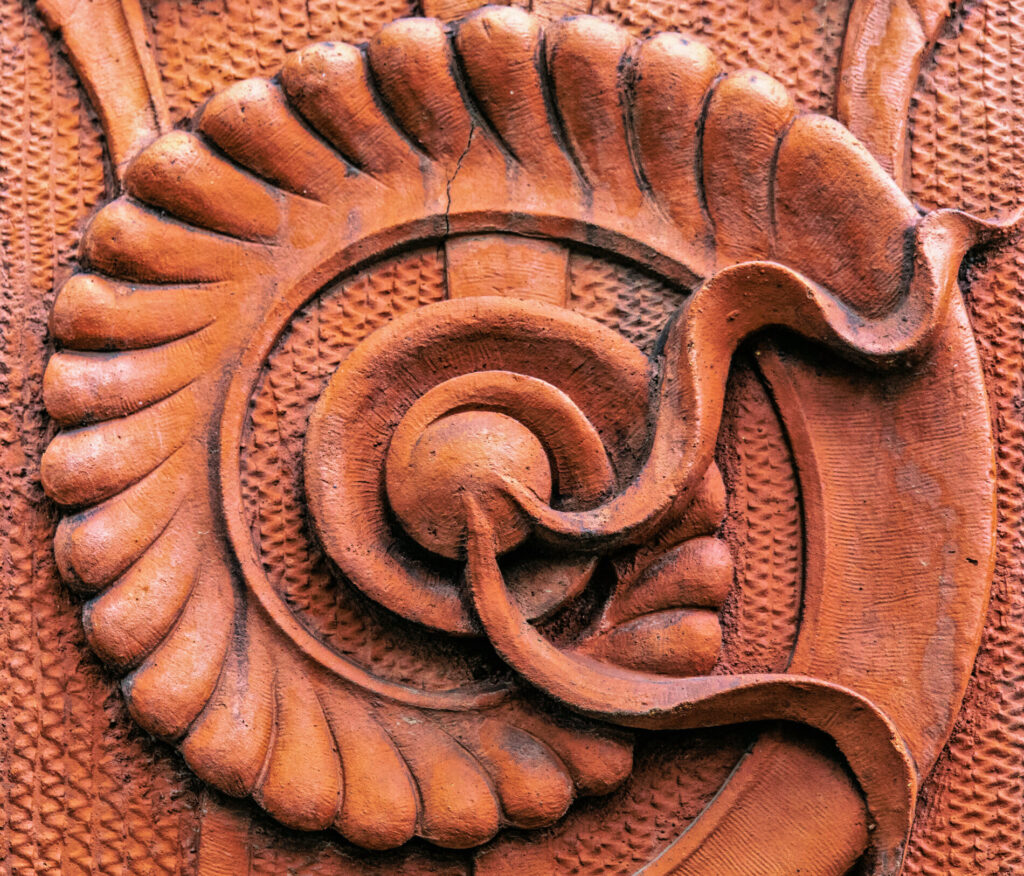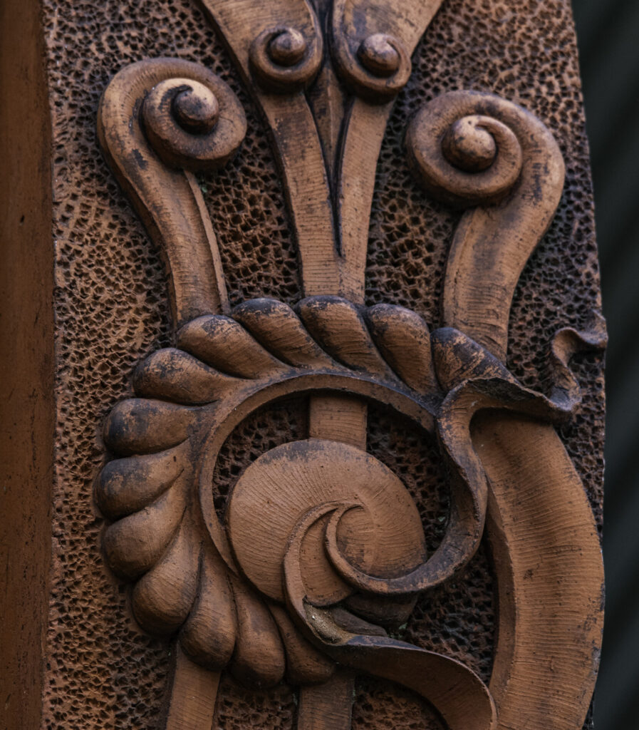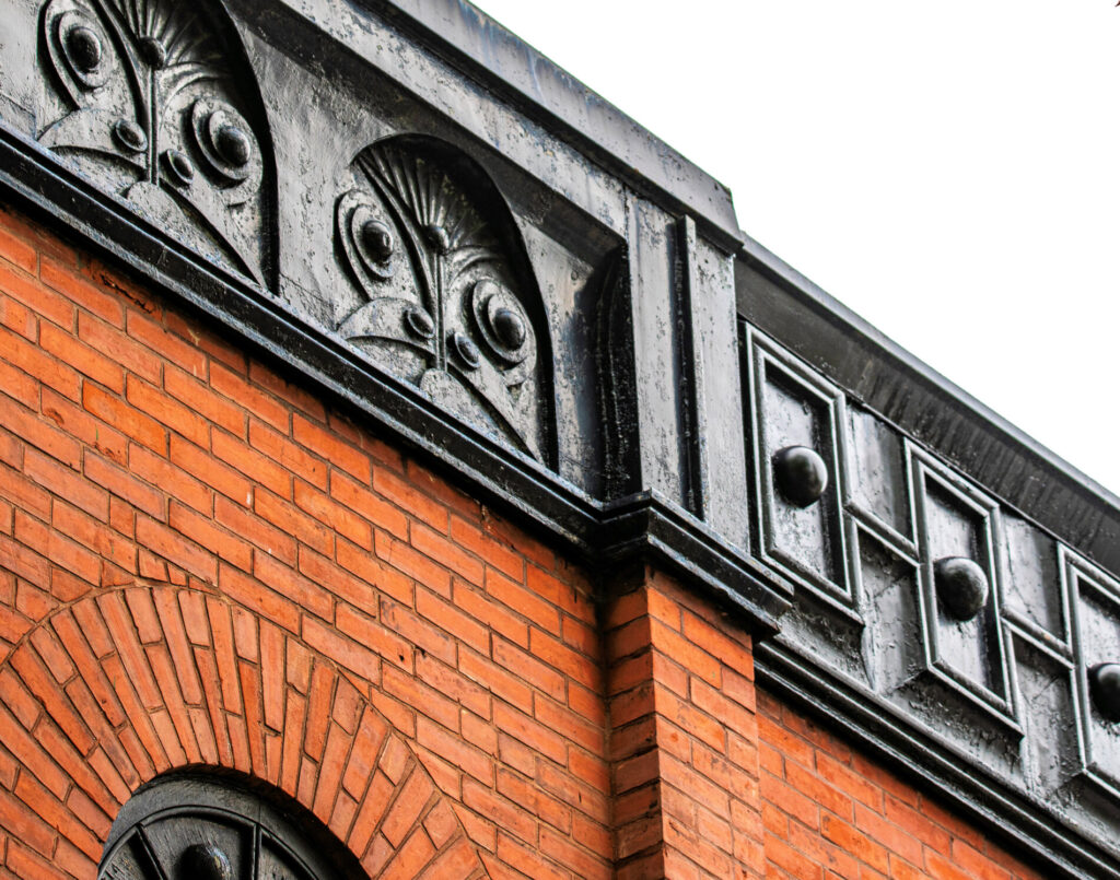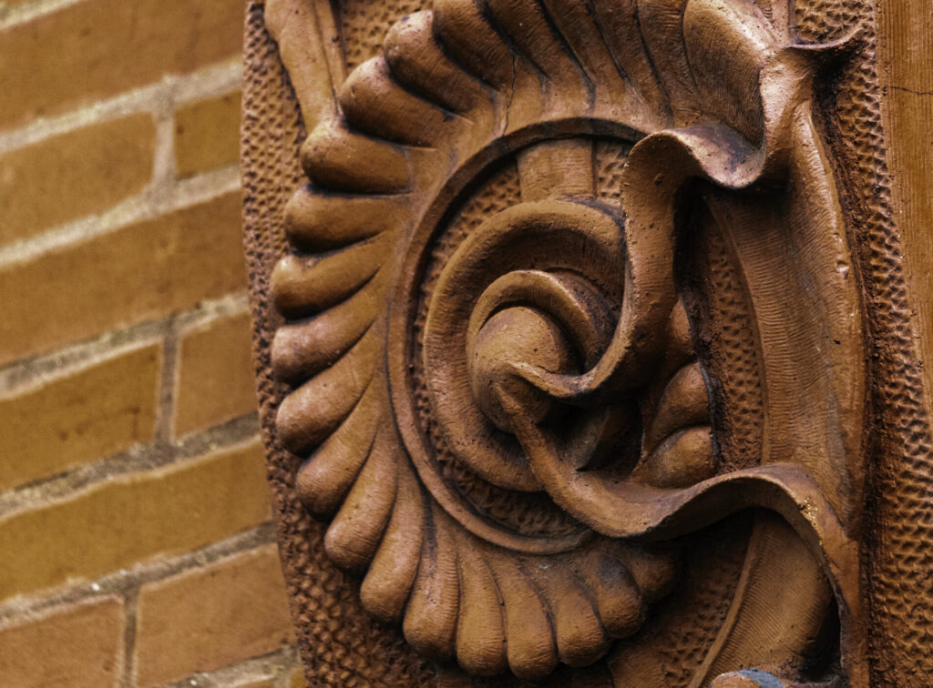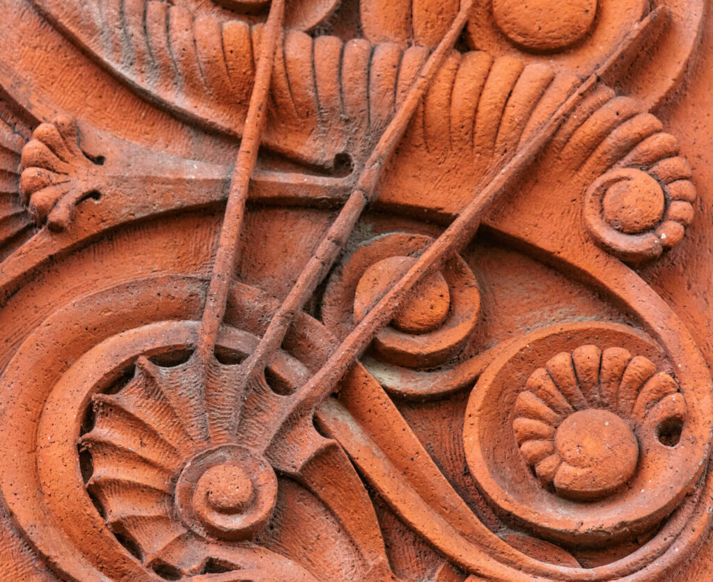 the red slip terra cotta ornament was fabricated by the northwestern terra cotta company, chicago, il.