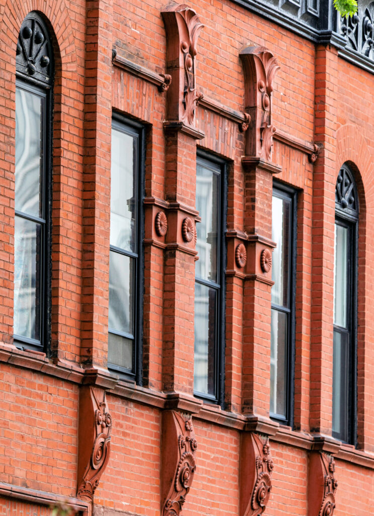 significance: the only row houses designed by adler & sullivan, showcasing louis sullivan’s early ornamental style.
