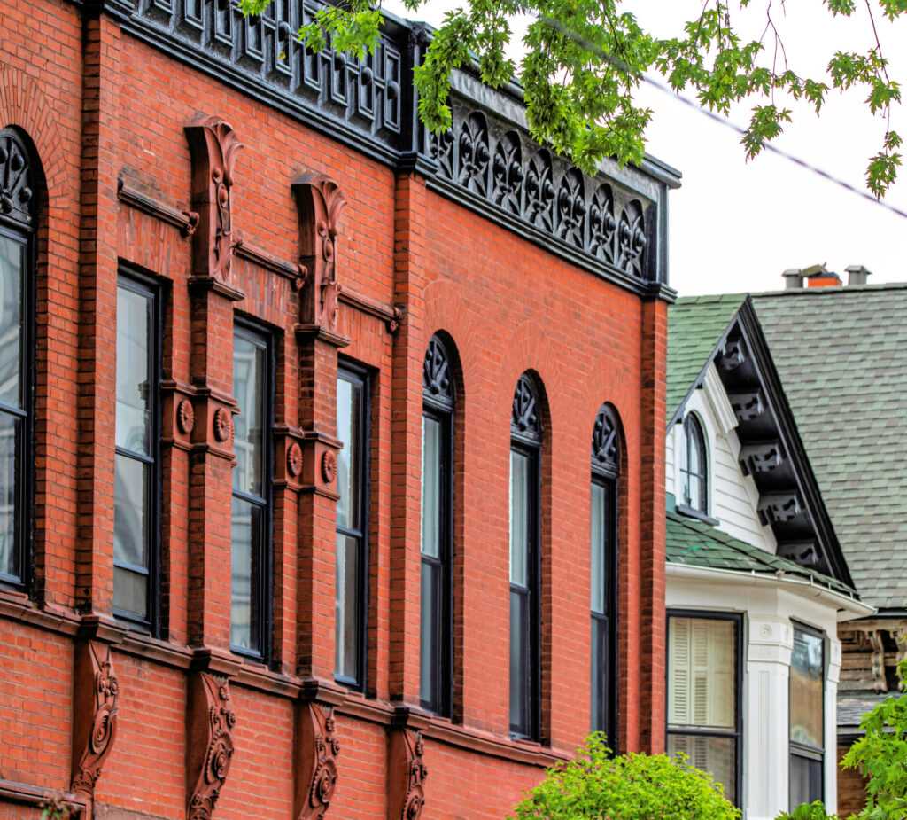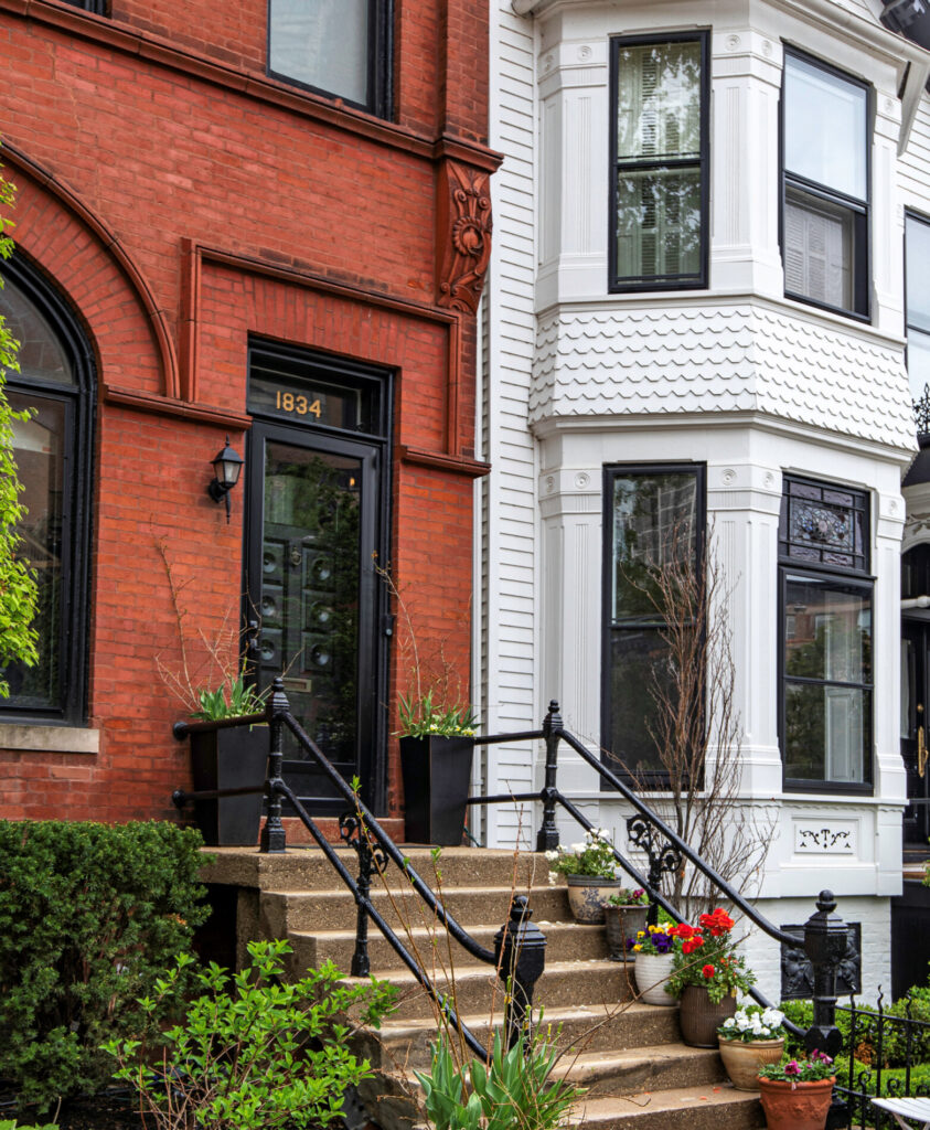 exterior photographic survey of adler and sullivan’s ann halsted row houses (1884-1886), located at 1826–1834 n. lincoln park west, chicago, il.